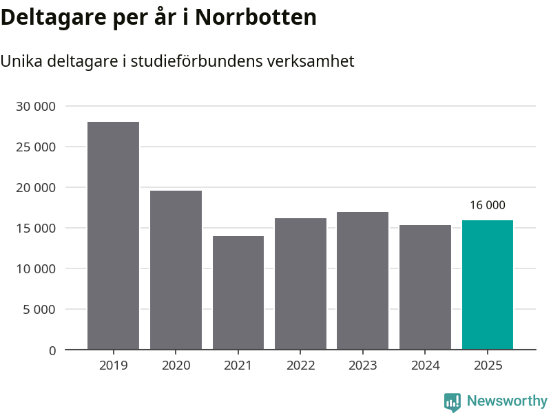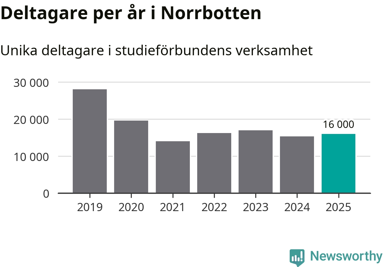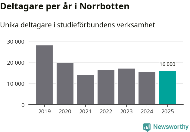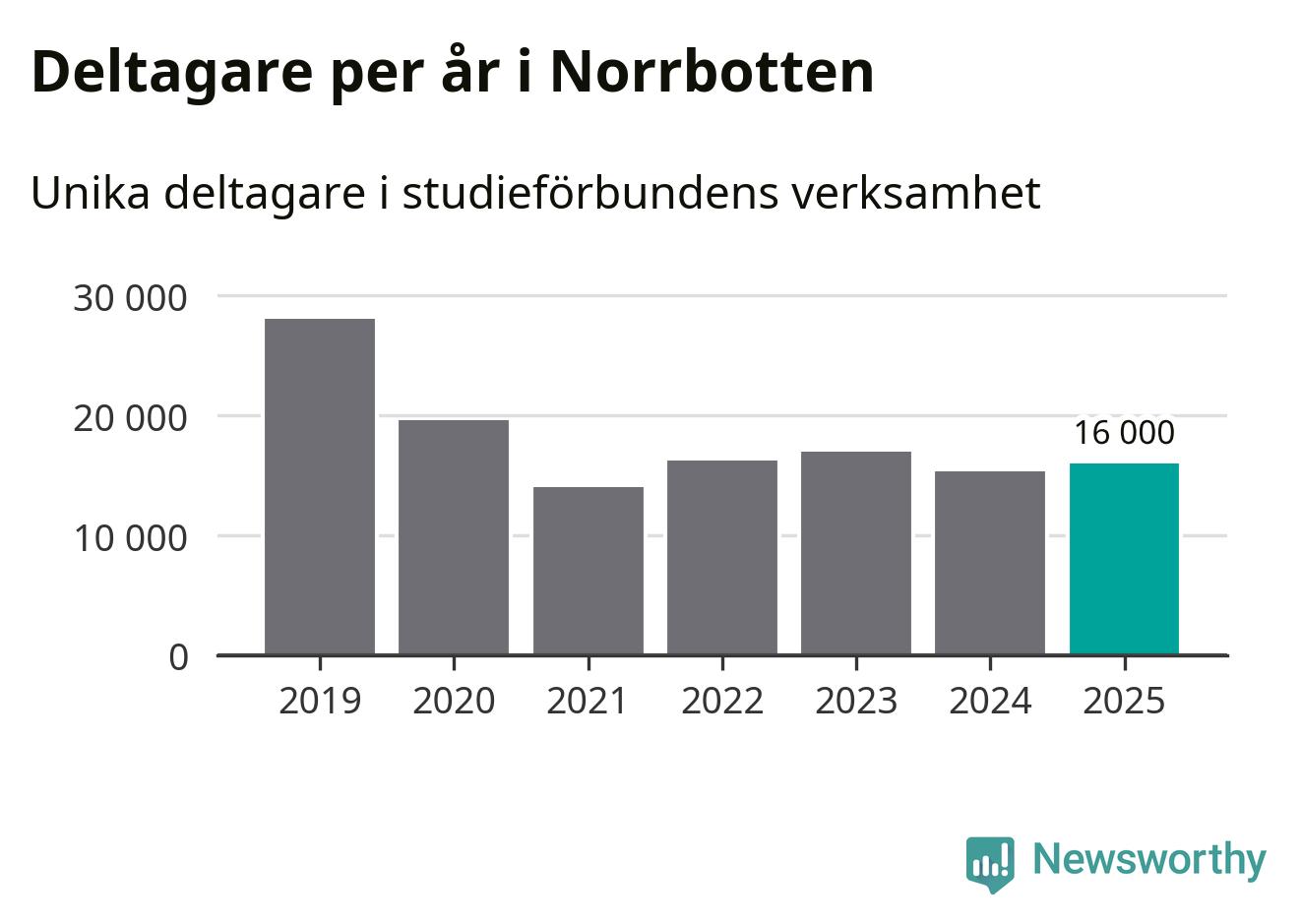Antalet unika deltagare ökade i Norrbotten i fjol: från 15 355 till 16 000 personer. Det innebär att sex procent av befolkningen i länet deltog i studieförbundens verksamhet under 2025, vilket är ungefär som rikssnittet.