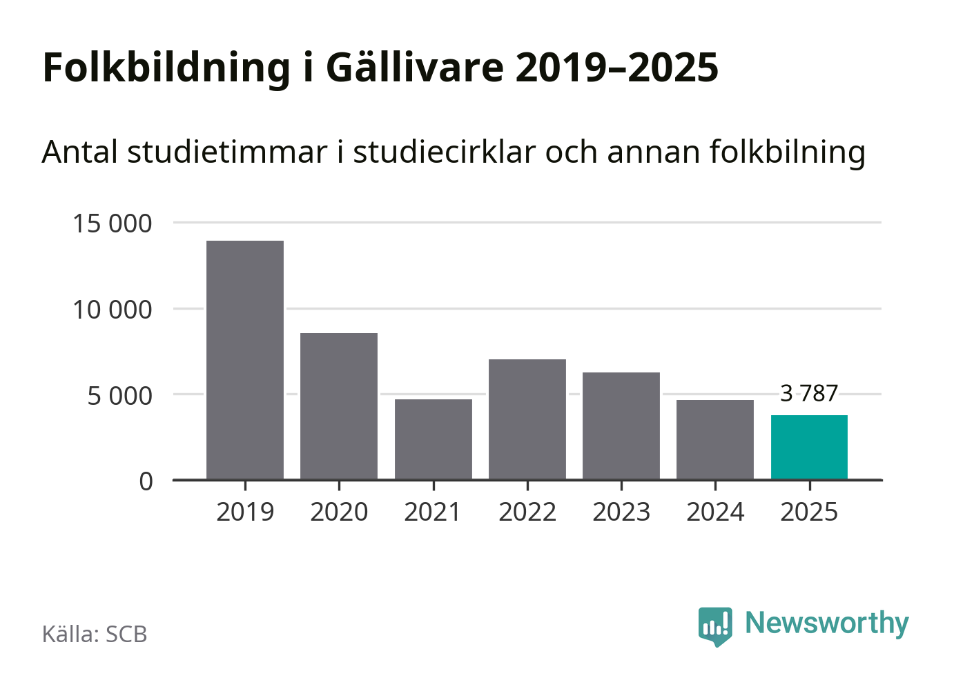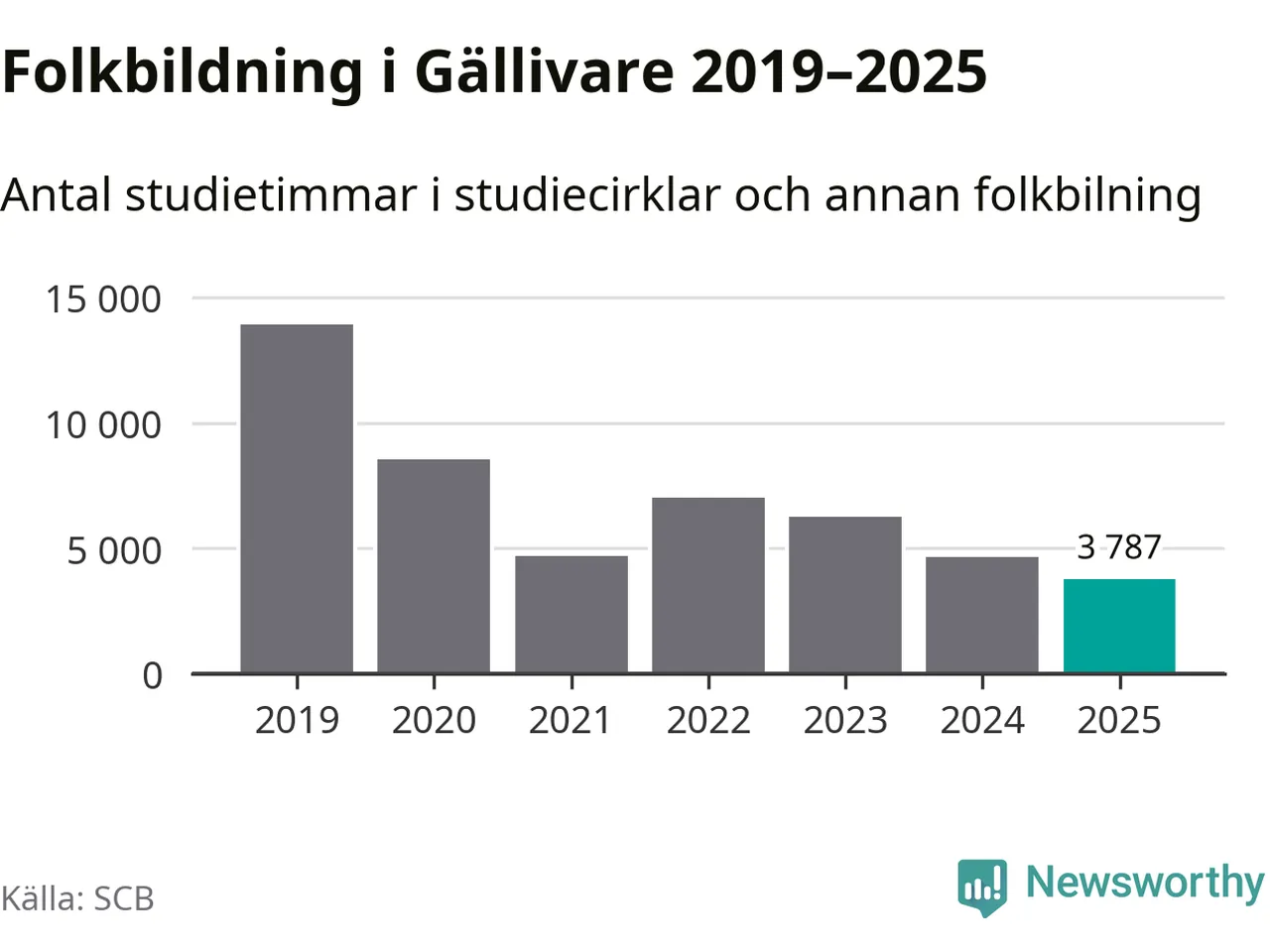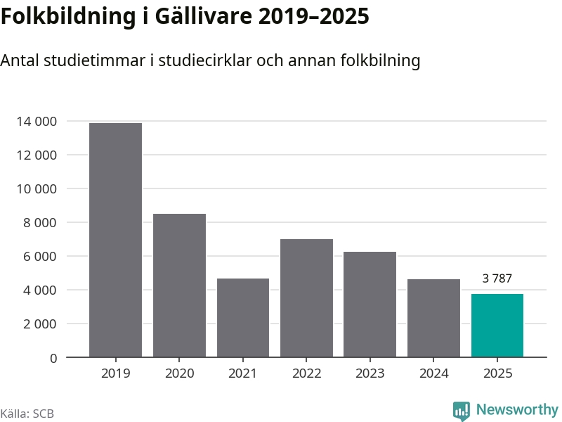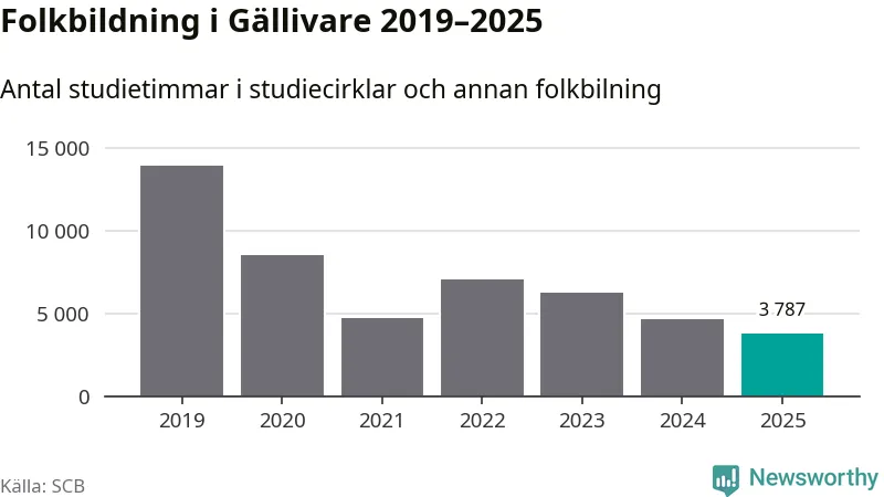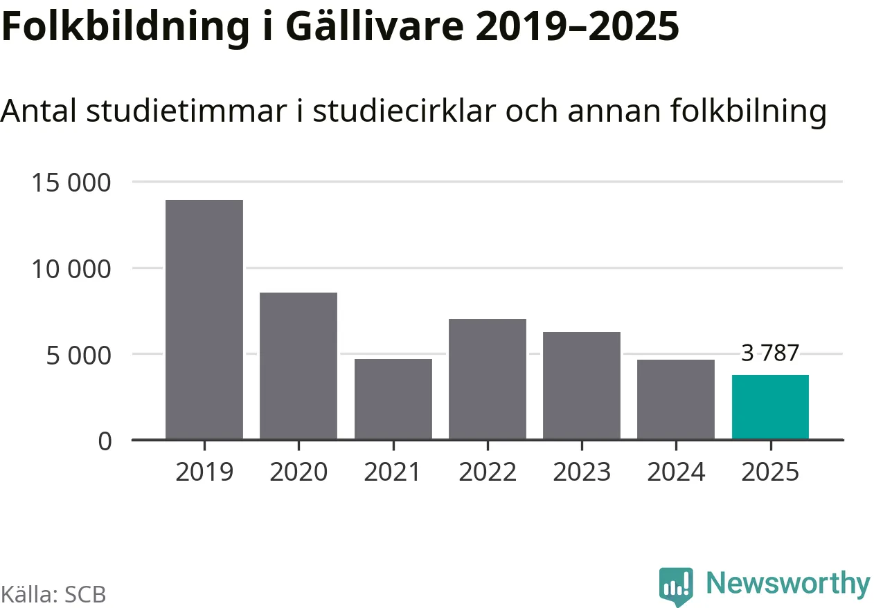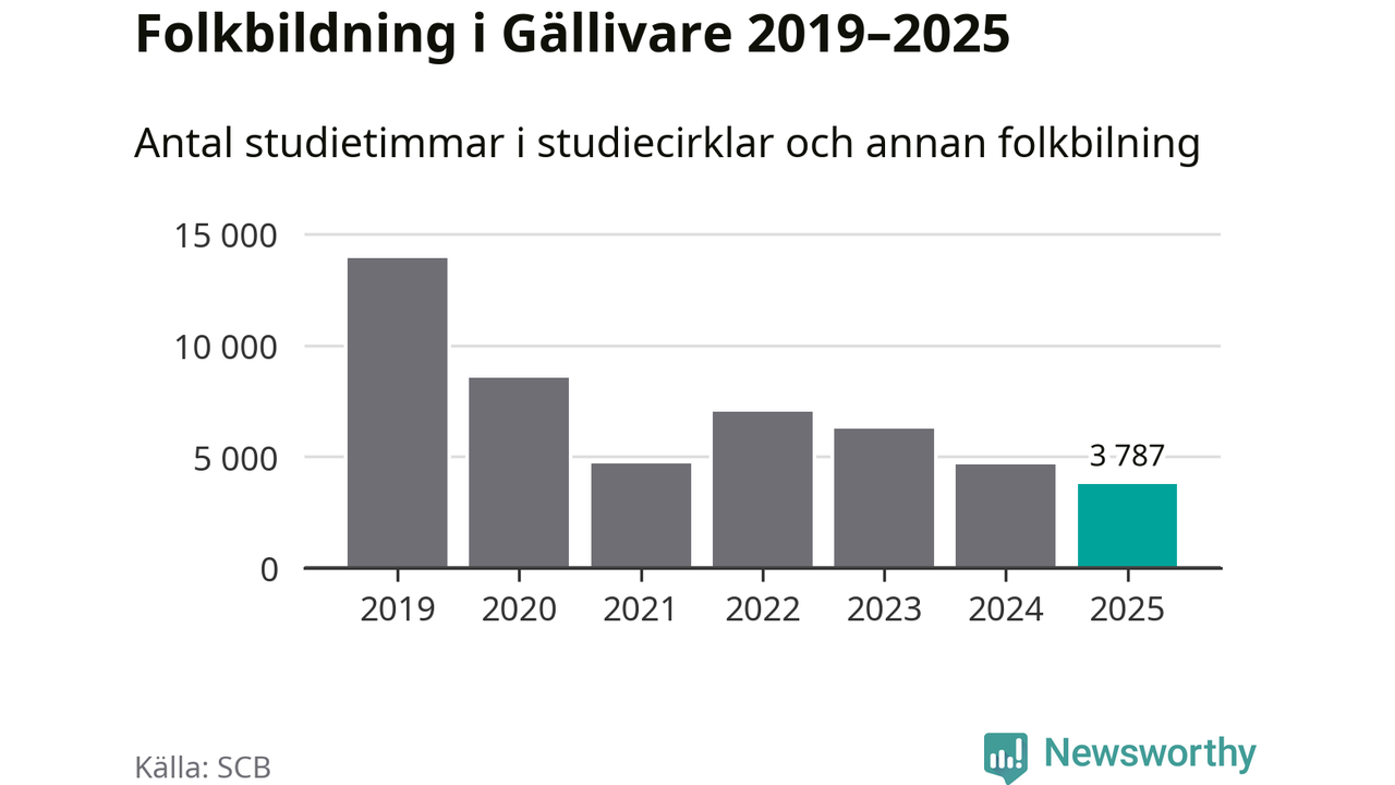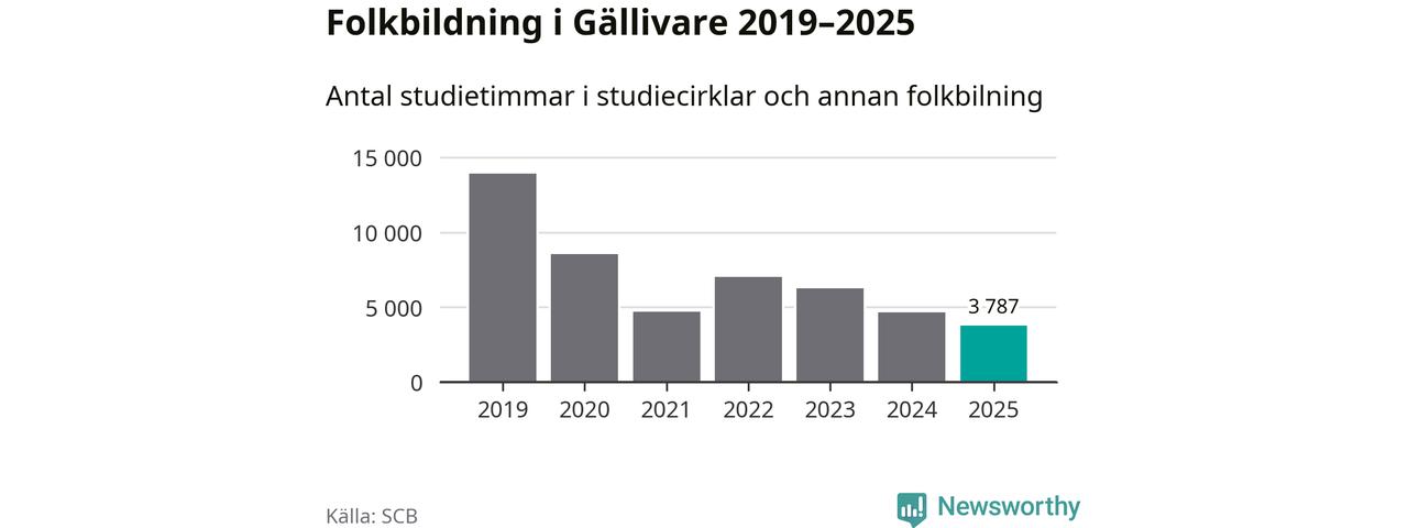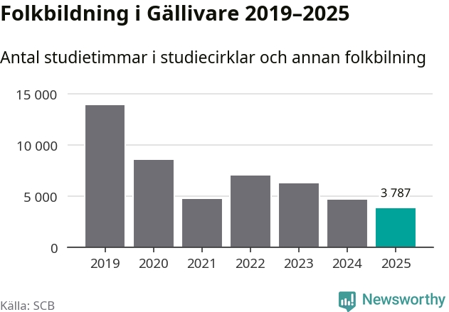Studieförbunden drabbades hårt av pandemin. Även i Gällivare noterades det lägsta antalet studietimmar under 2021, som då var 66 procent färre än 2019 – vilket fortfarande är fler än 2025.