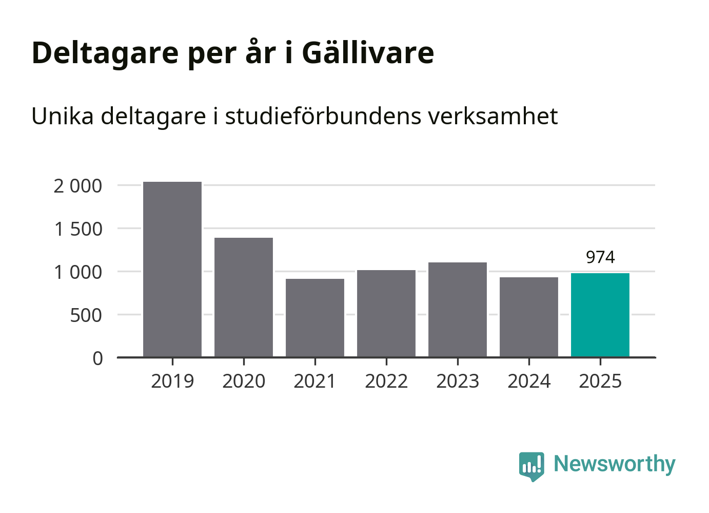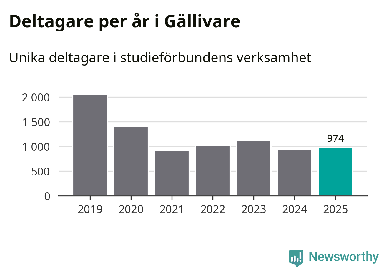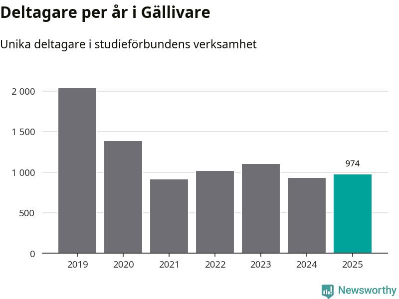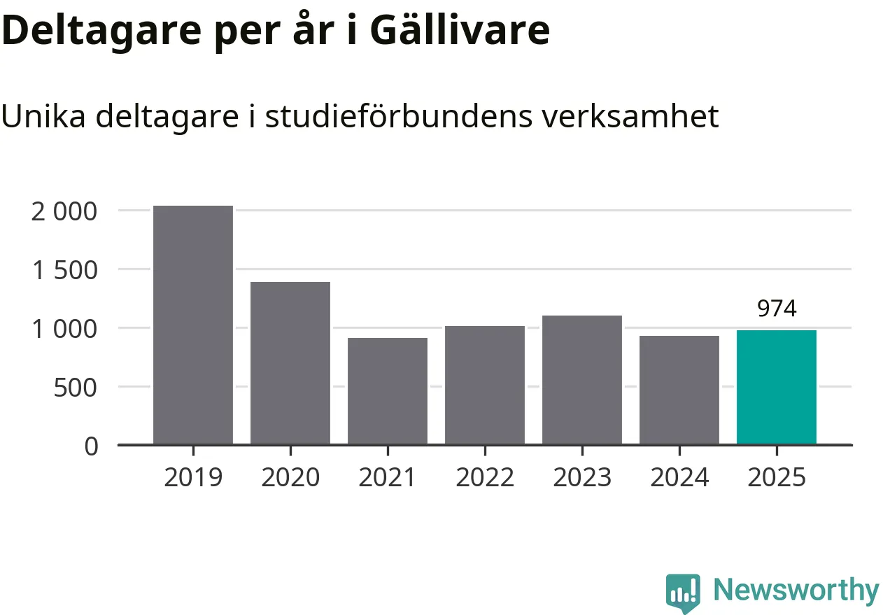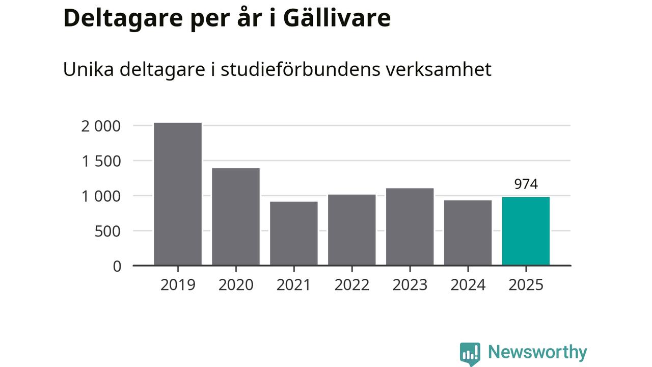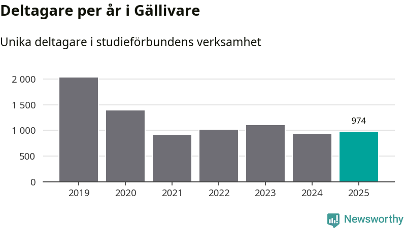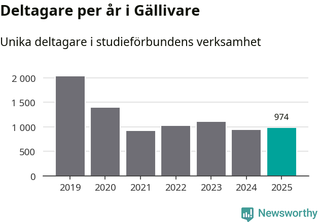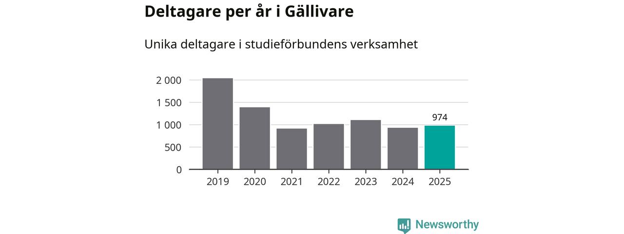 Antalet unika deltagare ökade i Gällivare i fjol: från 929 till 974 personer. Det innebär att sex procent av befolkningen i kommunen deltog i studieförbundens verksamhet under 2025, vilket är ungefär som rikssnittet.
