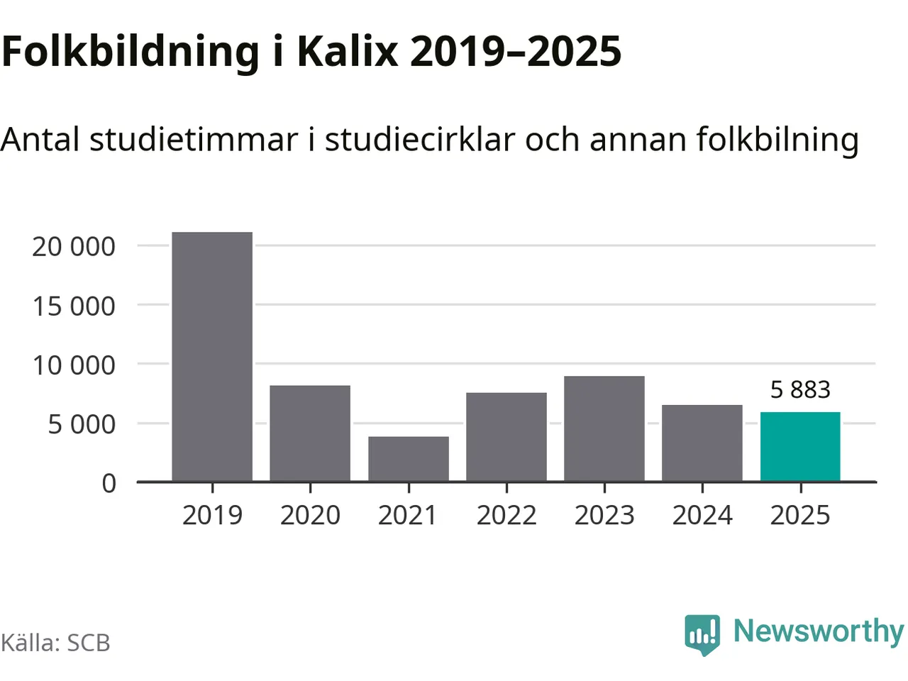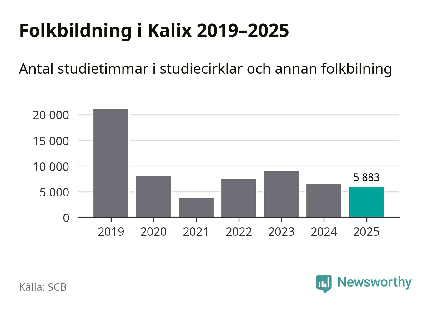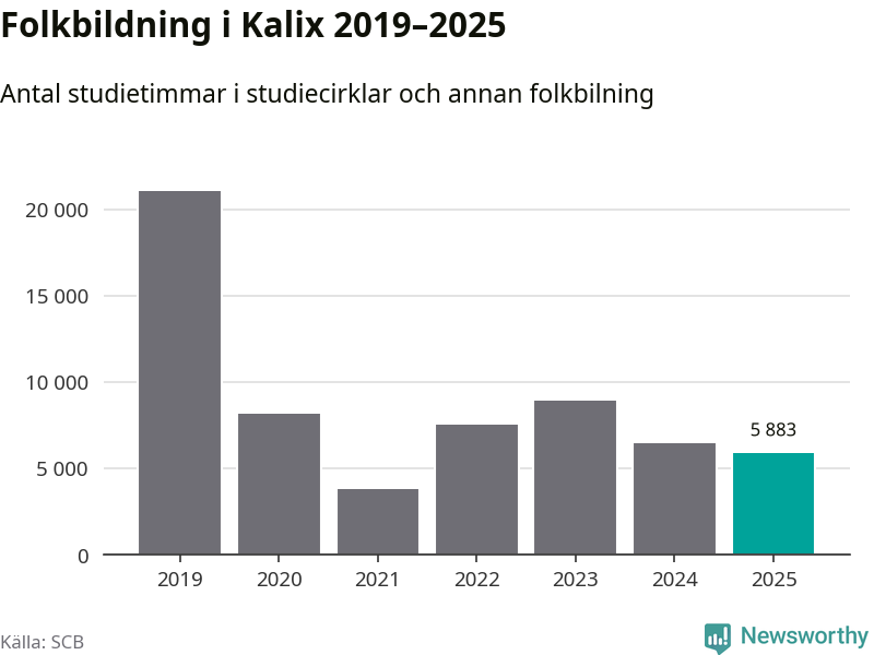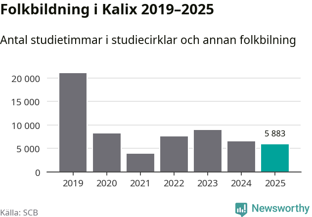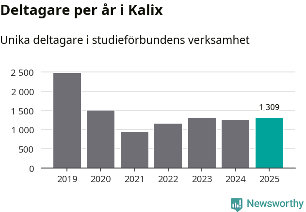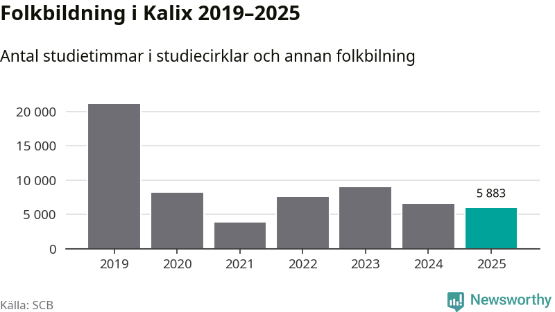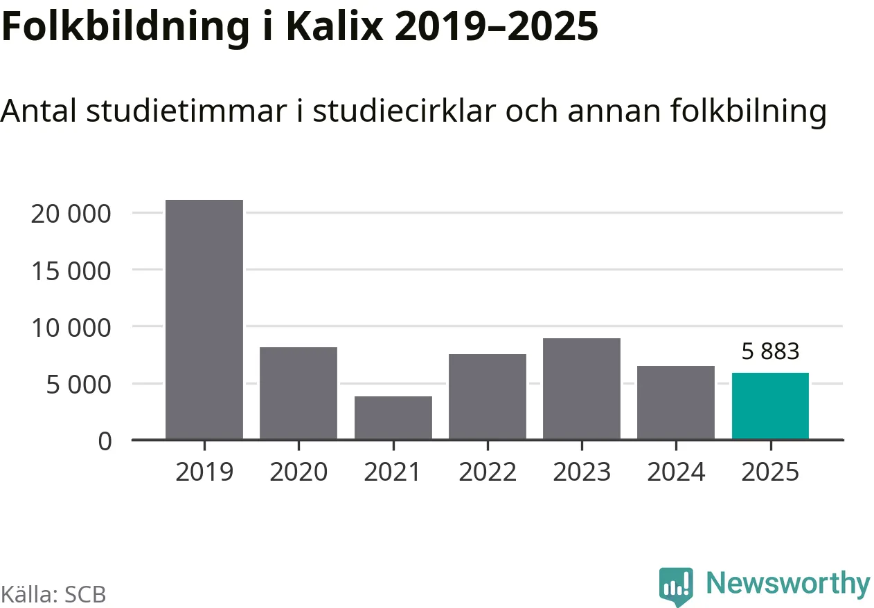 Studieförbunden drabbades hårt av pandemin. Även i Kalix noterades det lägsta antalet studietimmar under 2021, som då var 82 procent färre än 2019. År 2024 var antalet studietimmar åter högre men de var fortfarande långt från förpandeminivåerna.