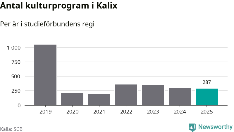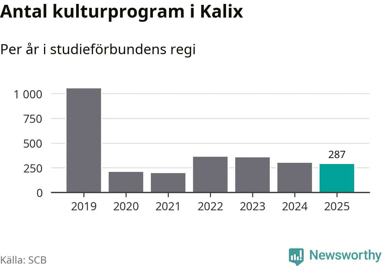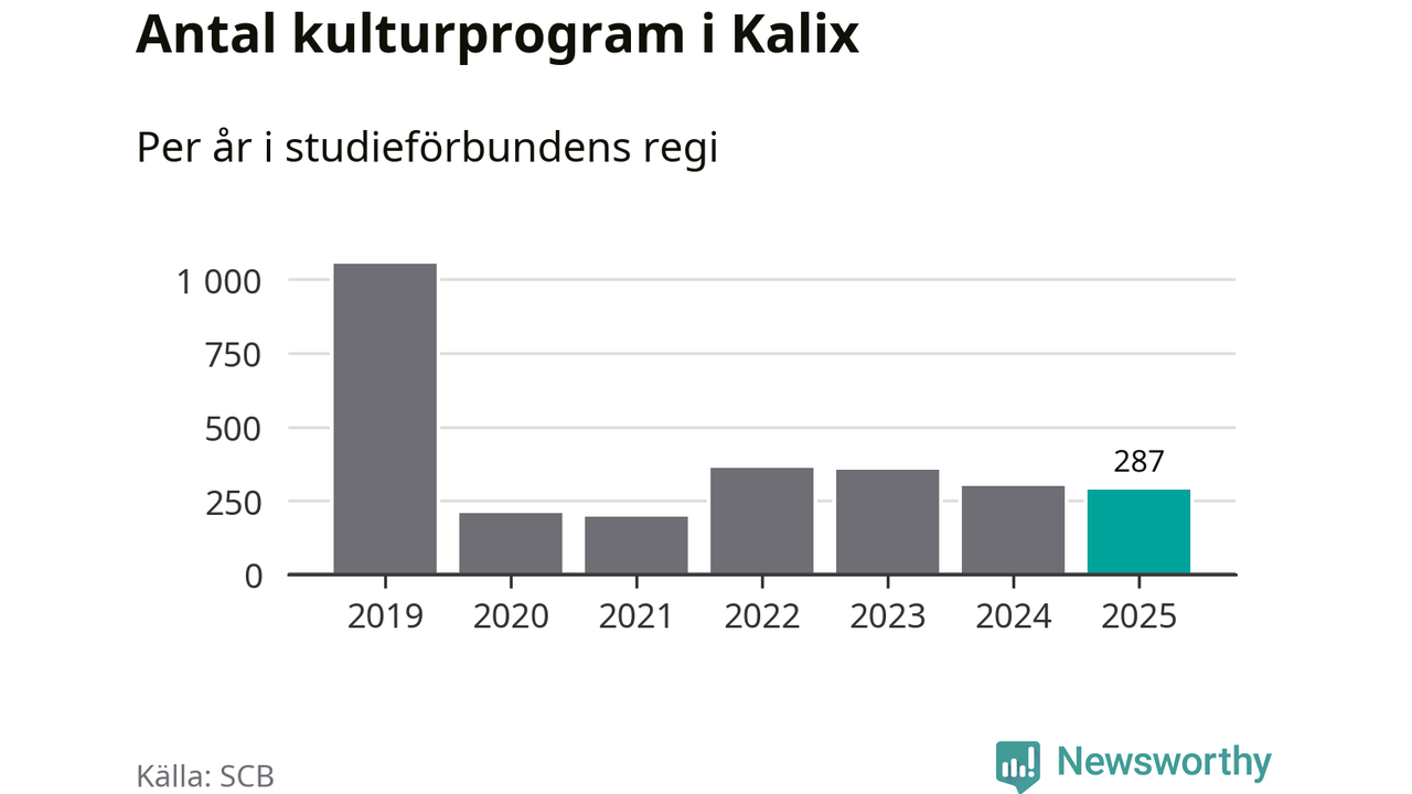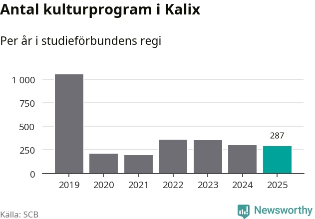 I Kalix är minskningen ännu större: förra året hade studieförbunden omkring 5 900 studietimmar i kommunen, vilket är en minskning med nio procent jämfört med året innan. Även antalet kulturprogram i studieförbundens regi minskade, från 301 till 287 stycken.