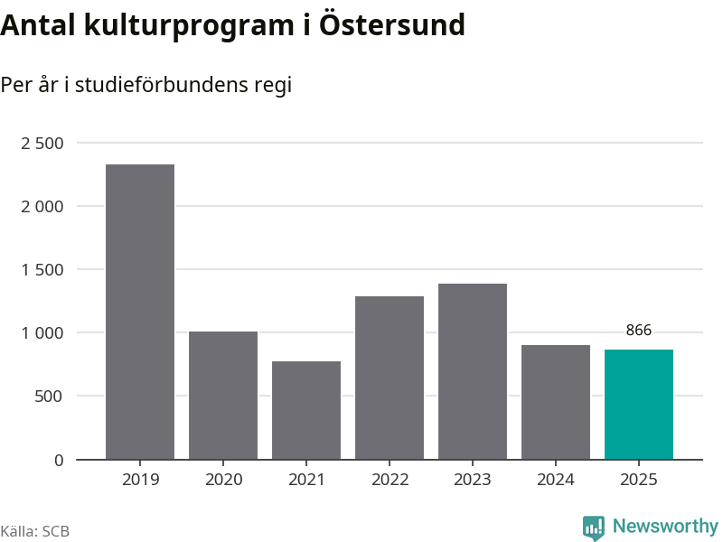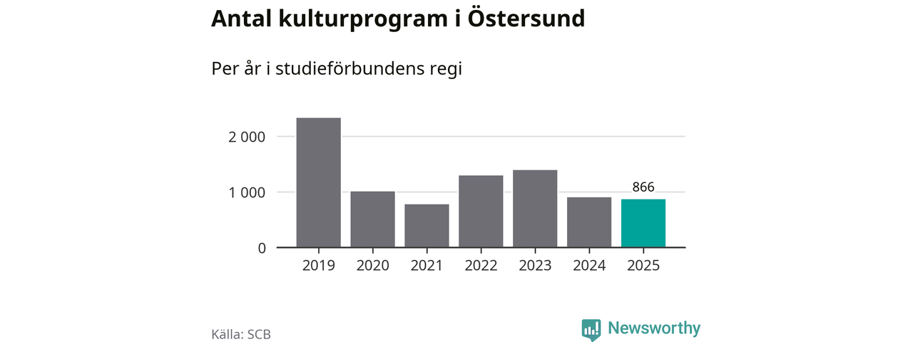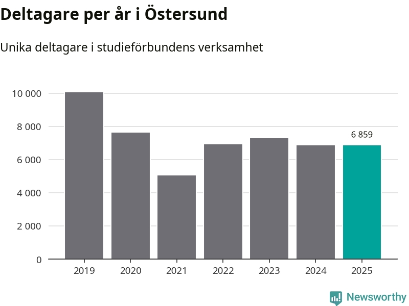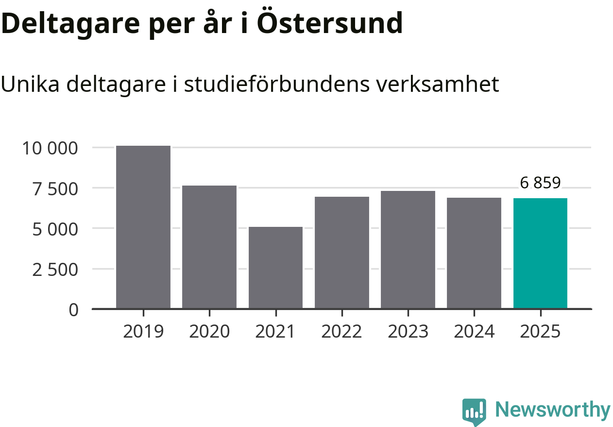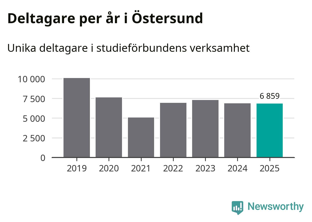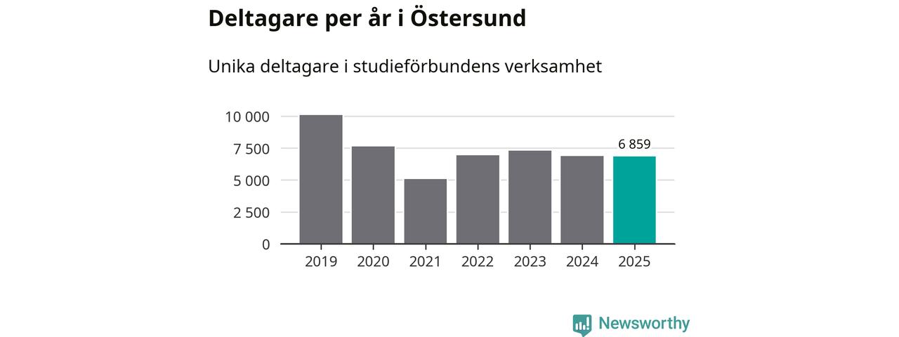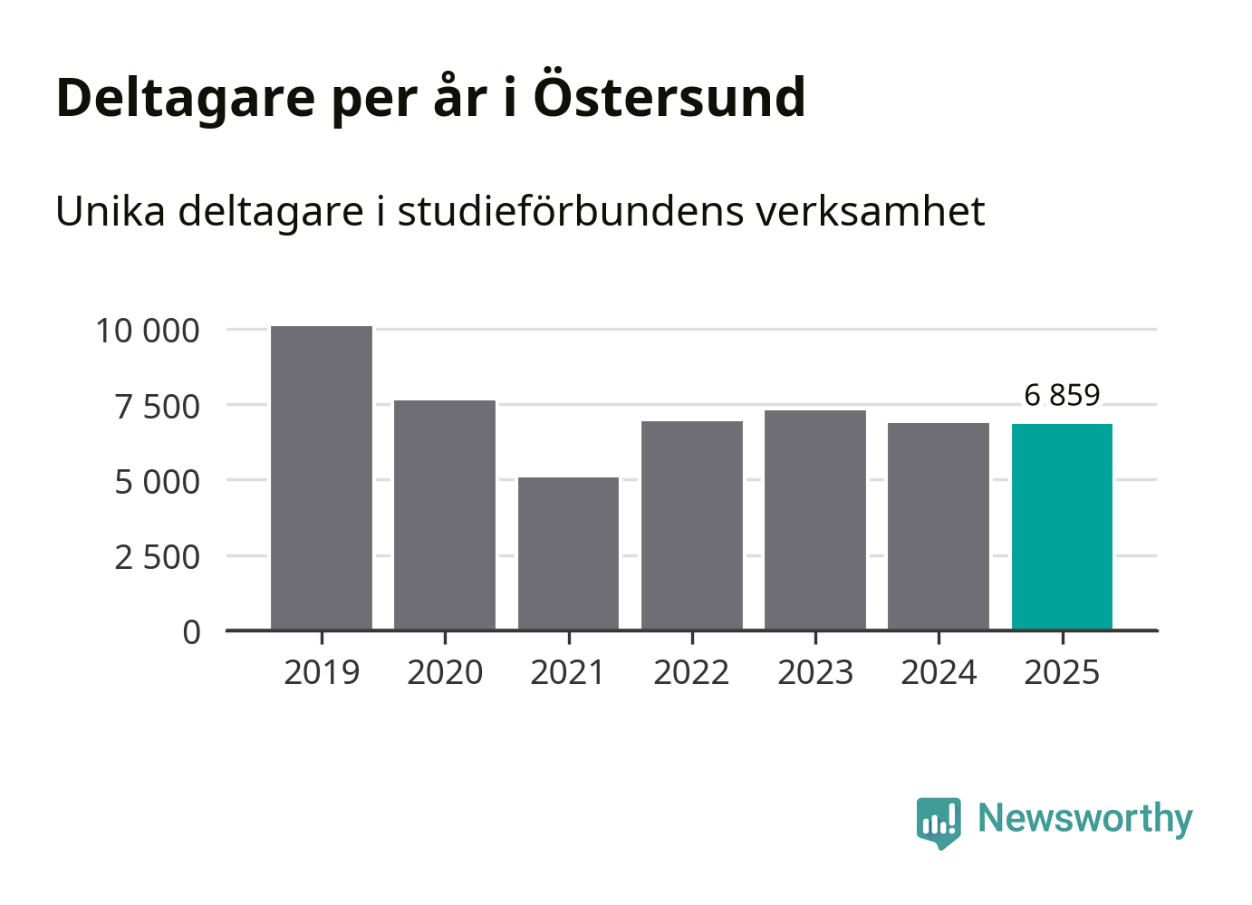 Omkring 6 900 Östersundsbor deltog i någon form av folkbildning under 2025, vilket är ungefär lika många som året innan. Det innebär att var tionde invånare i kommunen deltog i studieförbundens verksamhet under 2025, vilket är högre än rikssnittet.