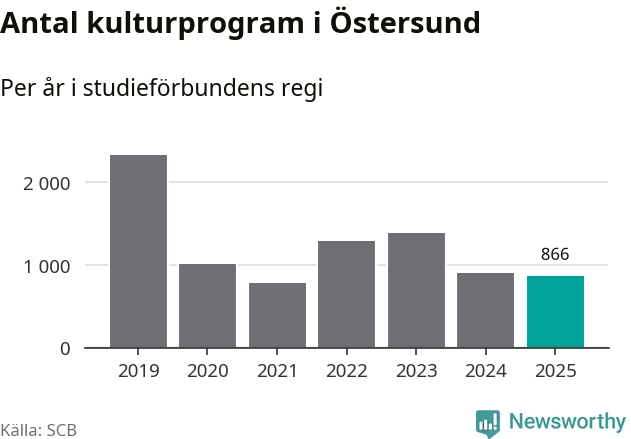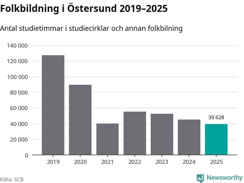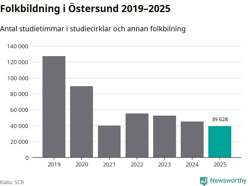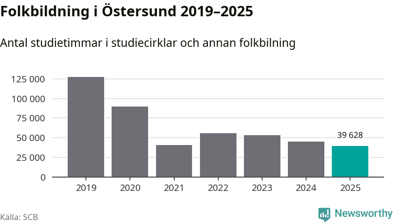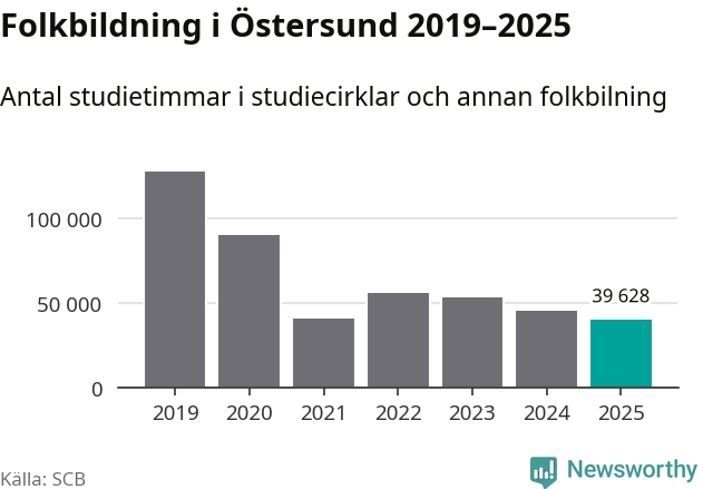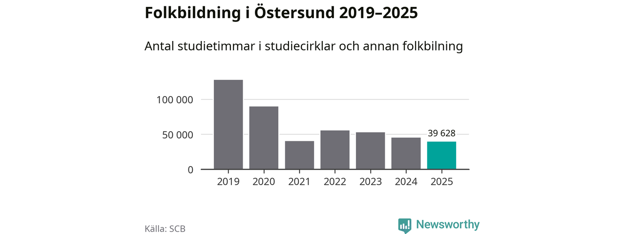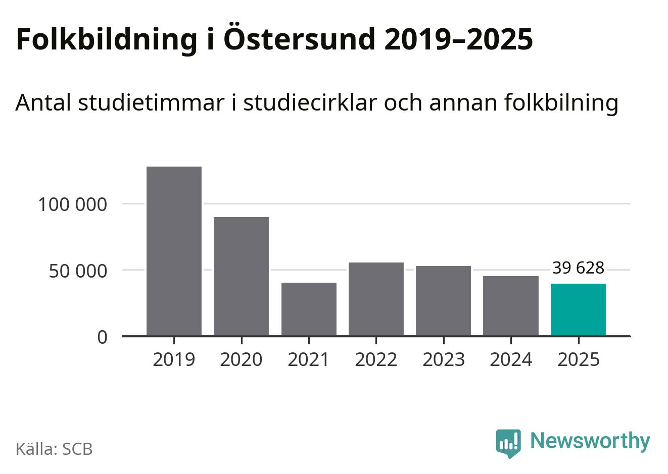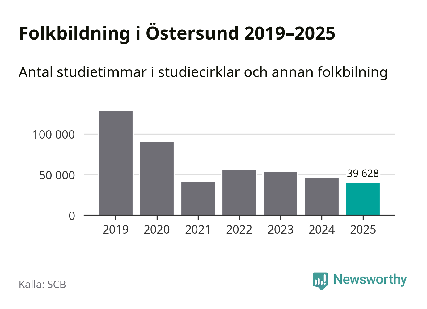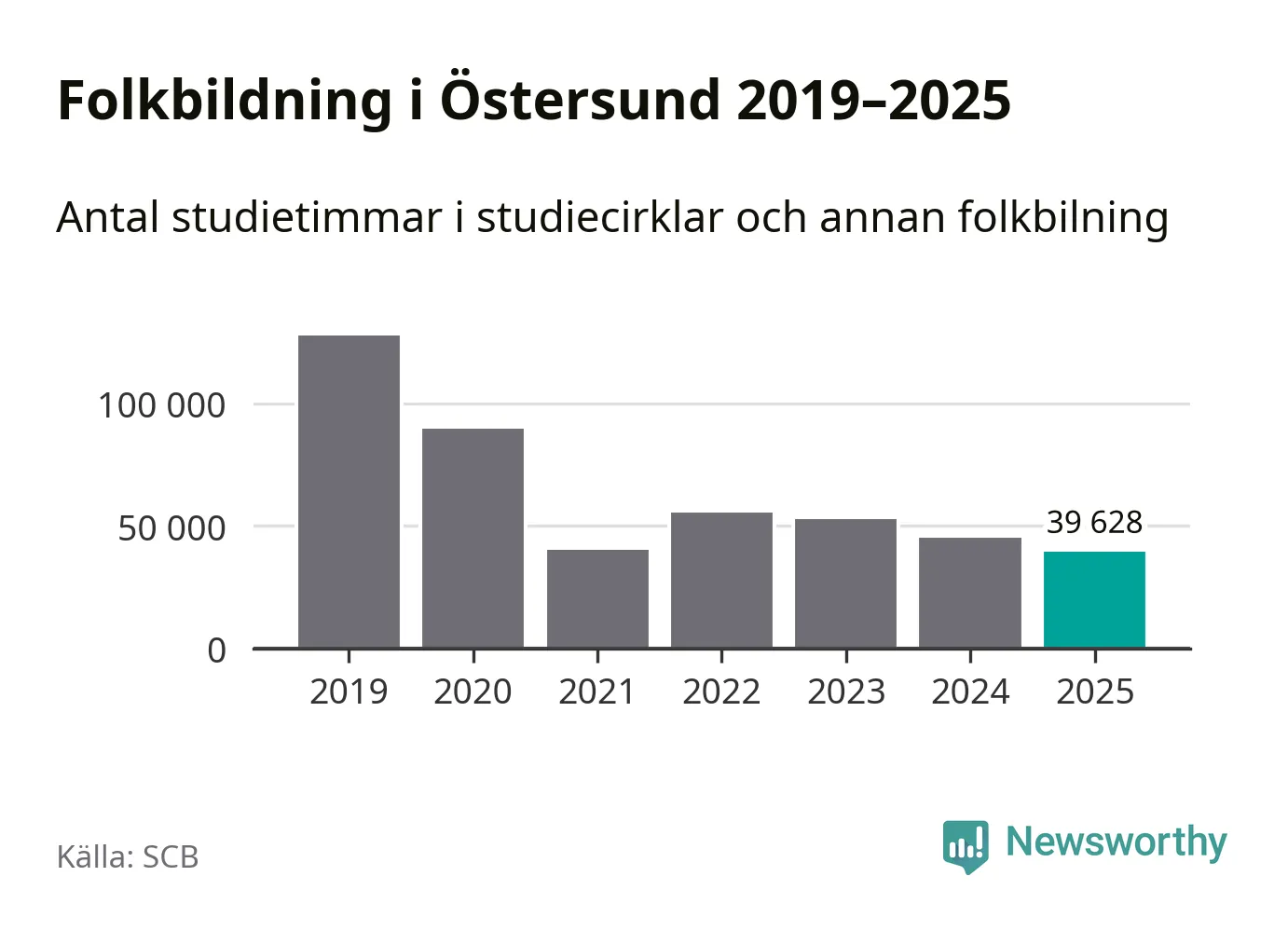 Studieförbunden drabbades hårt av pandemin. Även i Östersund noterades det lägsta antalet studietimmar under 2021, som då var 68 procent färre än 2019 – vilket är ungefär samma nivå som 2025.