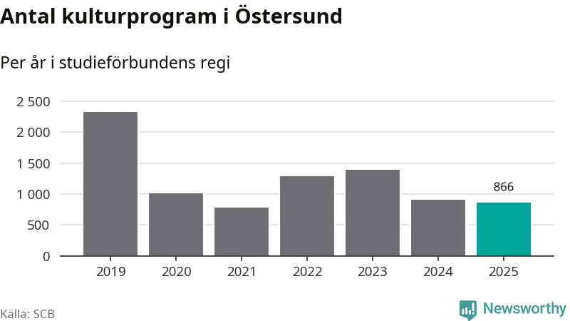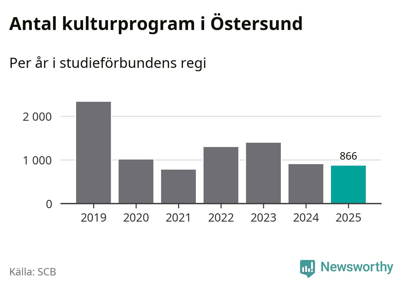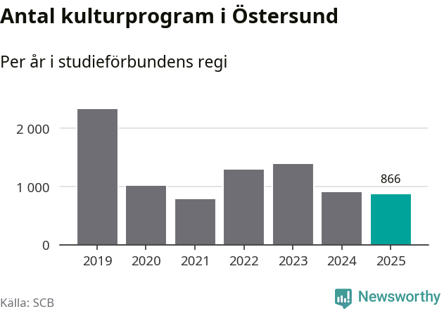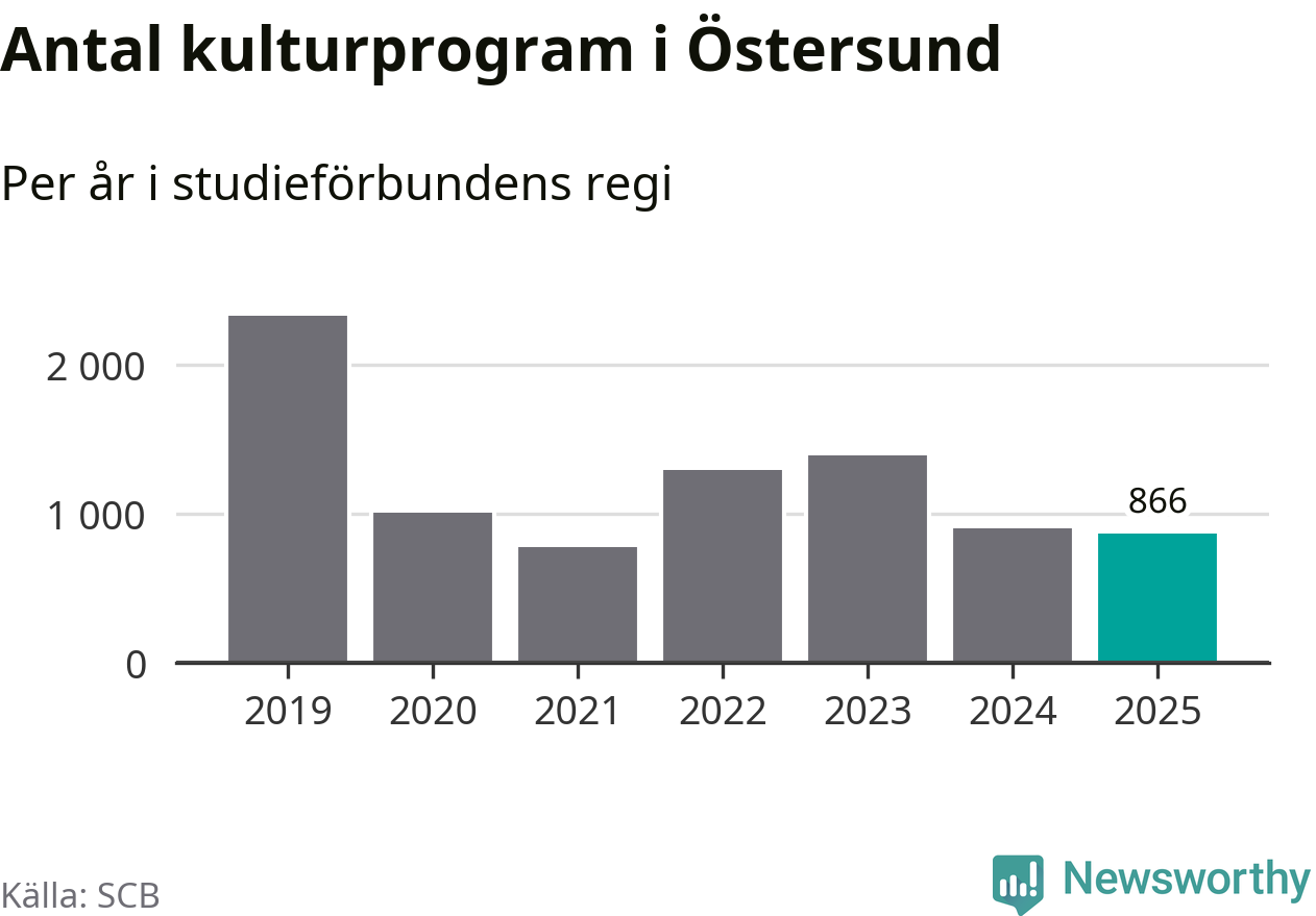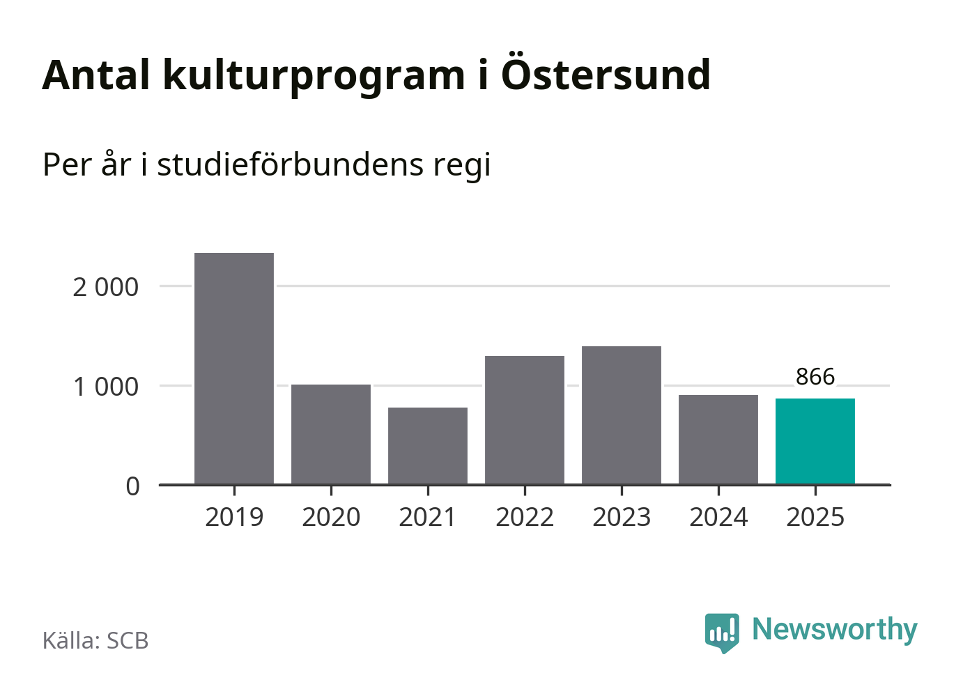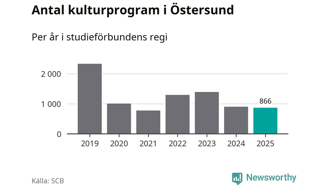 I Östersund är minskningen ännu större: förra året hade studieförbunden omkring 39 600 studietimmar i kommunen, vilket är en minskning med 13 procent jämfört med året innan. Även antalet kulturprogram i studieförbundens regi minskade, från 904 till 866 stycken.