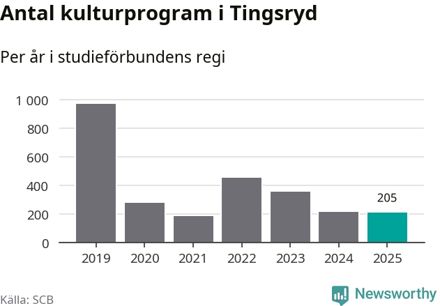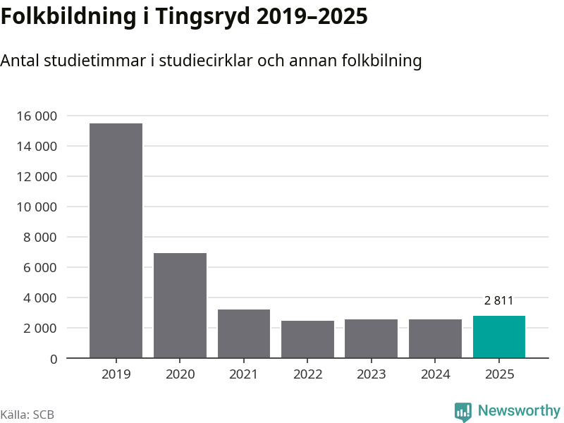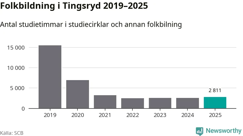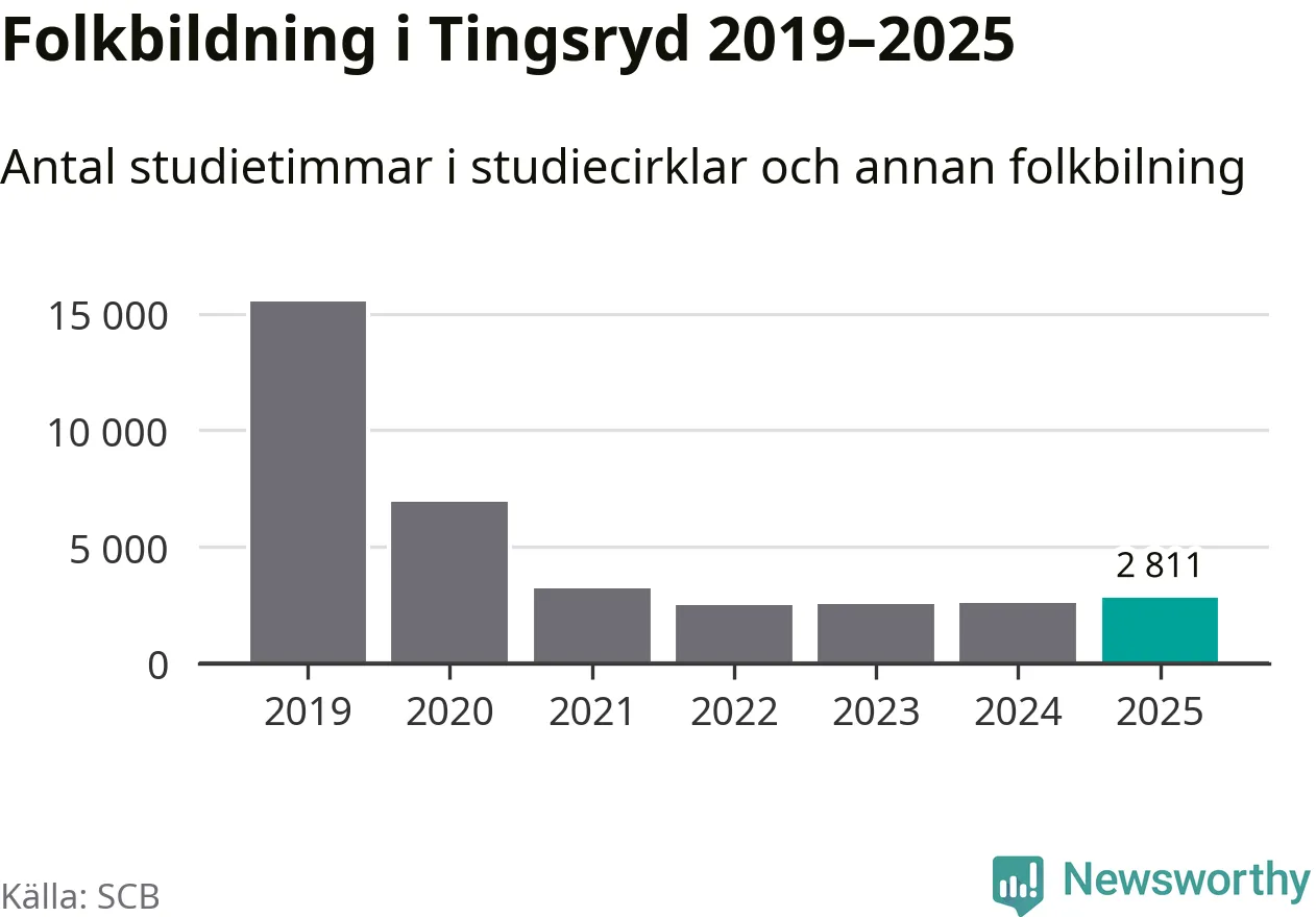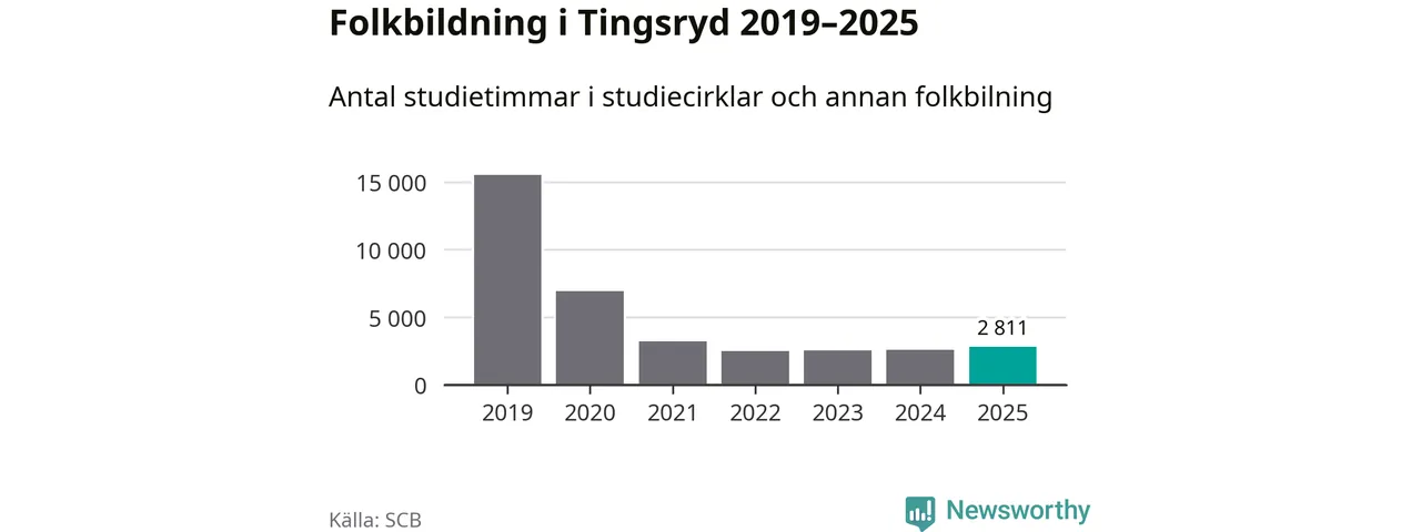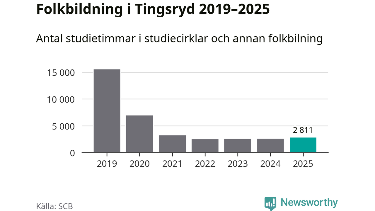 Studieförbunden drabbades hårt av pandemin. Även i Tingsryd noterades det lägsta antalet studietimmar under 2021, som då var 79 procent färre än 2019 – vilket fortfarande är fler än 2025.