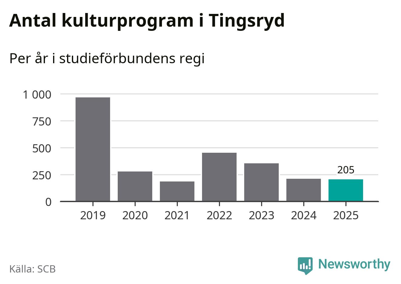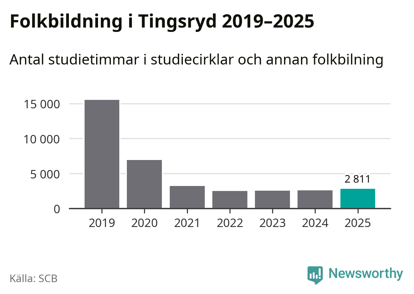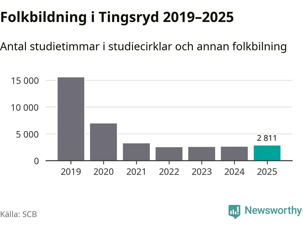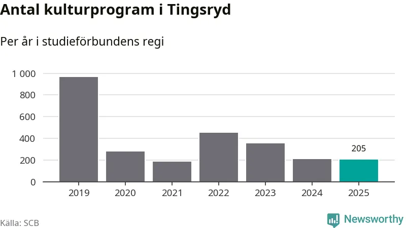Studieförbunden drabbades hårt av pandemin. Även i Tingsryd noterades det lägsta antalet studietimmar under 2021, som då var 79 procent färre än 2019 – vilket fortfarande är fler än 2025.