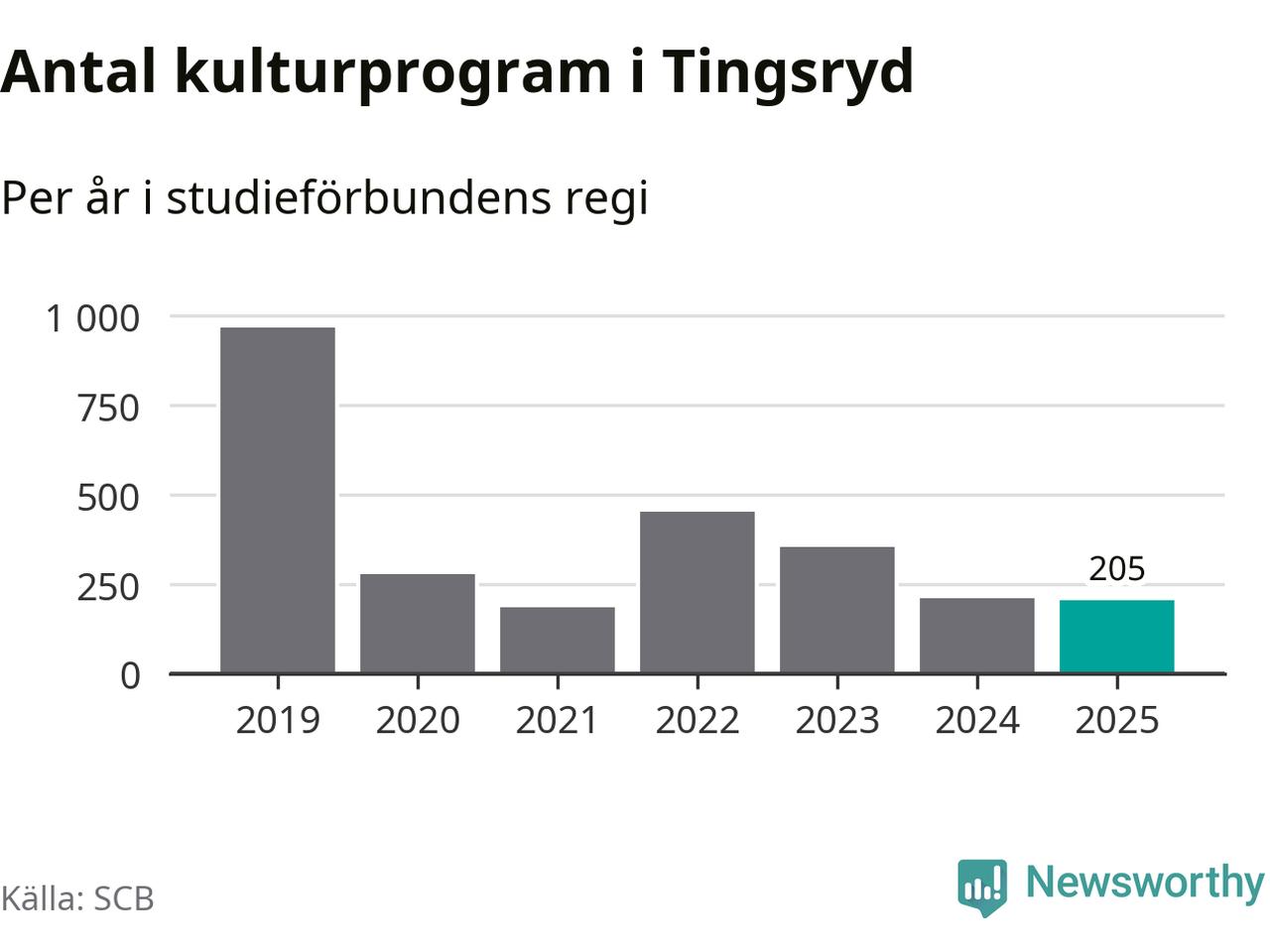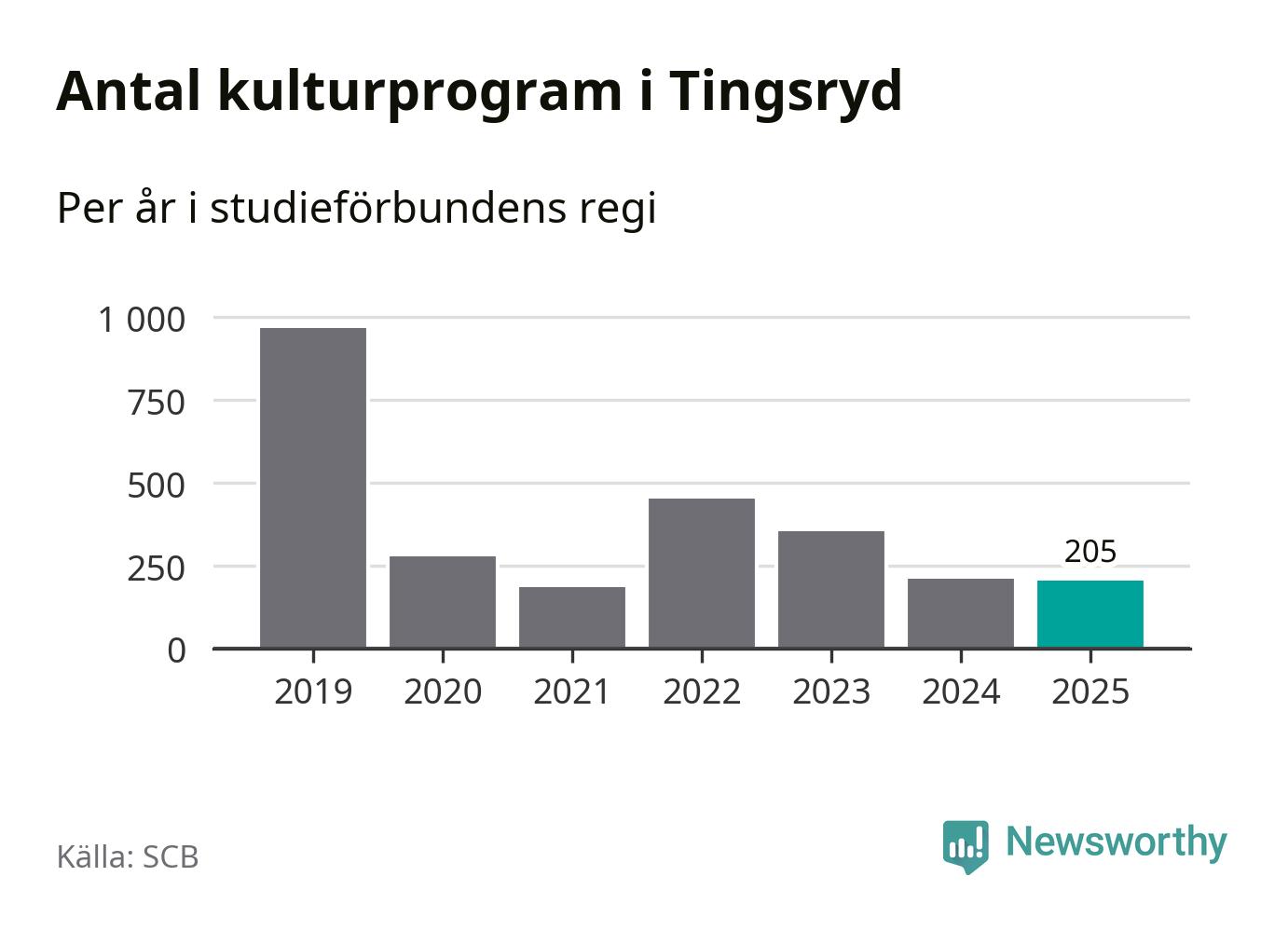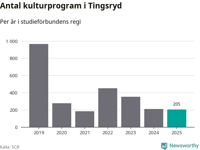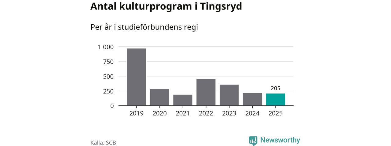 Åtta av de studieförbund som 2025 fick bidrag från Folkbildningsrådet har haft någon form av verksamhet – antingen studiecirkel, annan folkbildning eller kulturprogram – i Tingsryd under de två senaste åren. Under 2025 ökade fyra förbund antalet studietimmar i kommunen jämfört med året innan, medan tre andra förbund i kommunen noterade färre timmar. Folkuniversitetet och Medborgarskolan hade ingen verksamhet i kommunen förra året.