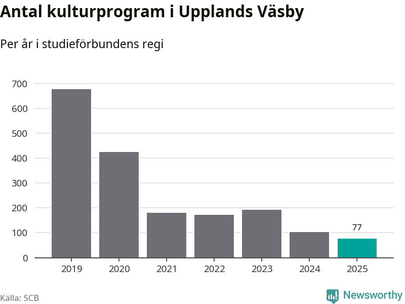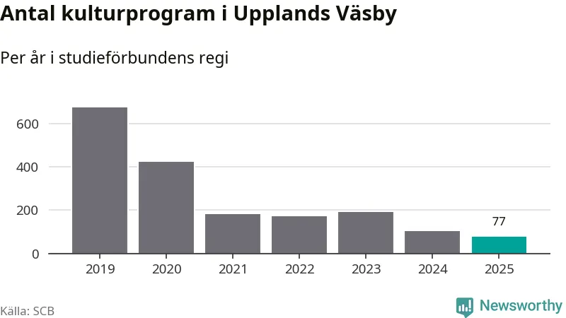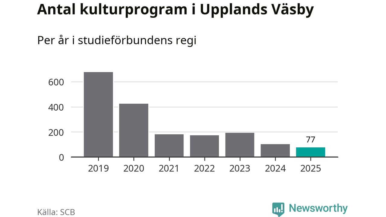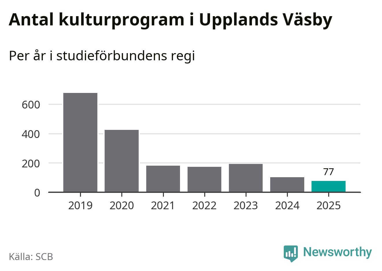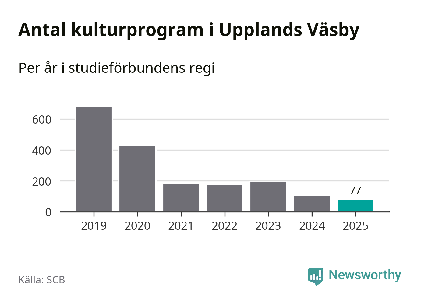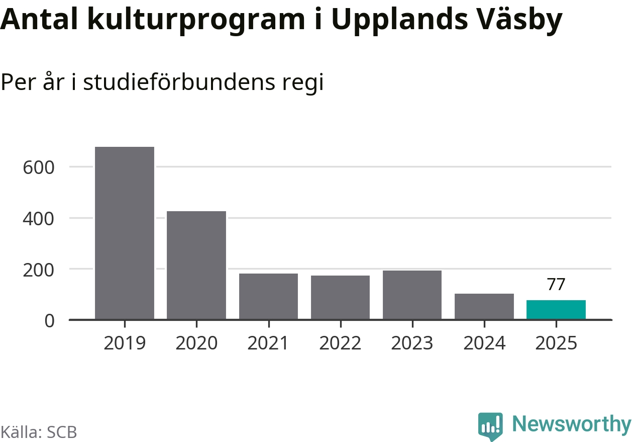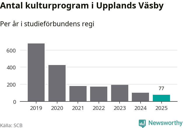 I Upplands Väsby är antalet studietimmar nästan lika många som året innan medan antalet kulturarrangemang i studieförbundens regi minskade.