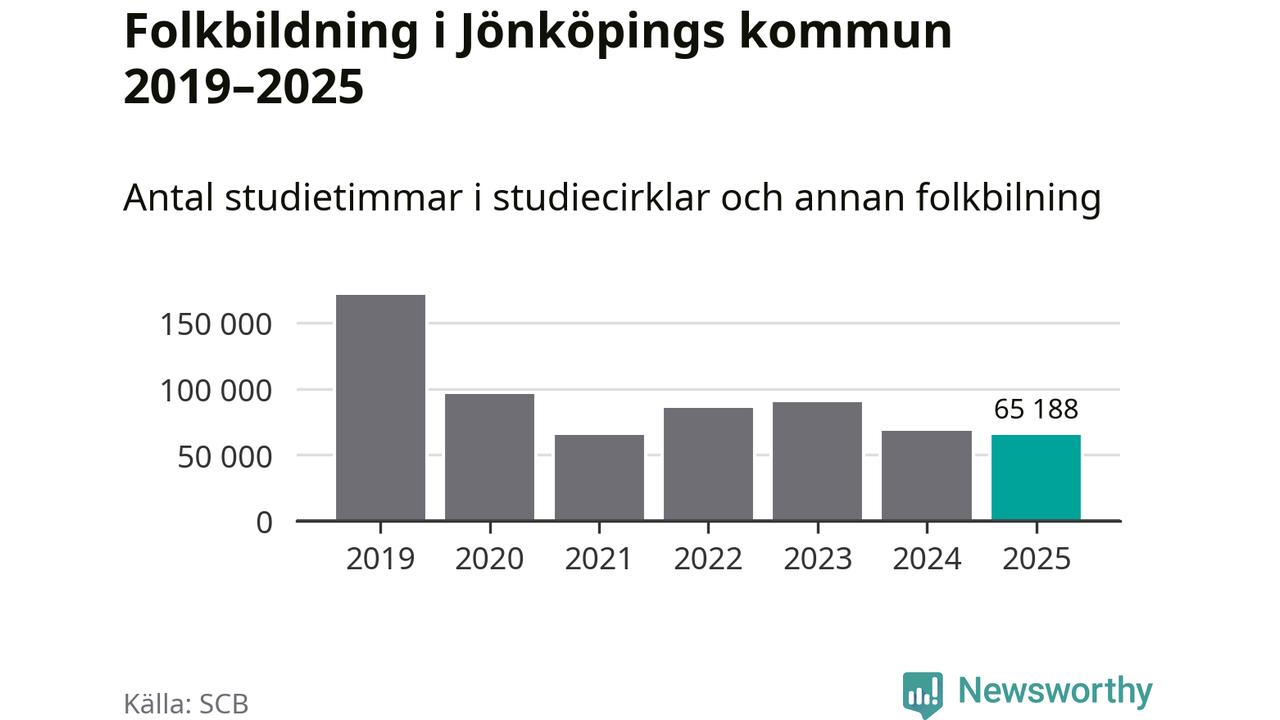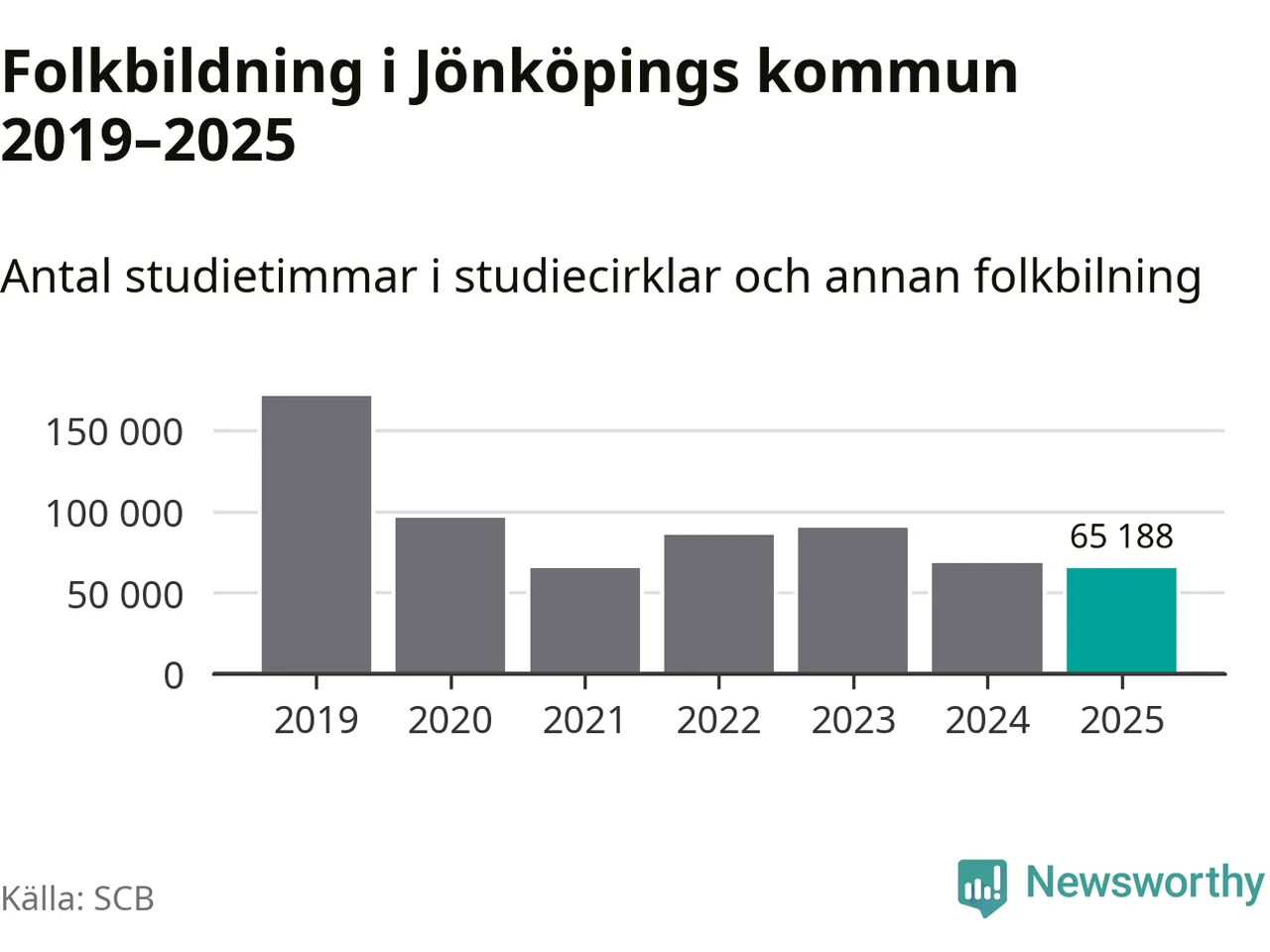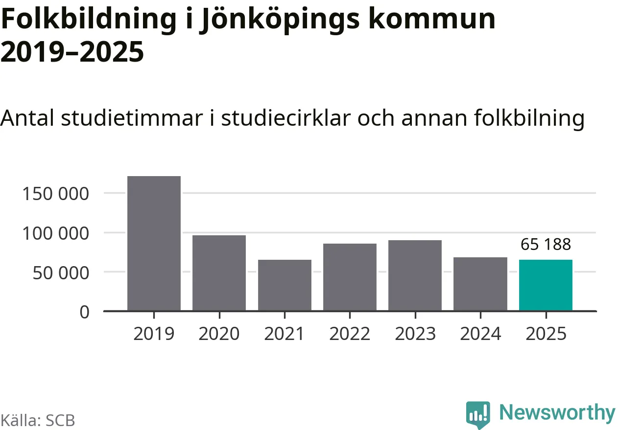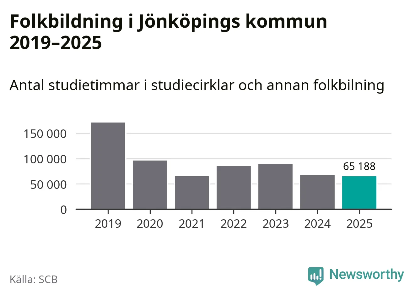 Studieförbunden drabbades hårt av pandemin. Även i Jönköpings kommun noterades det lägsta antalet studietimmar under 2021, som då var 62 procent färre än 2019 – vilket är ungefär samma nivå som 2025.