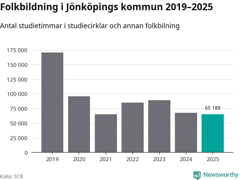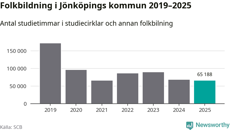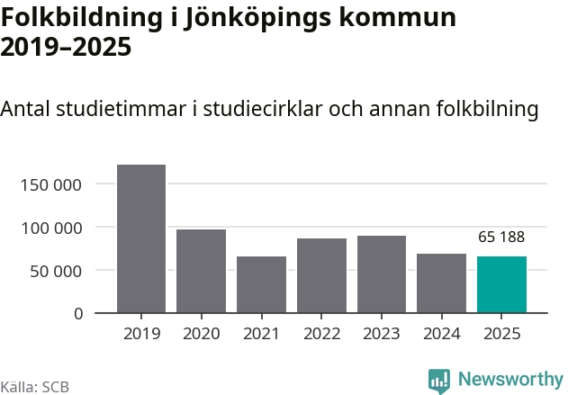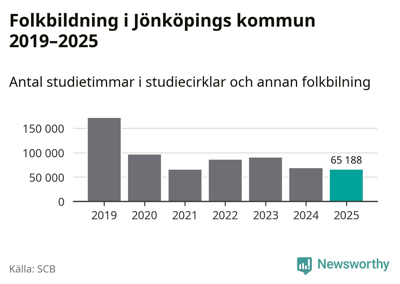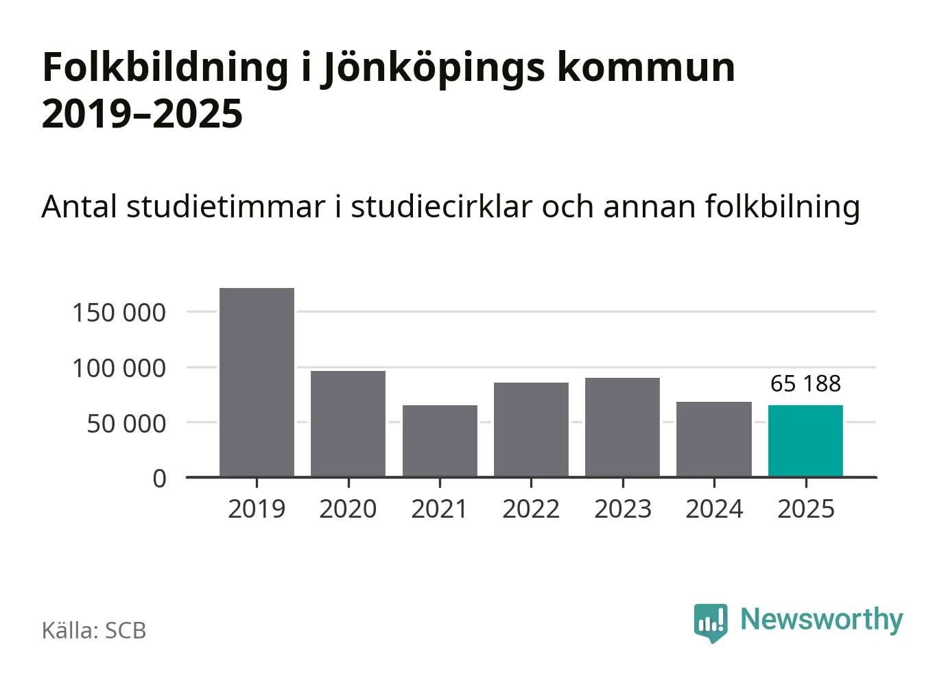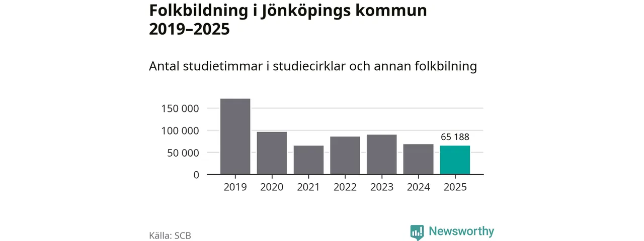 Studieförbunden drabbades hårt av pandemin. Även i Jönköpings kommun noterades det lägsta antalet studietimmar under 2021, som då var 62 procent färre än 2019 – vilket är ungefär samma nivå som 2025.