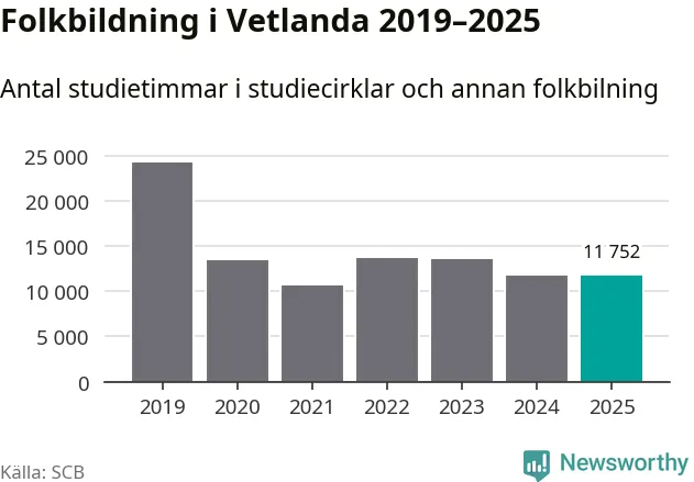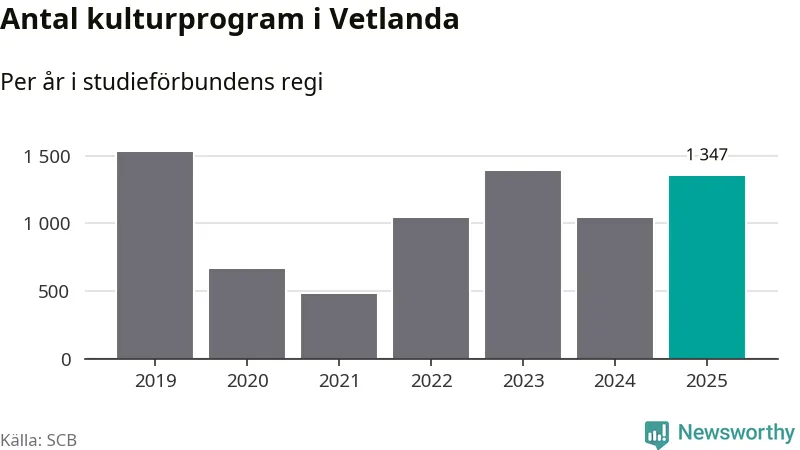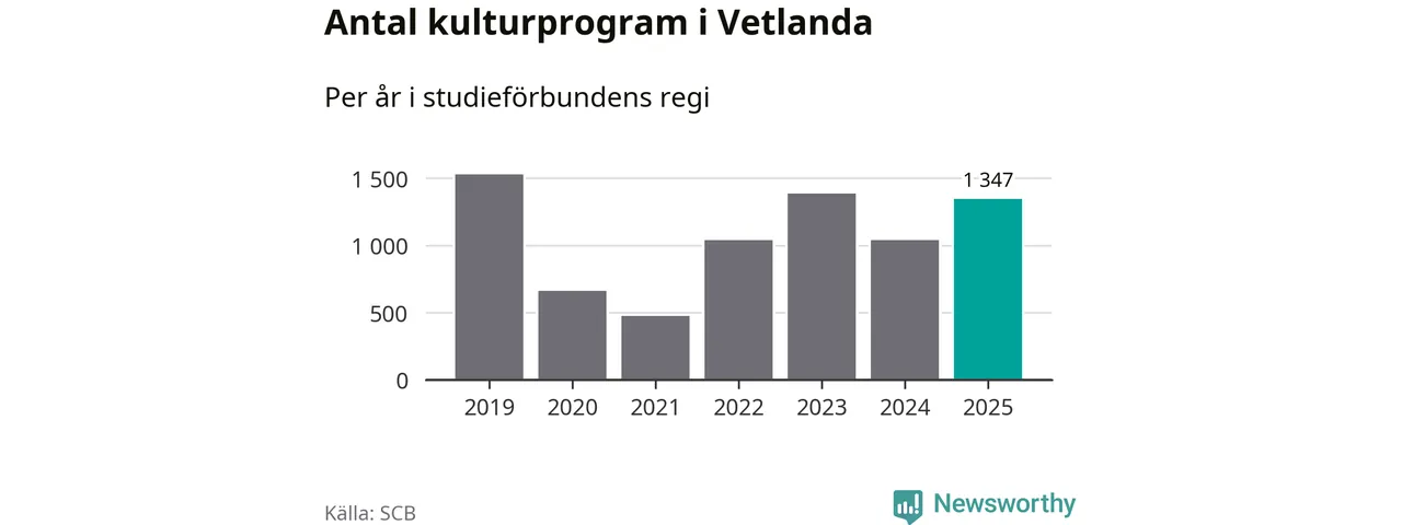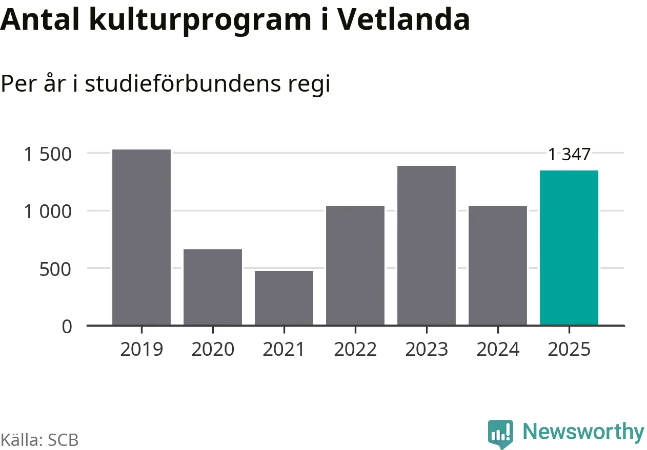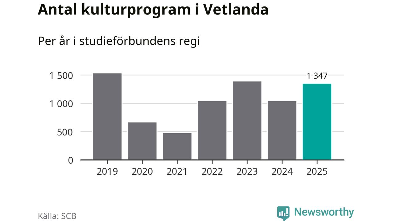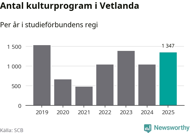 I Vetlanda är antalet studietimmar nästan lika många som året innan och antalet kulturarrangemang i studieförbundens regi blev fler.