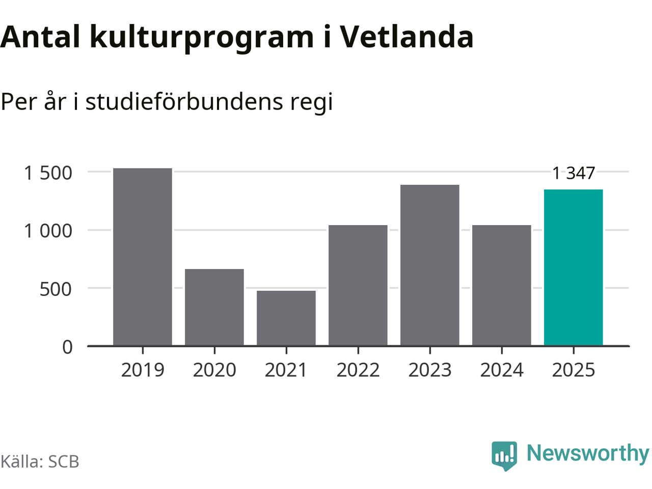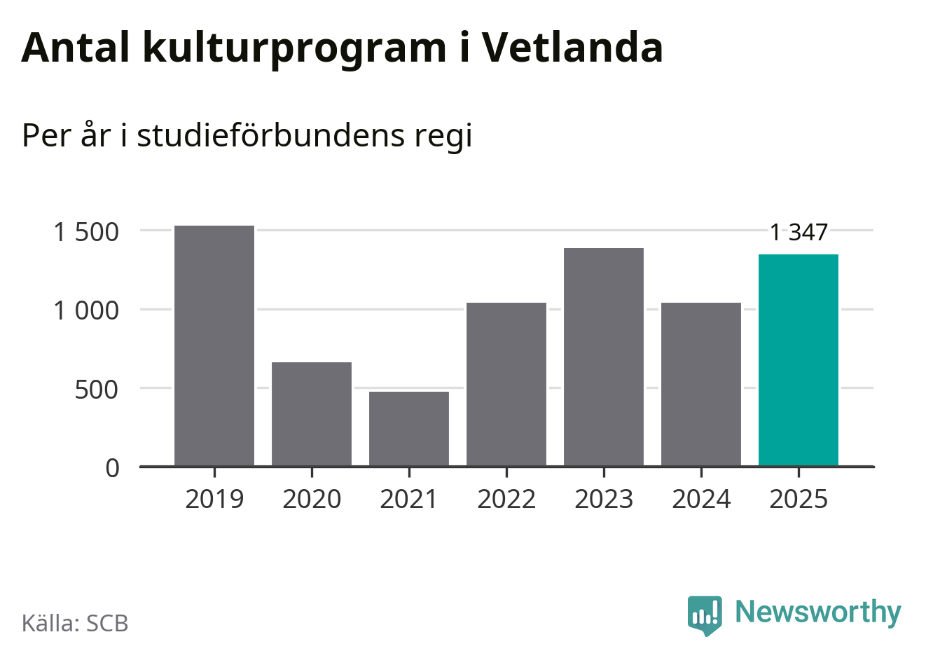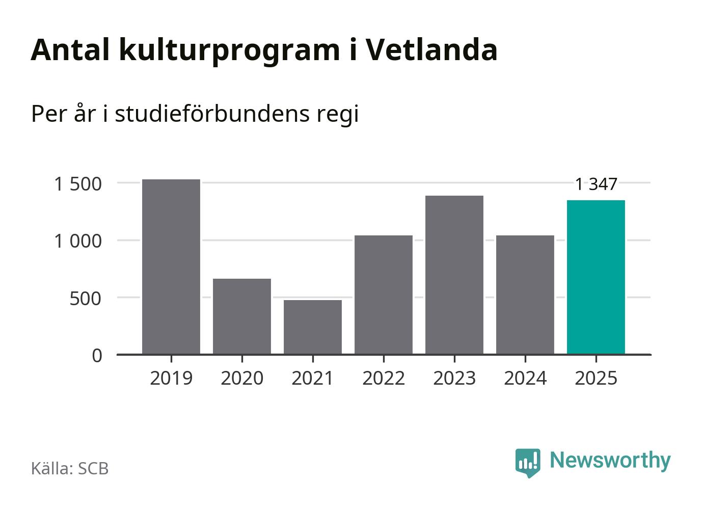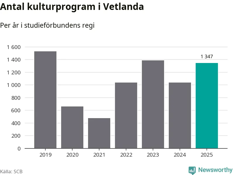 I Vetlanda är antalet studietimmar nästan lika många som året innan och antalet kulturarrangemang i studieförbundens regi blev fler.