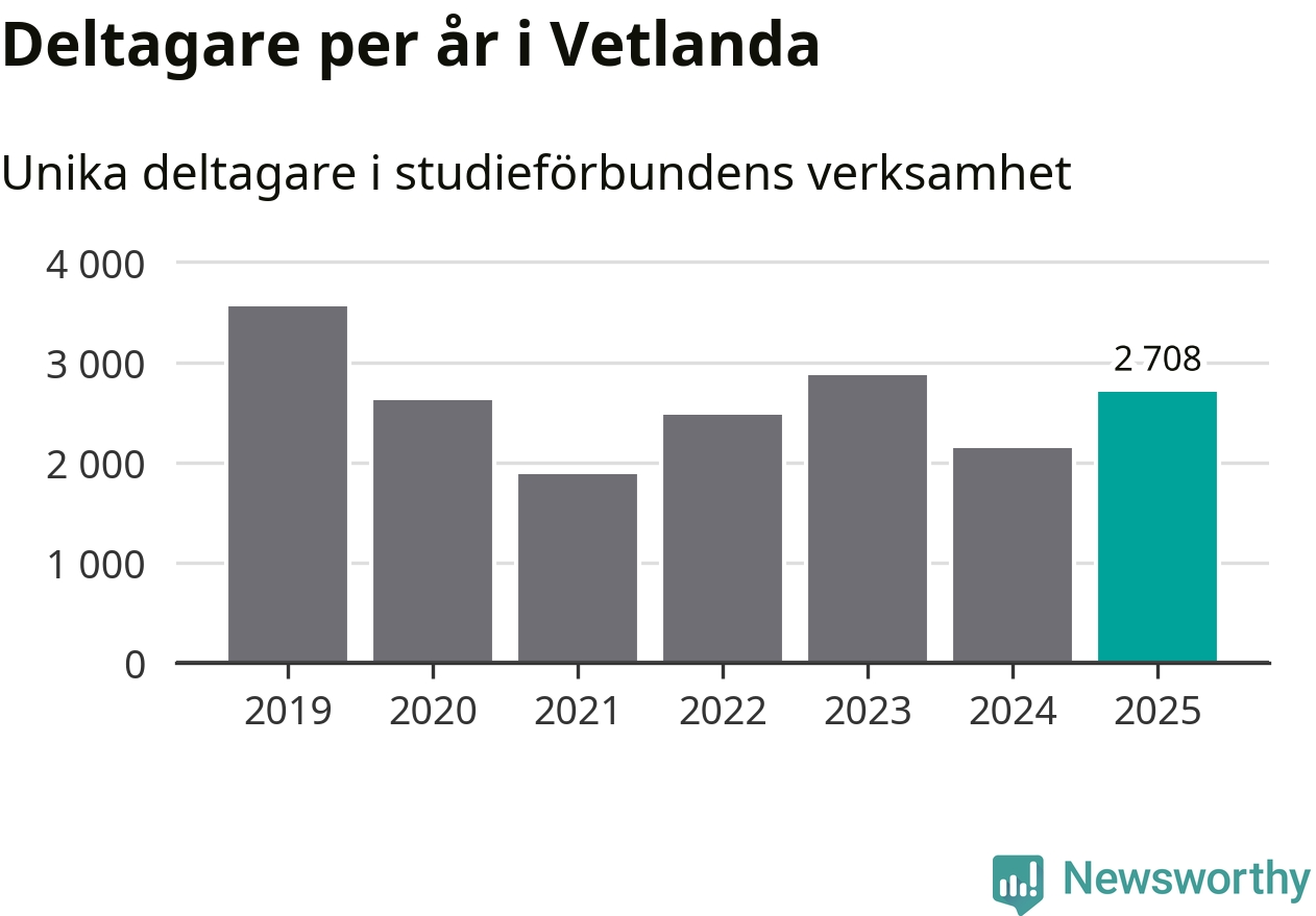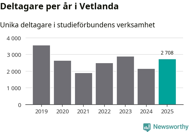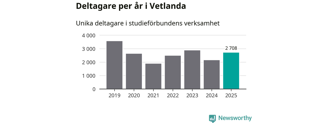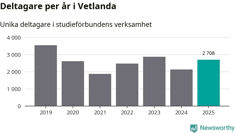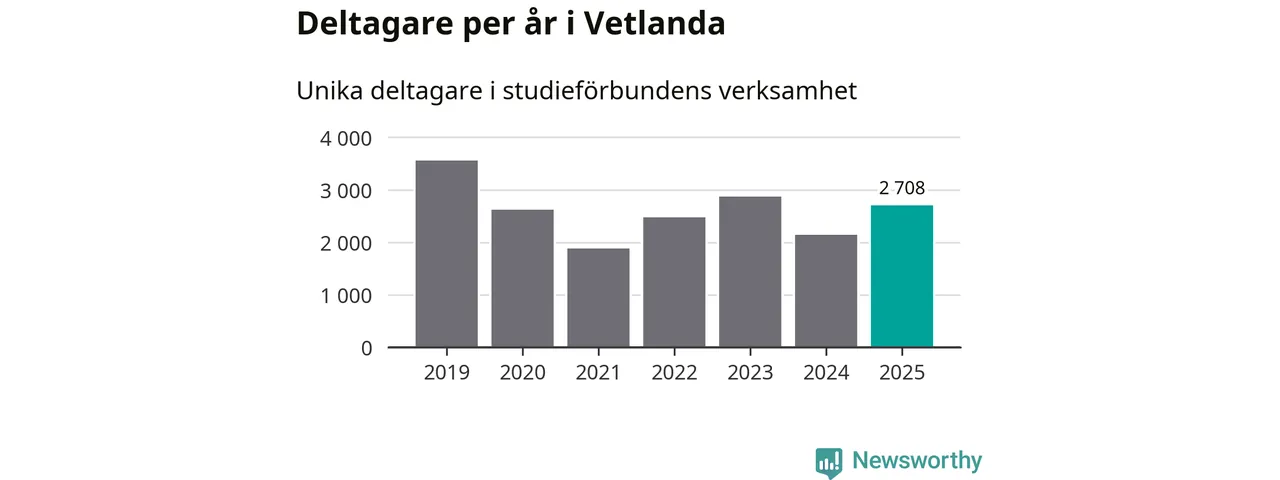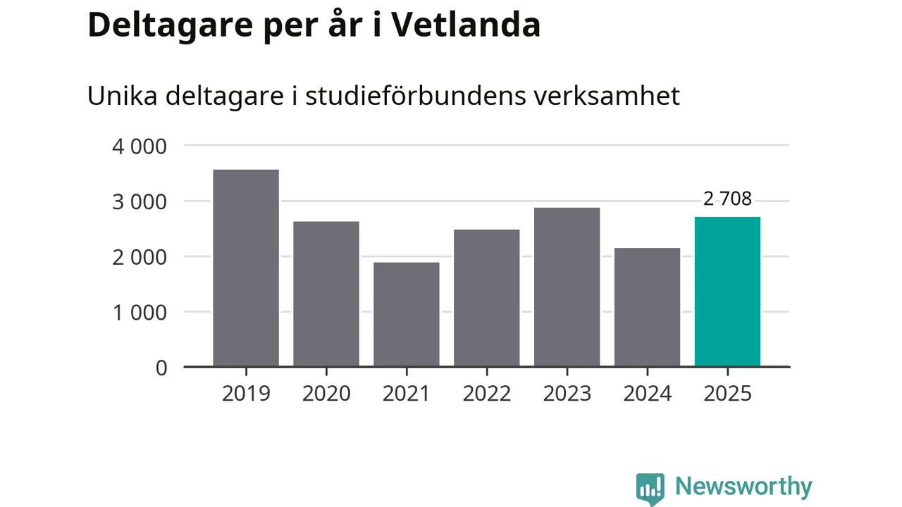 Antalet unika deltagare ökade i Vetlanda i fjol: från 2 140 till 2 708 personer. Det innebär att var tionde invånare i kommunen deltog i studieförbundens verksamhet under 2025, vilket är högre än rikssnittet.