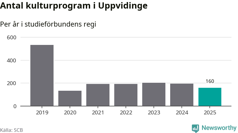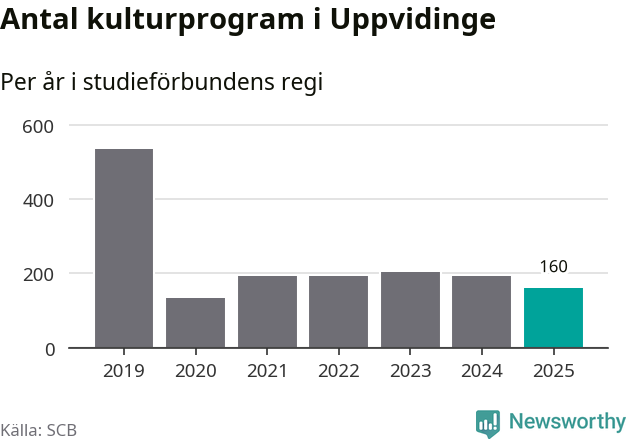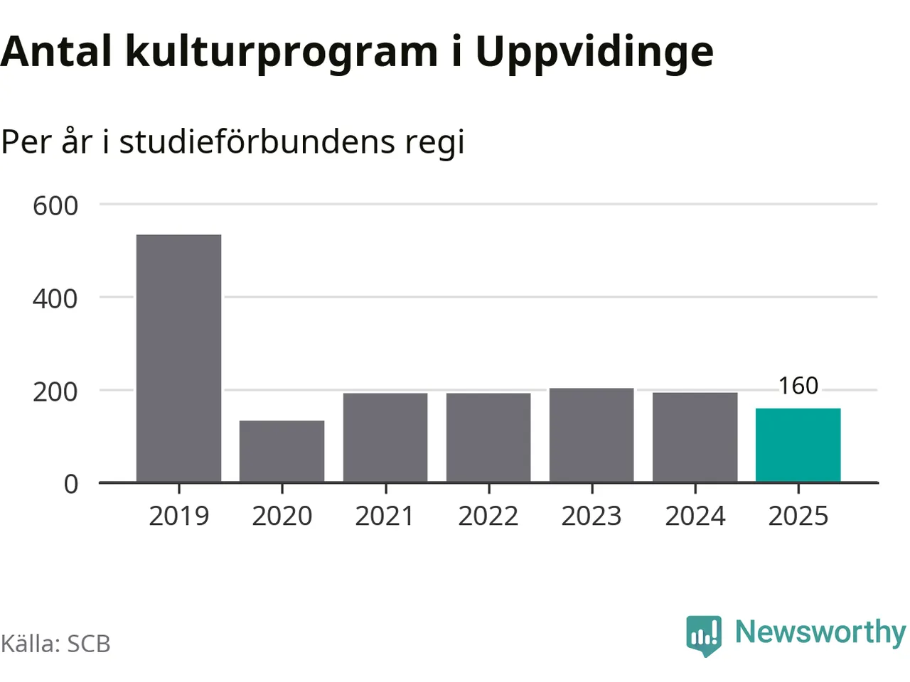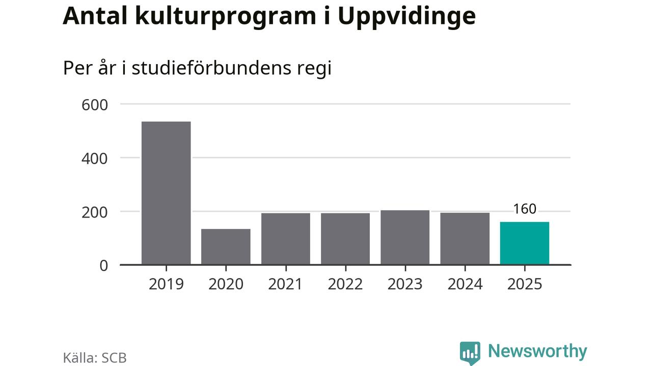 De svåra tiderna fortsätter för studieförbunden. Under 2024 och 2025 skars statsbidragen ner med totalt 350 miljoner kronor och under 2026 kapas de med ytterligare 150 miljoner kronor. Det har lett till uppsägning av personal, uppsagda lokaler och arbetsställen i allt färre kommuner. Och det märks i de färska siffrorna från SCB och Folkbildningsrådet: Under 2025 föll antalet studietimmar i studiecirklar och liknande verksamhet med sex procent jämfört med året innan. Det är tredje året i rad med färre studietimmar. Samtidigt minskade antalet kulturprogram som studieförbunden arrangerade med nio procent.