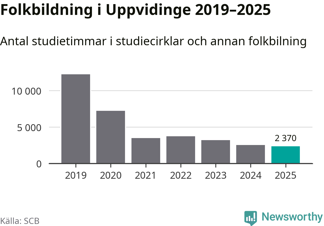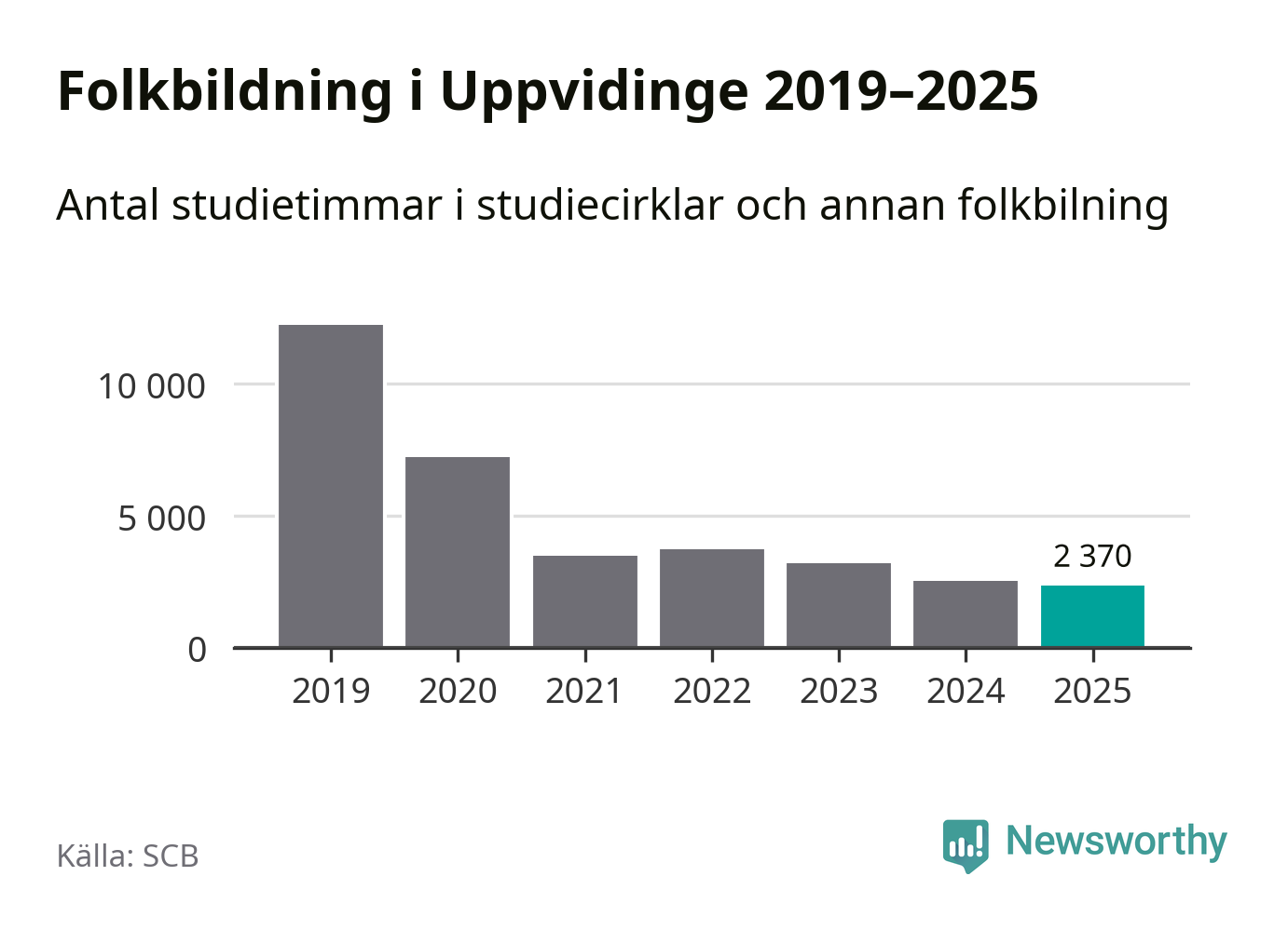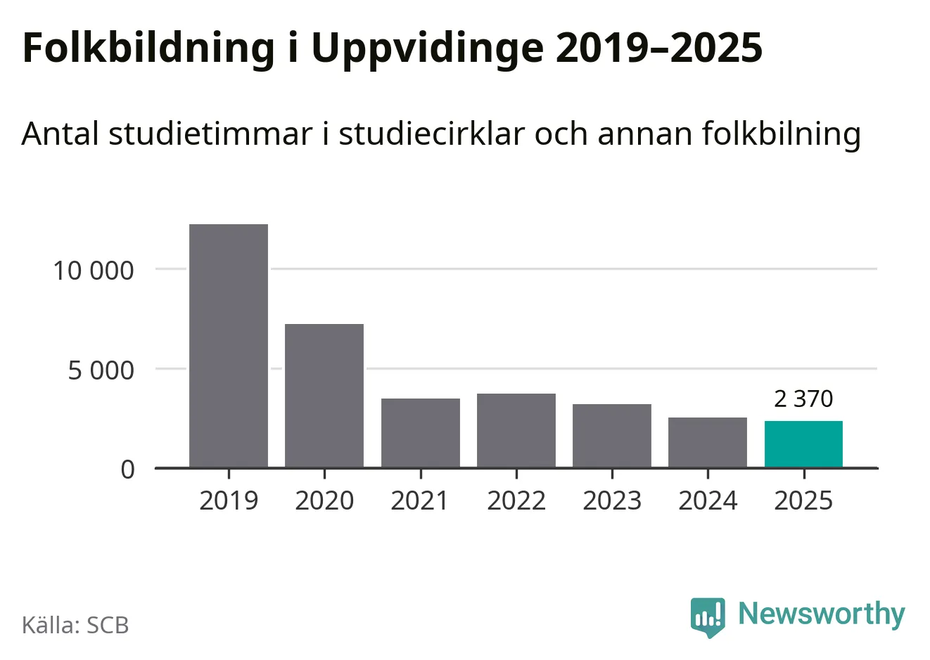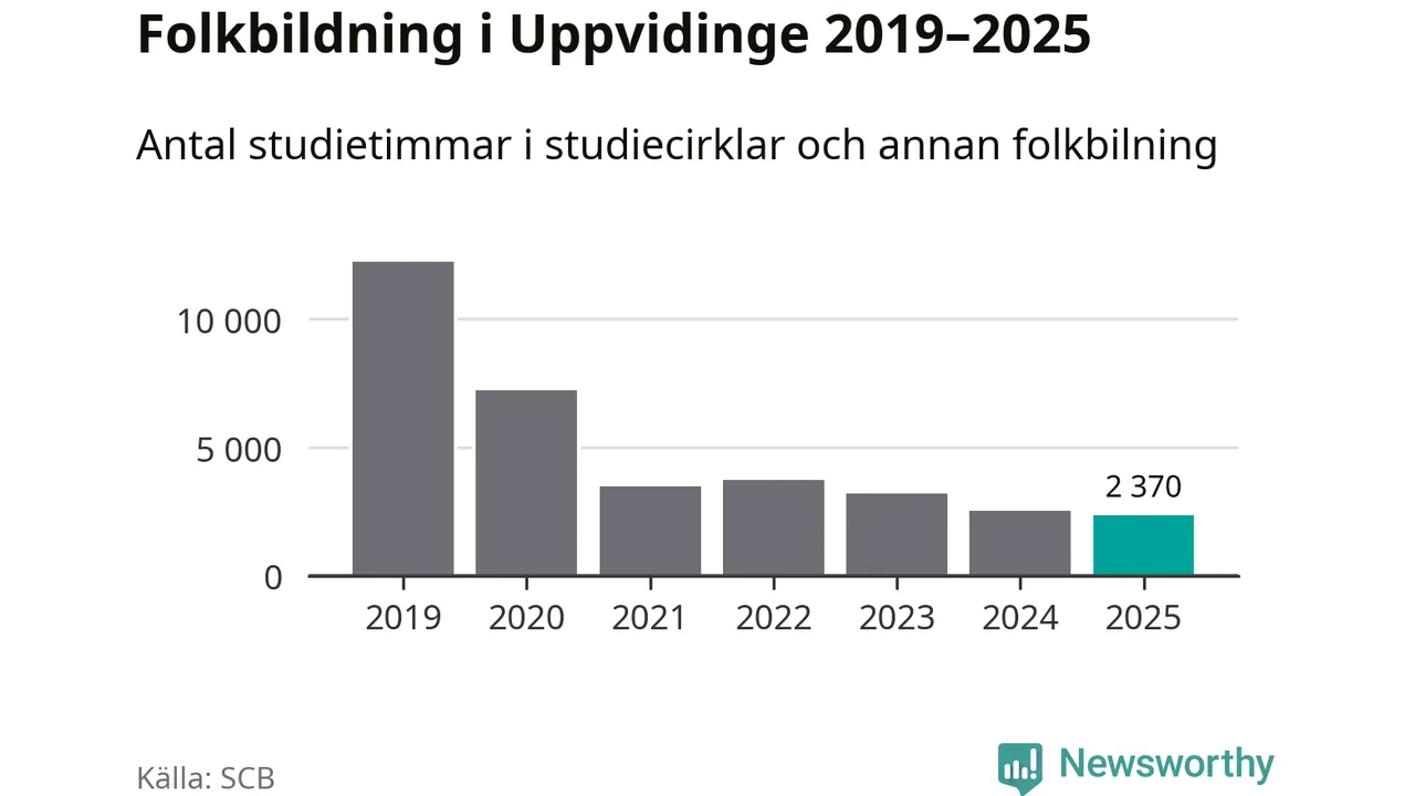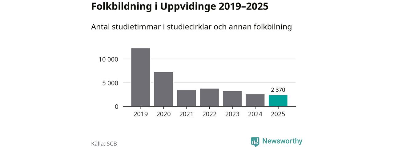 Studieförbunden drabbades hårt av pandemin. Även i Uppvidinge noterades det lägsta antalet studietimmar under 2021, som då var 71 procent färre än 2019 – vilket fortfarande är fler än 2025.