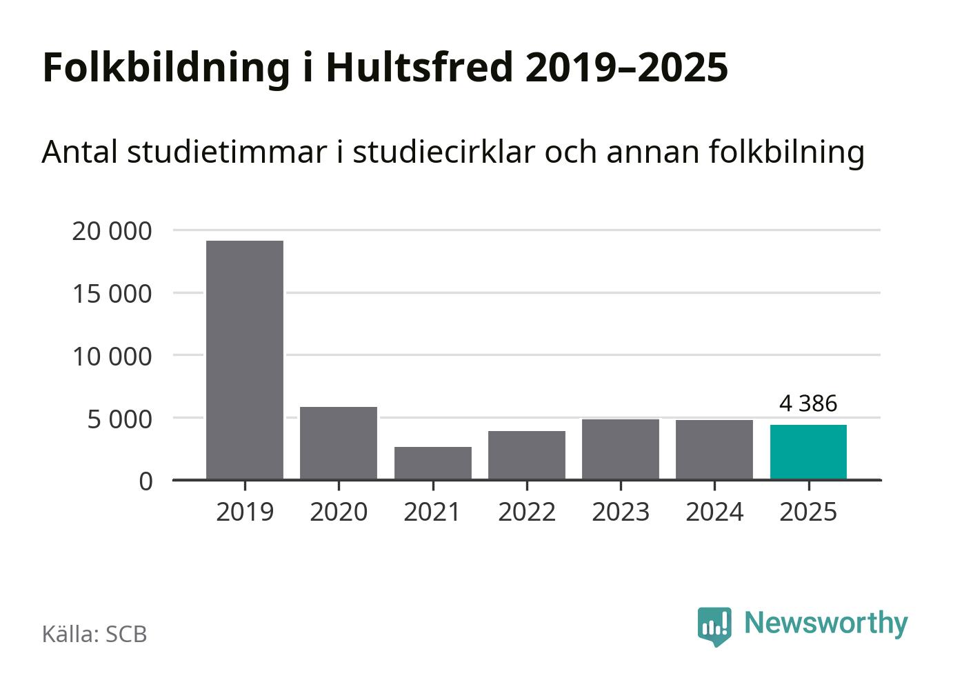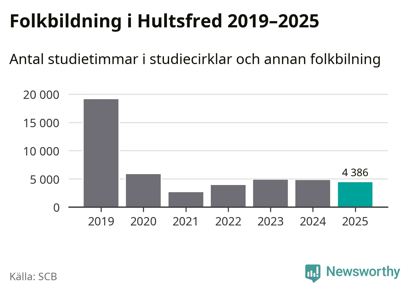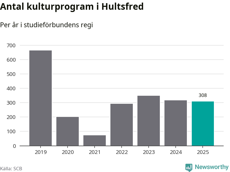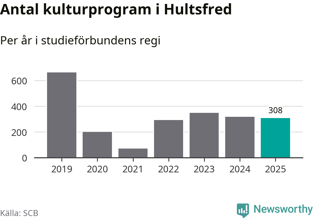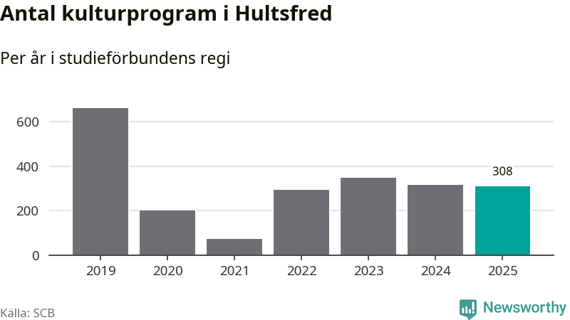 Studieförbunden drabbades hårt av pandemin. Även i Hultsfred noterades det lägsta antalet studietimmar under 2021, som då var 86 procent färre än 2019. År 2024 var antalet studietimmar åter högre men de var fortfarande långt från förpandeminivåerna.