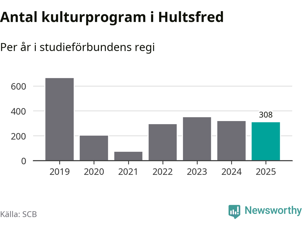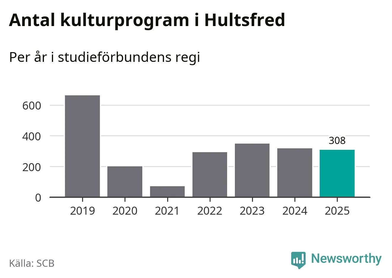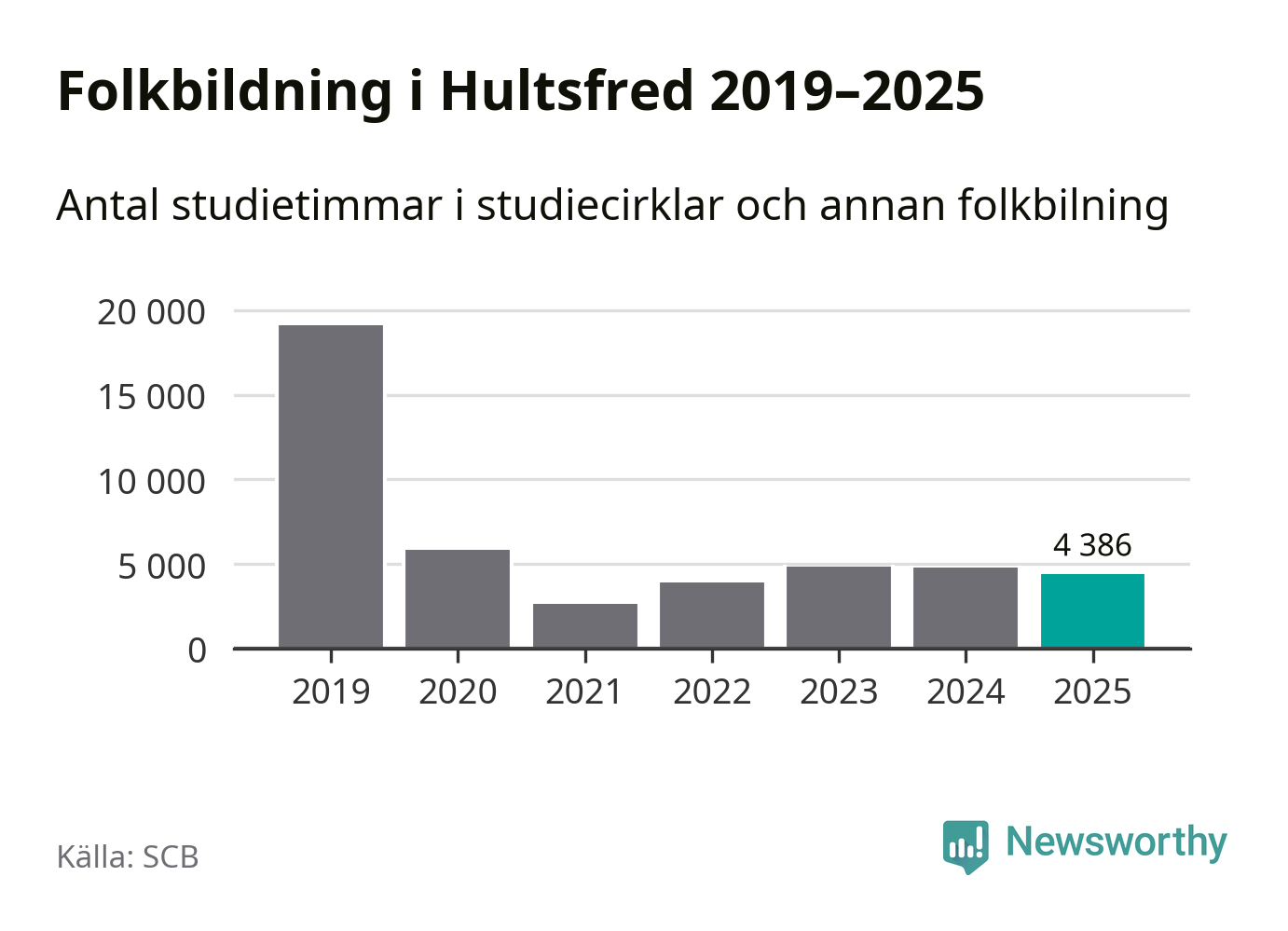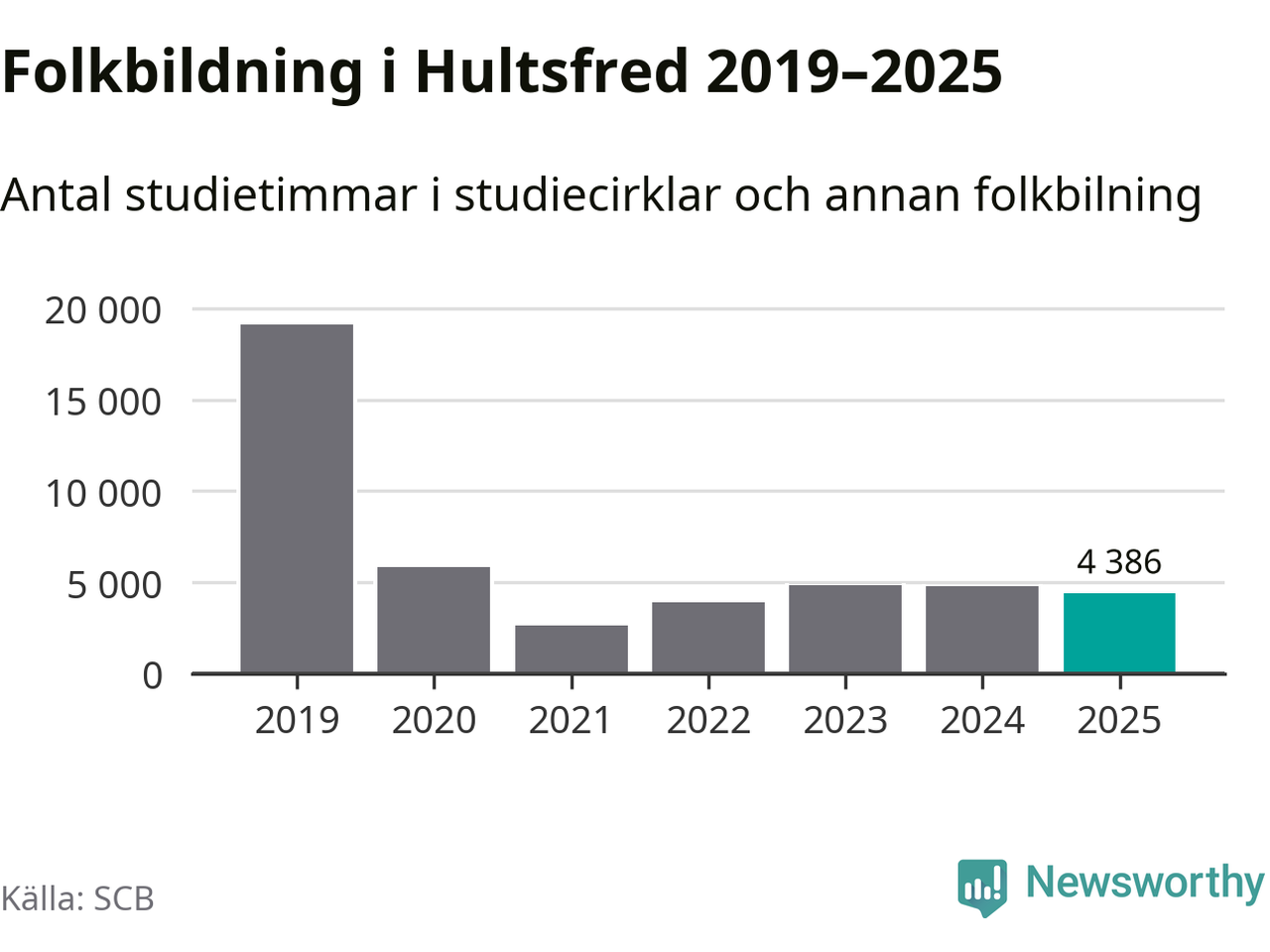 Studieförbunden drabbades hårt av pandemin. Även i Hultsfred noterades det lägsta antalet studietimmar under 2021, som då var 86 procent färre än 2019. År 2024 var antalet studietimmar åter högre men de var fortfarande långt från förpandeminivåerna.