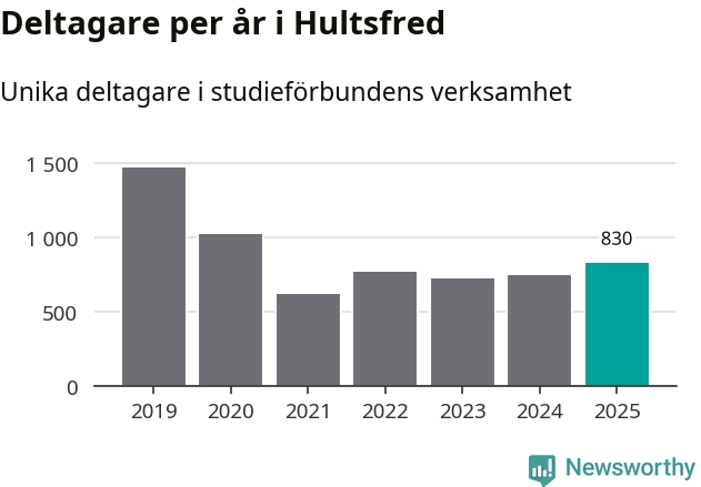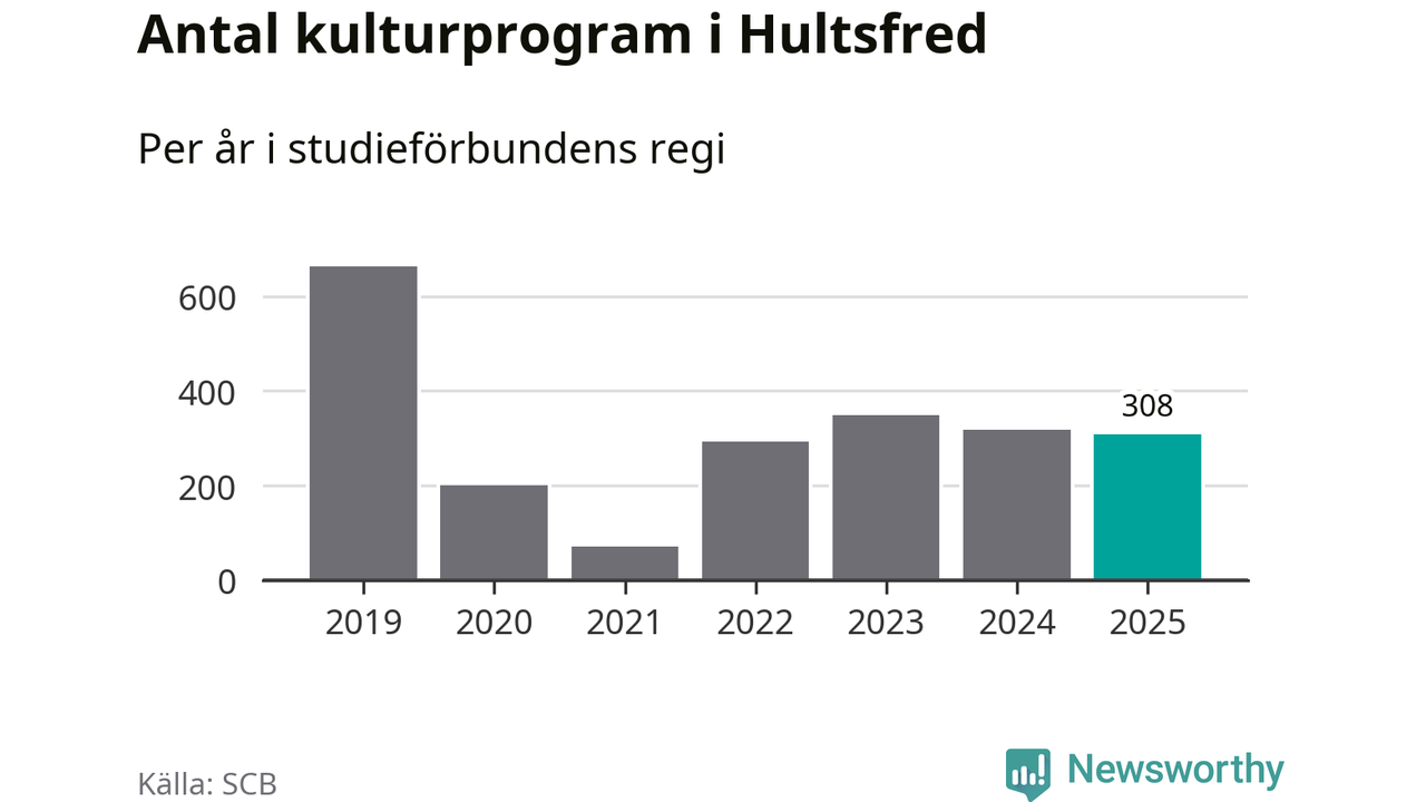 Antalet unika deltagare ökade i Hultsfred i fjol: från 747 till 830 personer. Det innebär att sex procent av befolkningen i kommunen deltog i studieförbundens verksamhet under 2025. Det är den näst lägsta andelen i Kalmar län.
