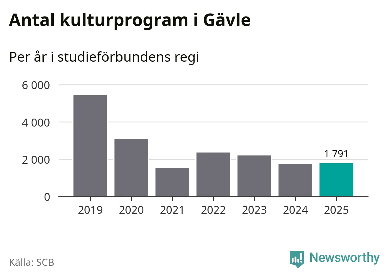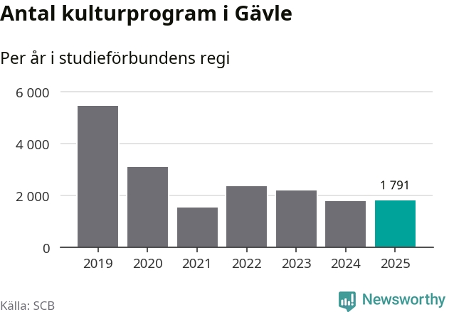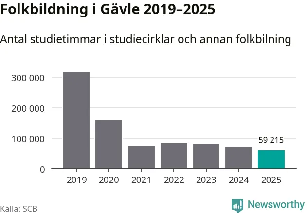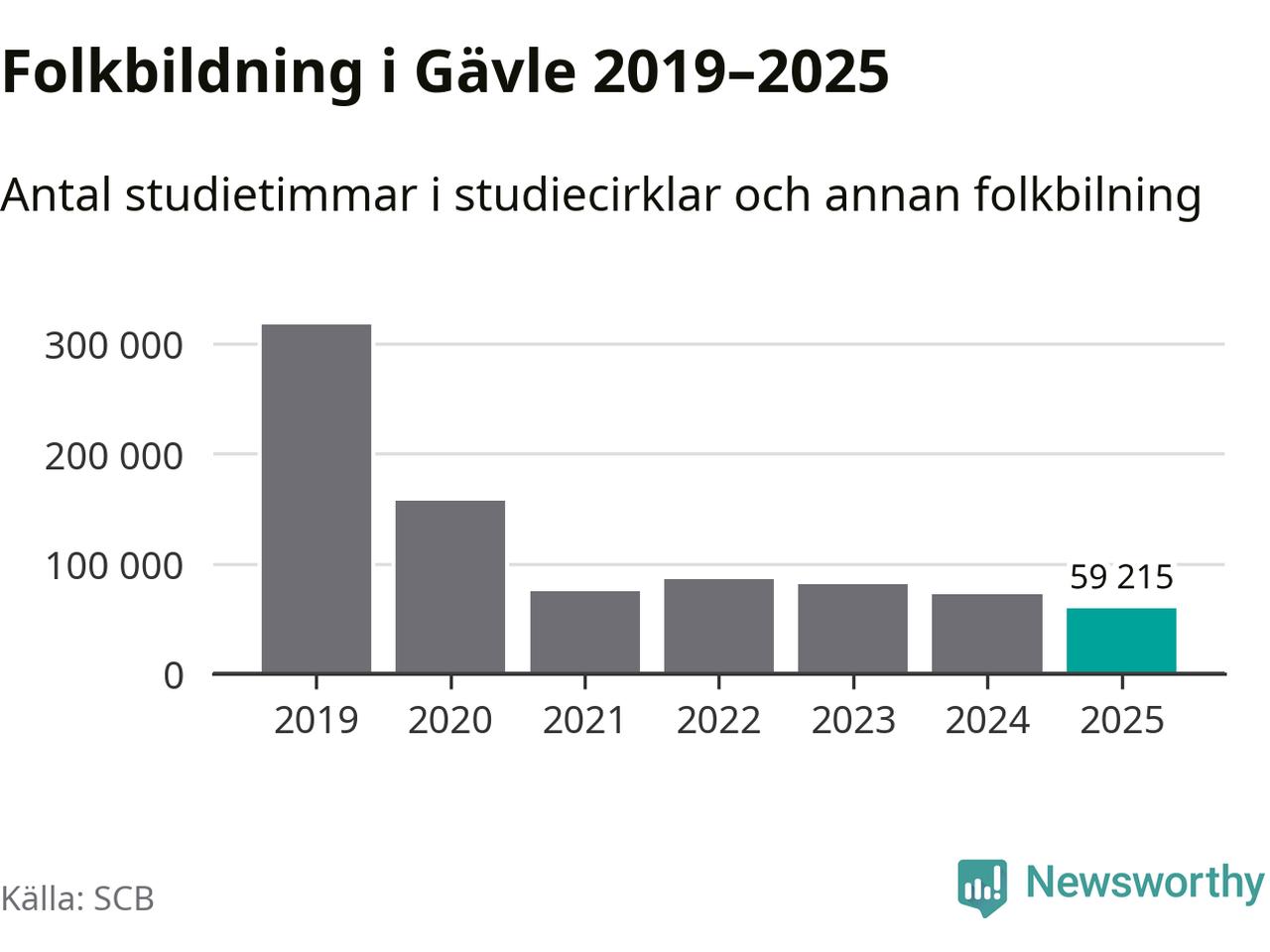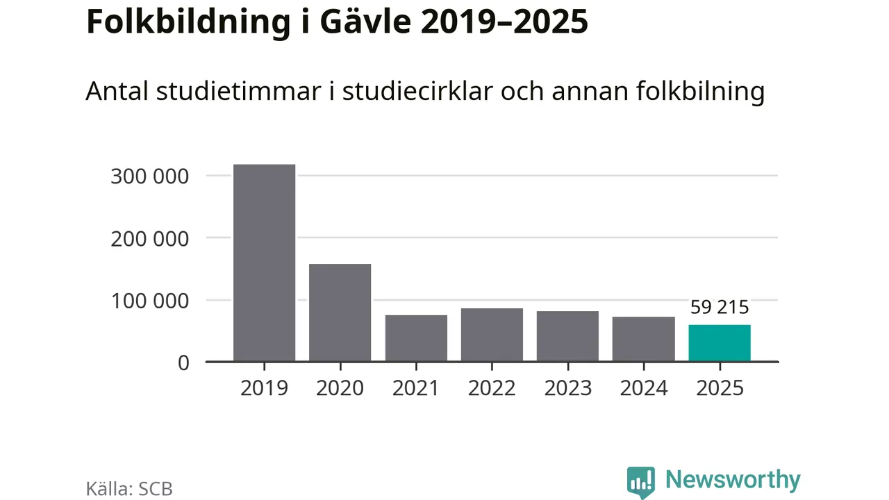 Studieförbunden drabbades hårt av pandemin. Även i Gävle noterades det lägsta antalet studietimmar under 2021, som då var 76 procent färre än 2019 – vilket fortfarande är fler än 2025.