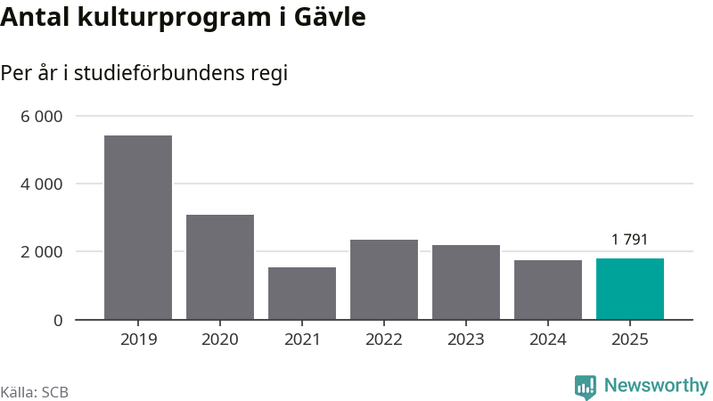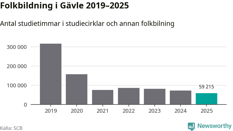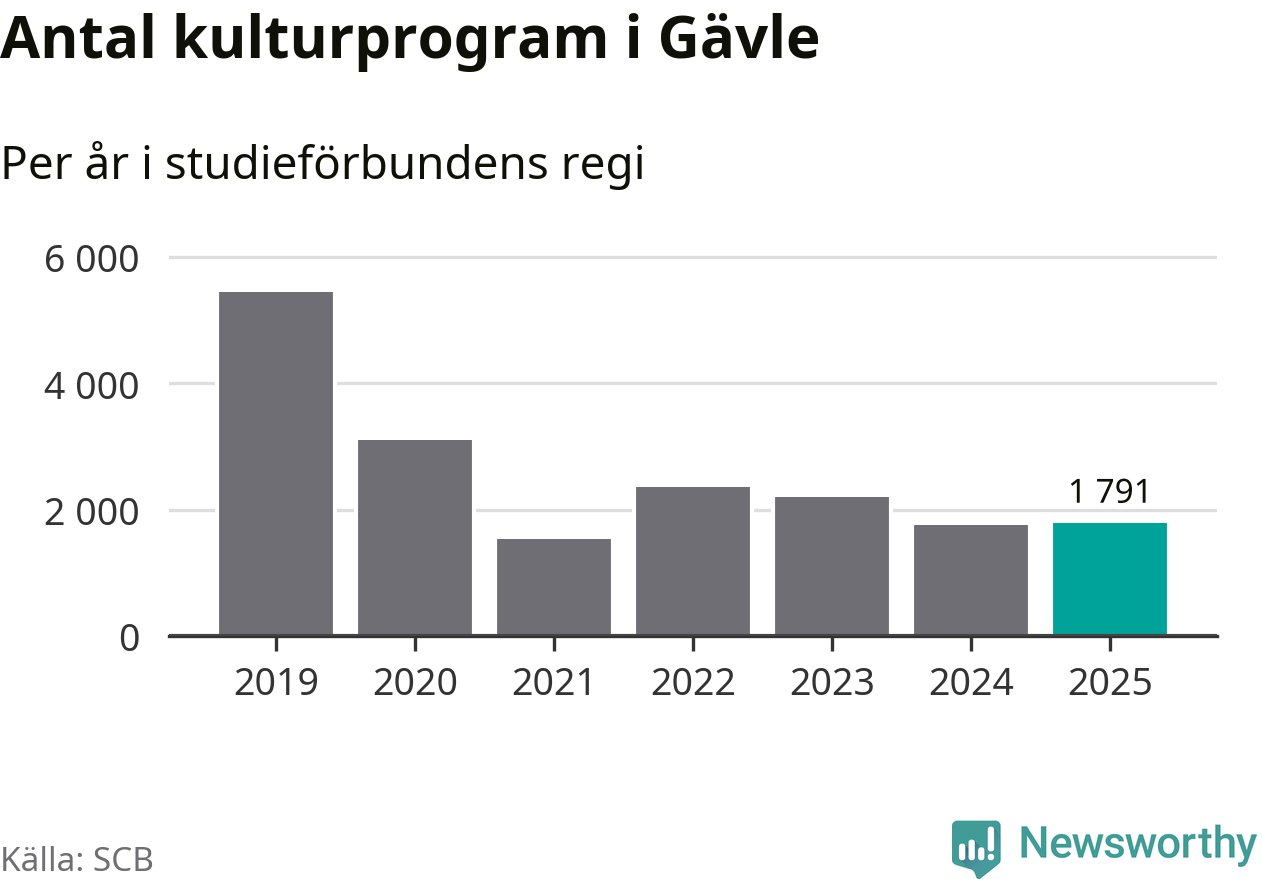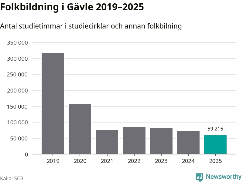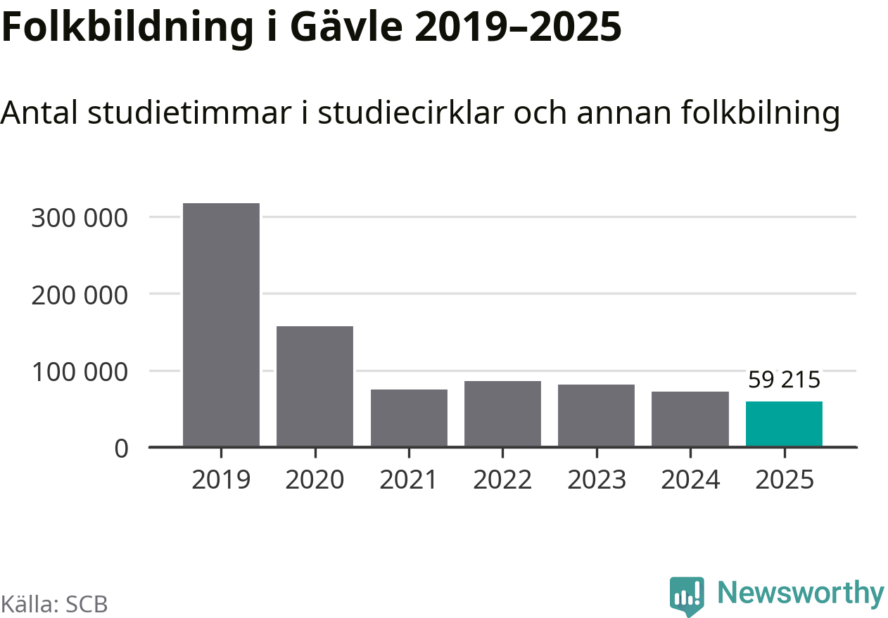Studieförbunden drabbades hårt av pandemin. Även i Gävle noterades det lägsta antalet studietimmar under 2021, som då var 76 procent färre än 2019 – vilket fortfarande är fler än 2025.