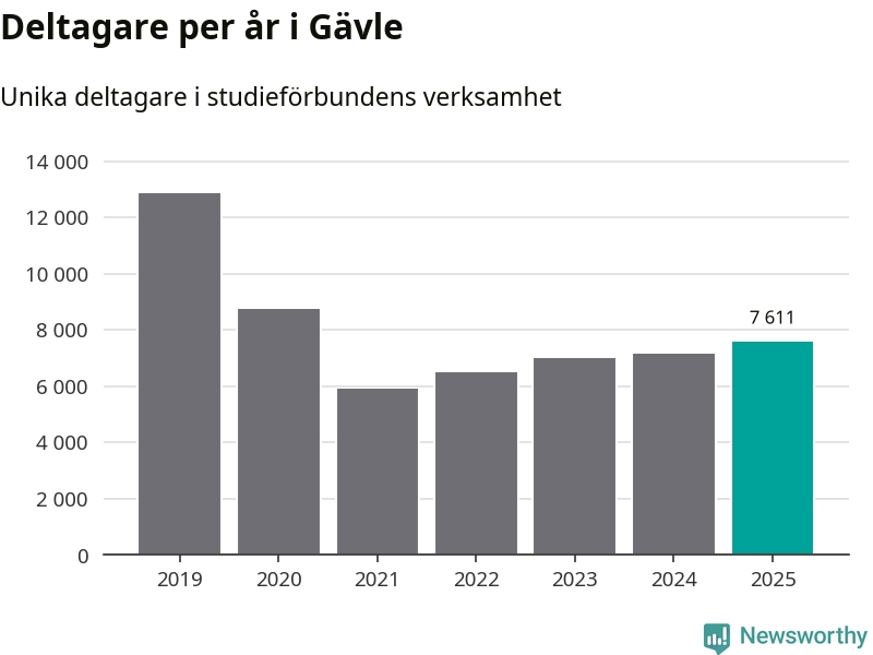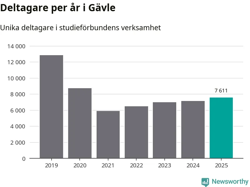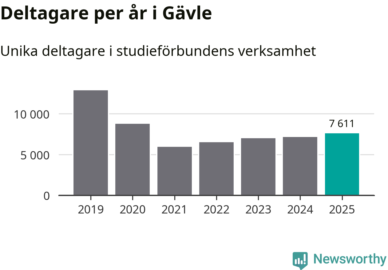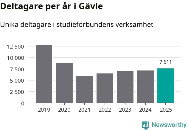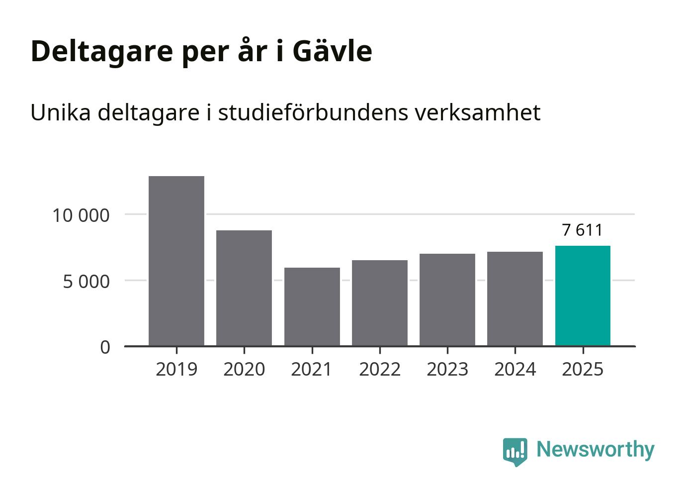Antalet unika deltagare ökade i Gävle i fjol: från 7 147 till 7 611 personer. Det innebär att sju procent av befolkningen i kommunen deltog i studieförbundens verksamhet under 2025, vilket är ungefär som rikssnittet.