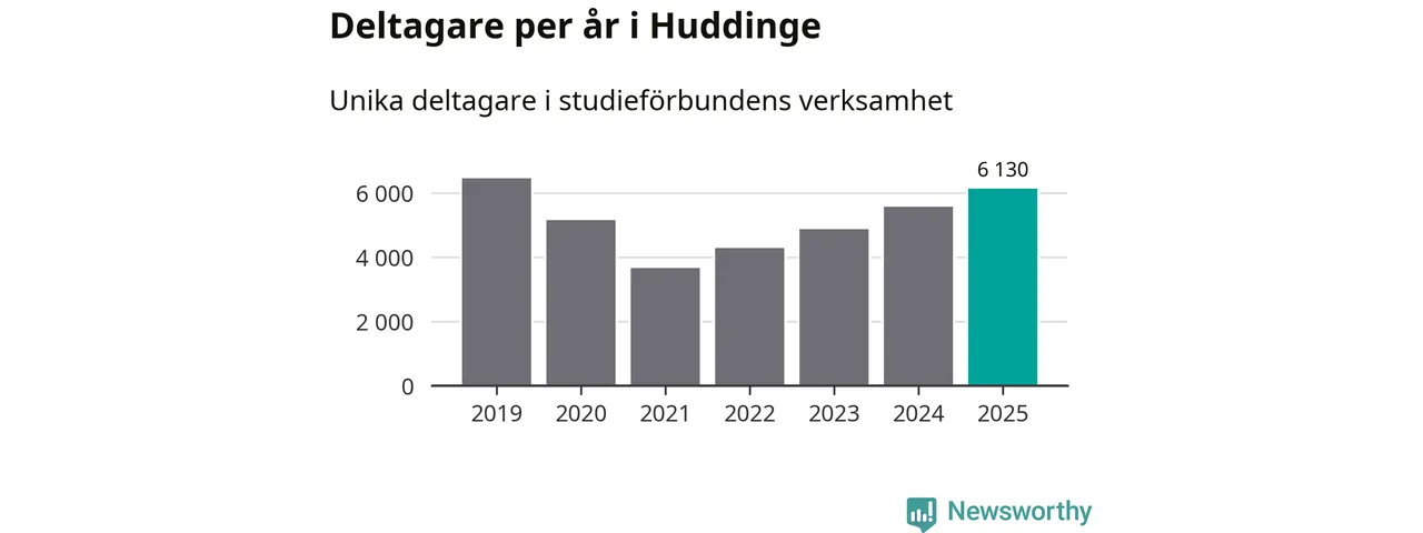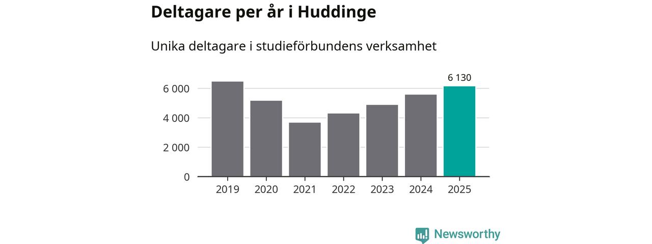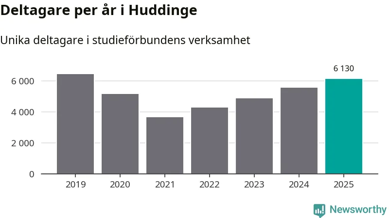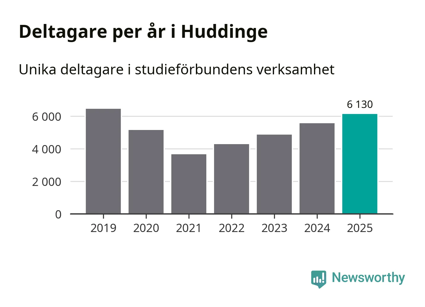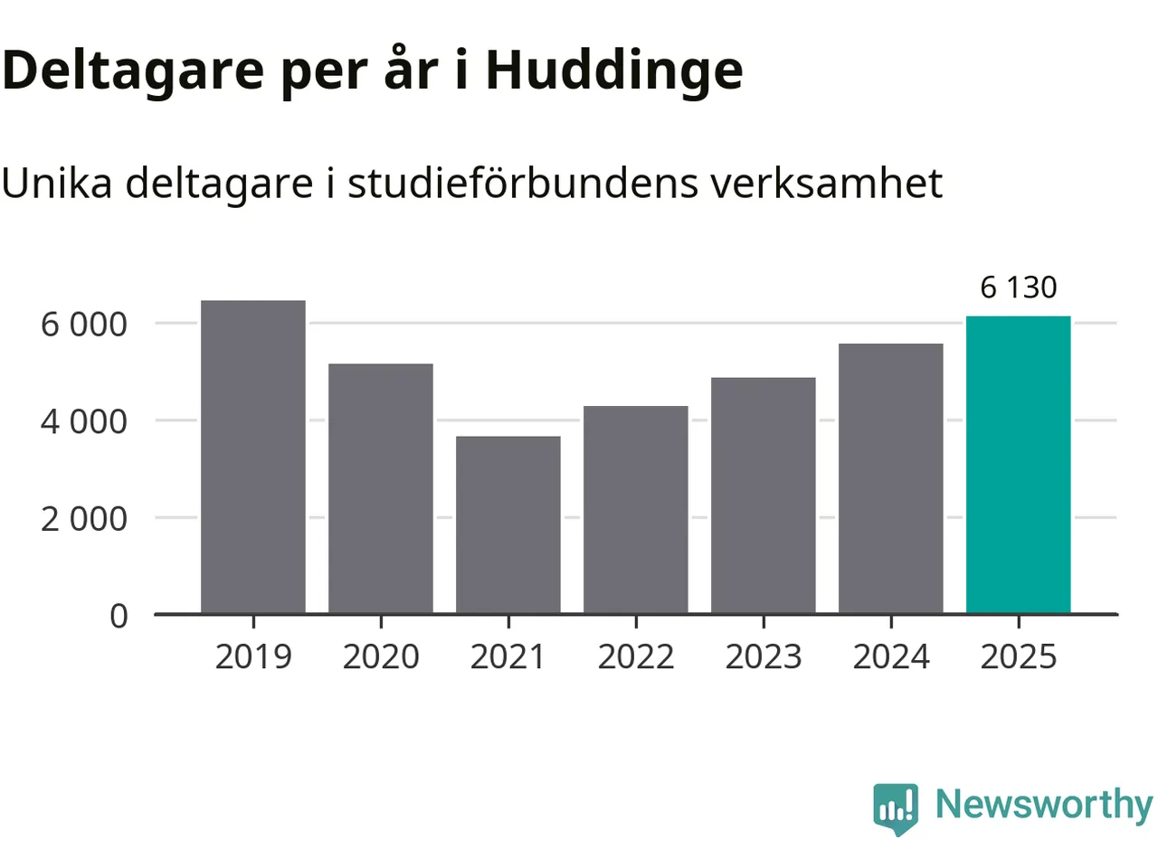 Även antalet unika deltagare ökade i Huddinge i fjol: från 5 559 till 6 130 personer. Det innebär att fem procent av befolkningen i kommunen deltog i studieförbundens verksamhet under 2025, vilket är ungefär som rikssnittet.