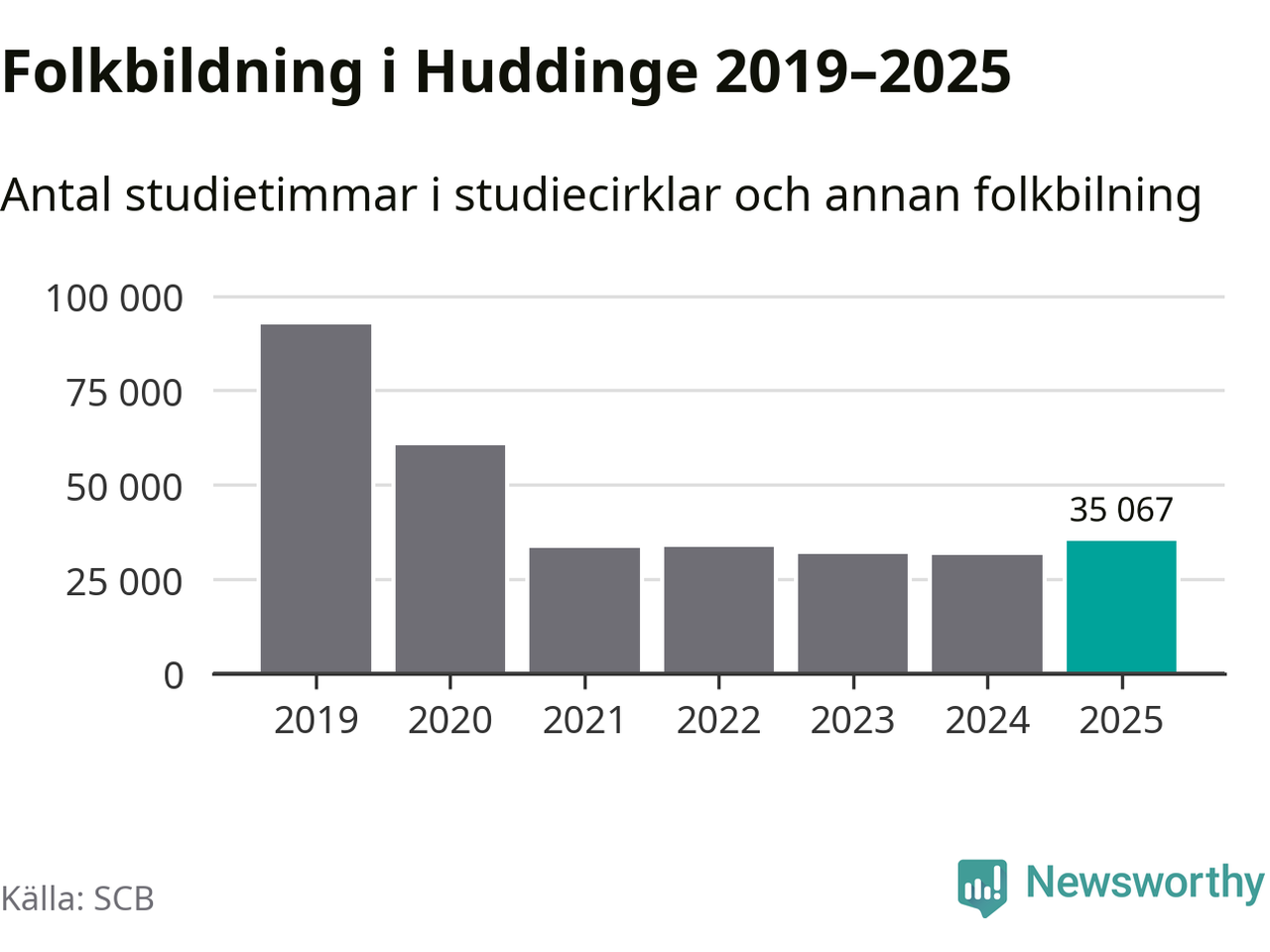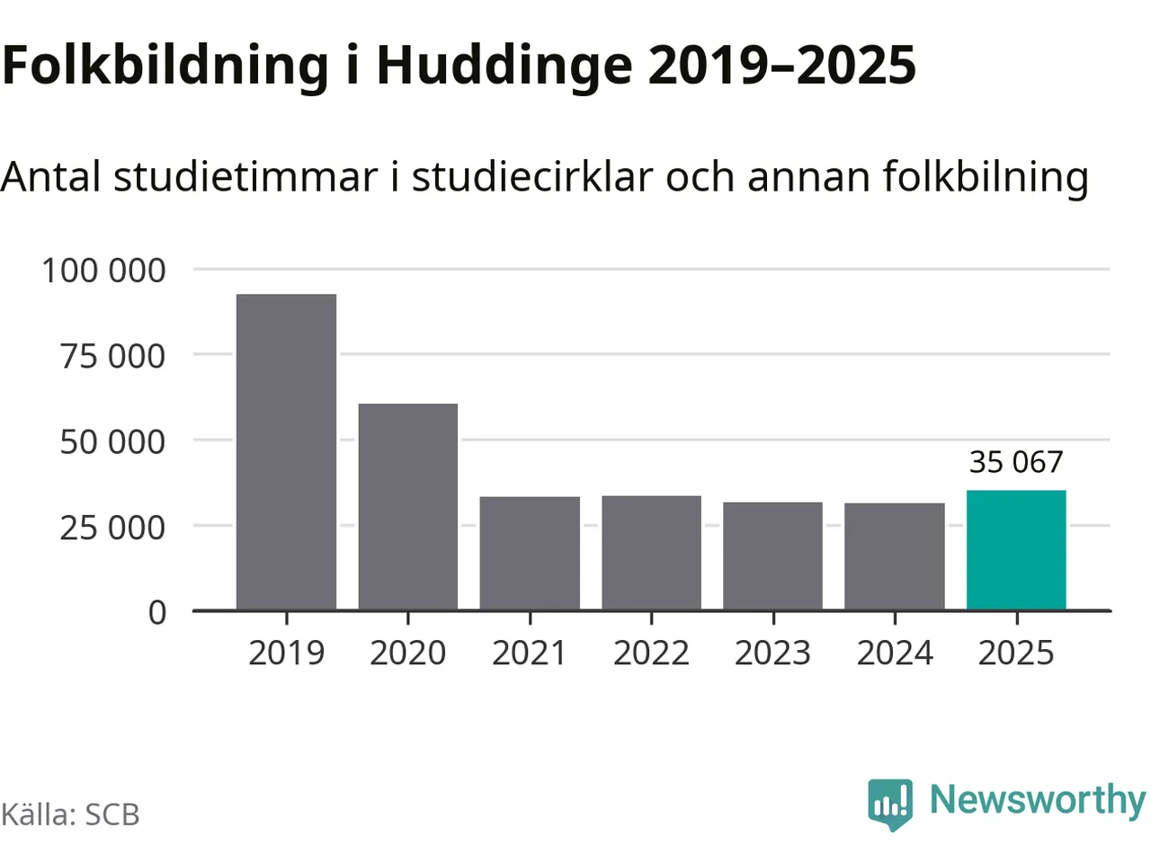 Färre studiecirklar och färre kulturprogram. Studieförbunden i landet har det kämpigt. Men i Huddinge ökade faktiskt antalet studietimmar under 2025.