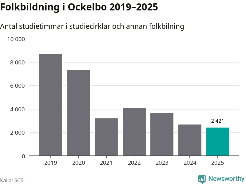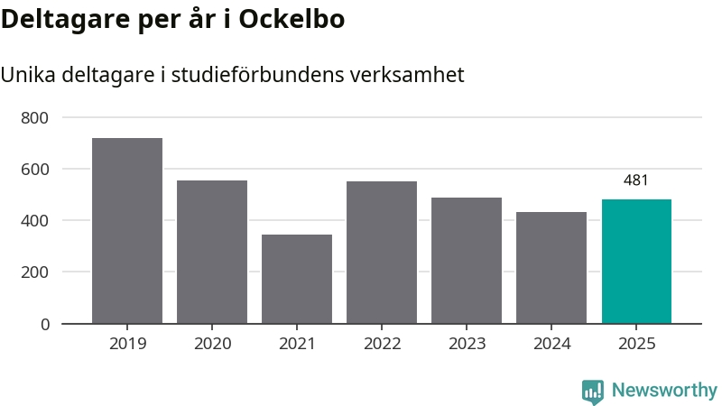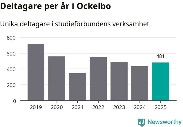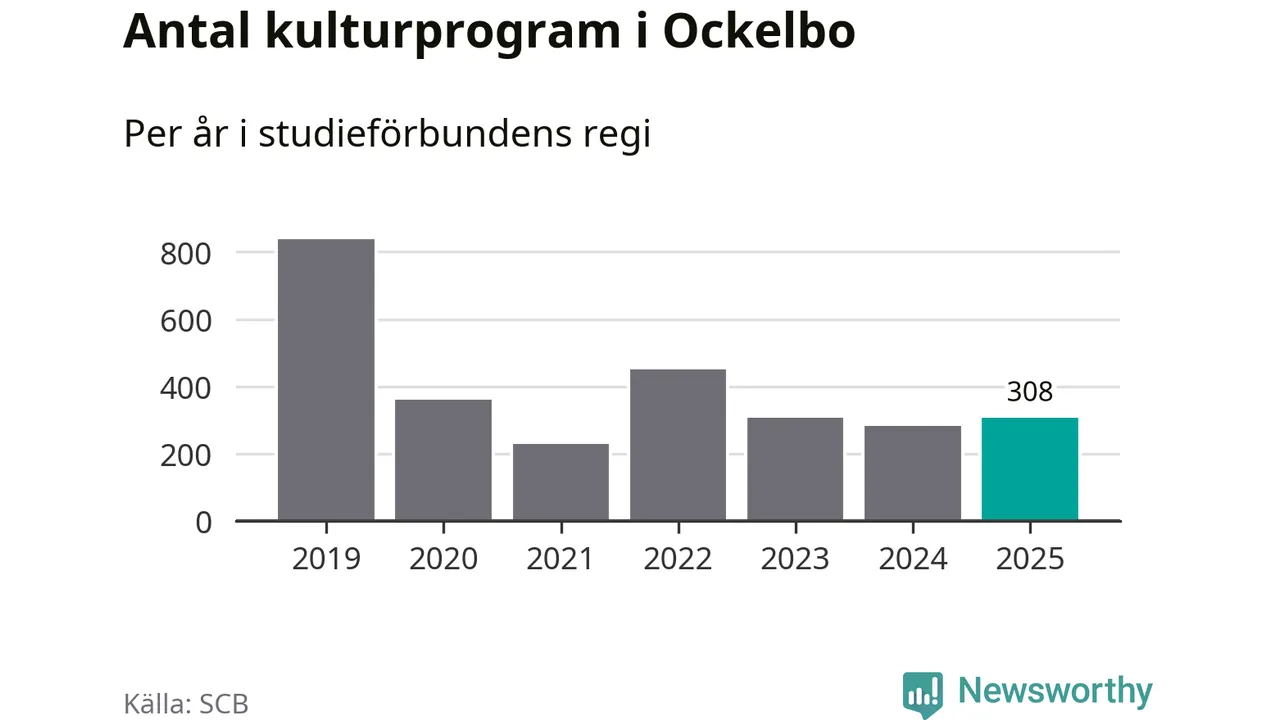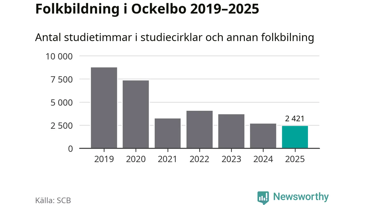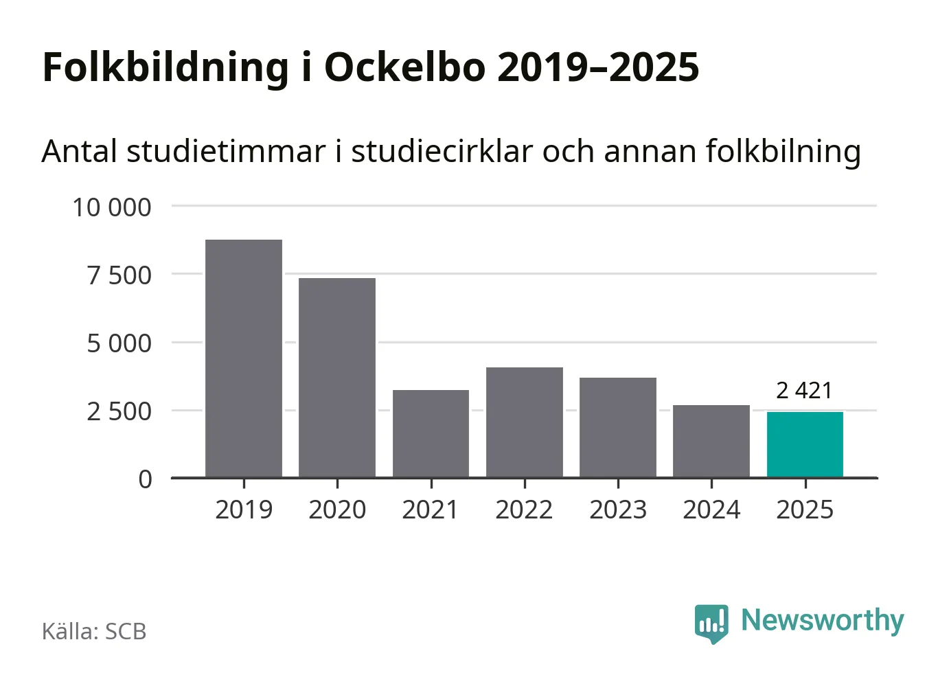 Studieförbunden drabbades hårt av pandemin. Även i Ockelbo noterades det lägsta antalet studietimmar under 2021, som då var 63 procent färre än 2019 – vilket fortfarande är fler än 2025.
