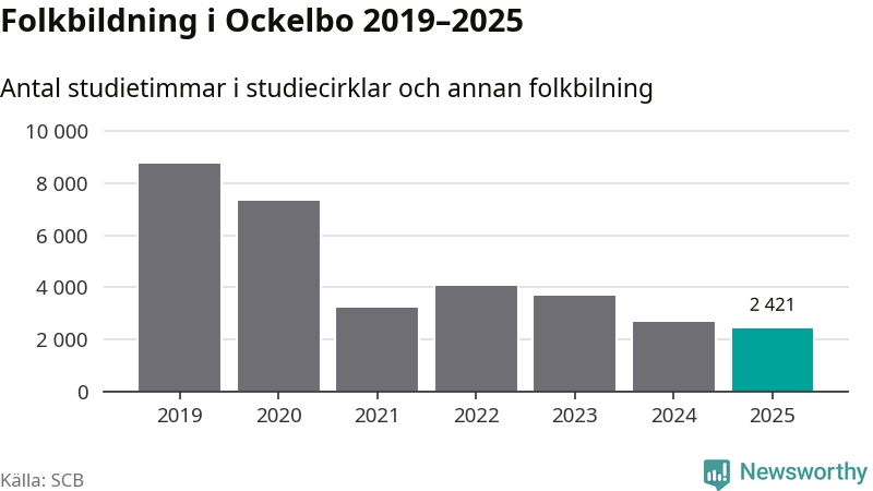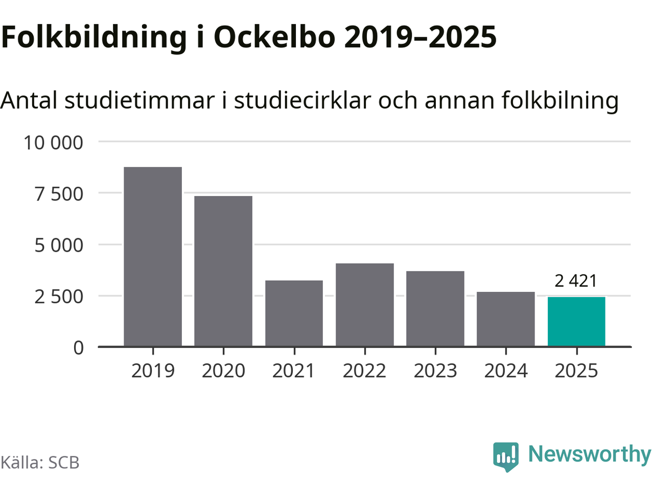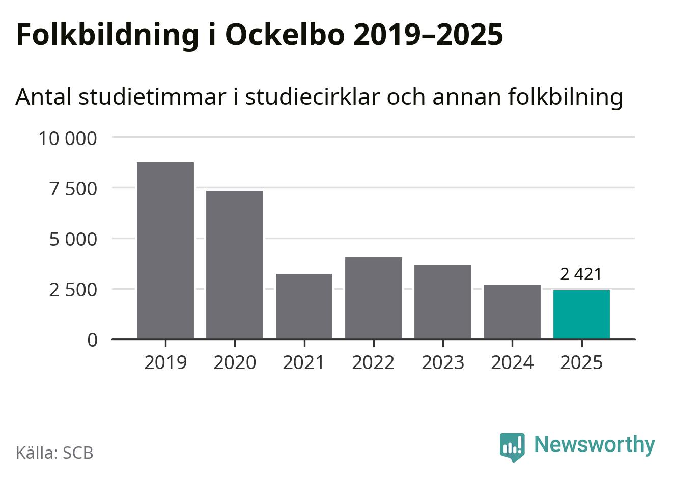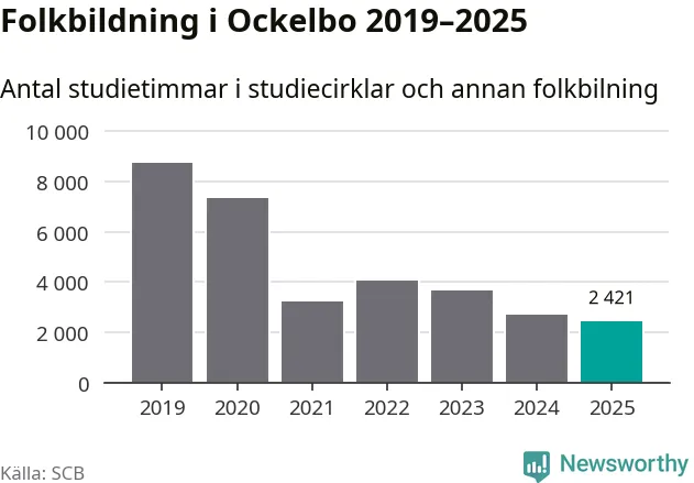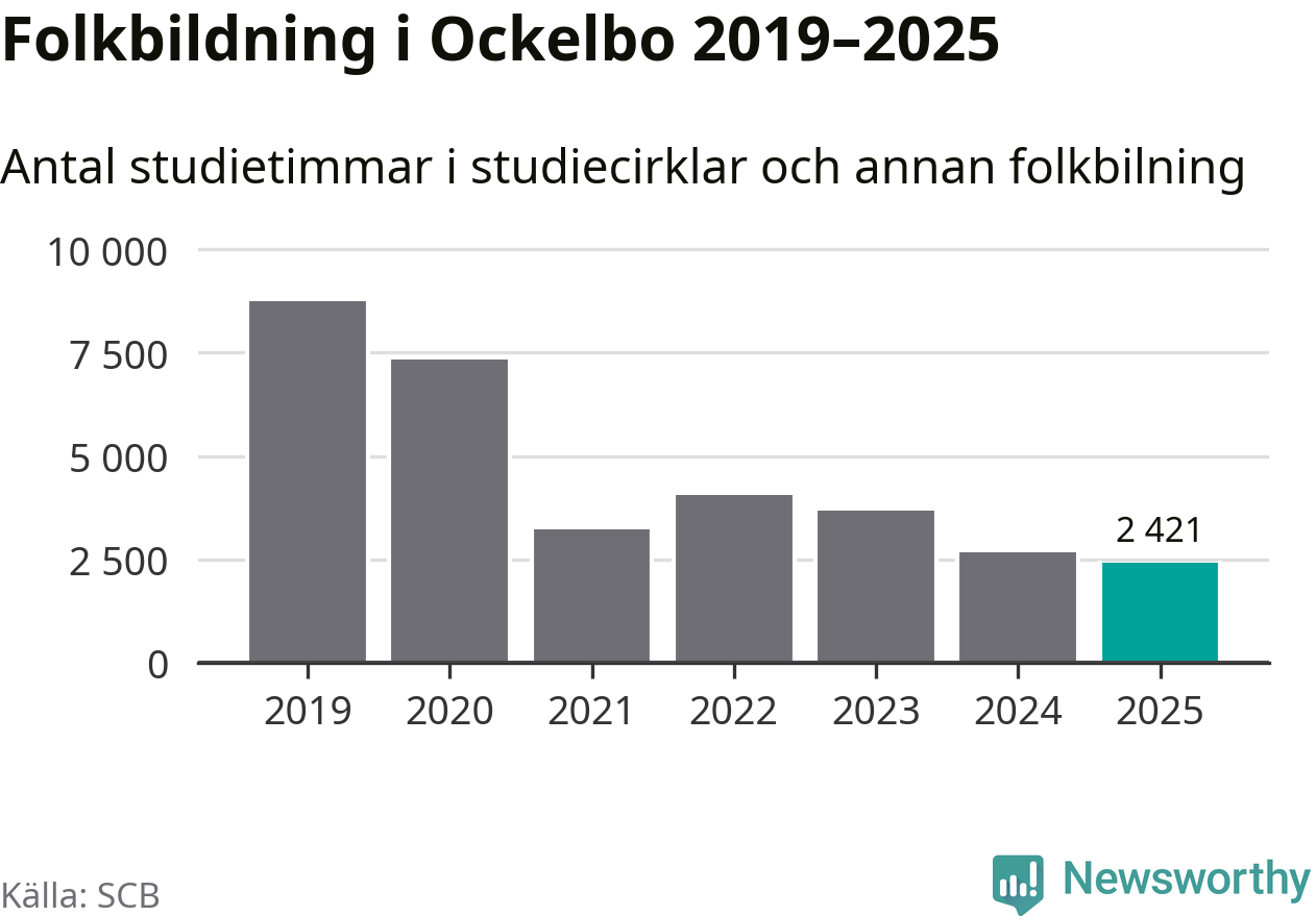 Studieförbunden drabbades hårt av pandemin. Även i Ockelbo noterades det lägsta antalet studietimmar under 2021, som då var 63 procent färre än 2019 – vilket fortfarande är fler än 2025.