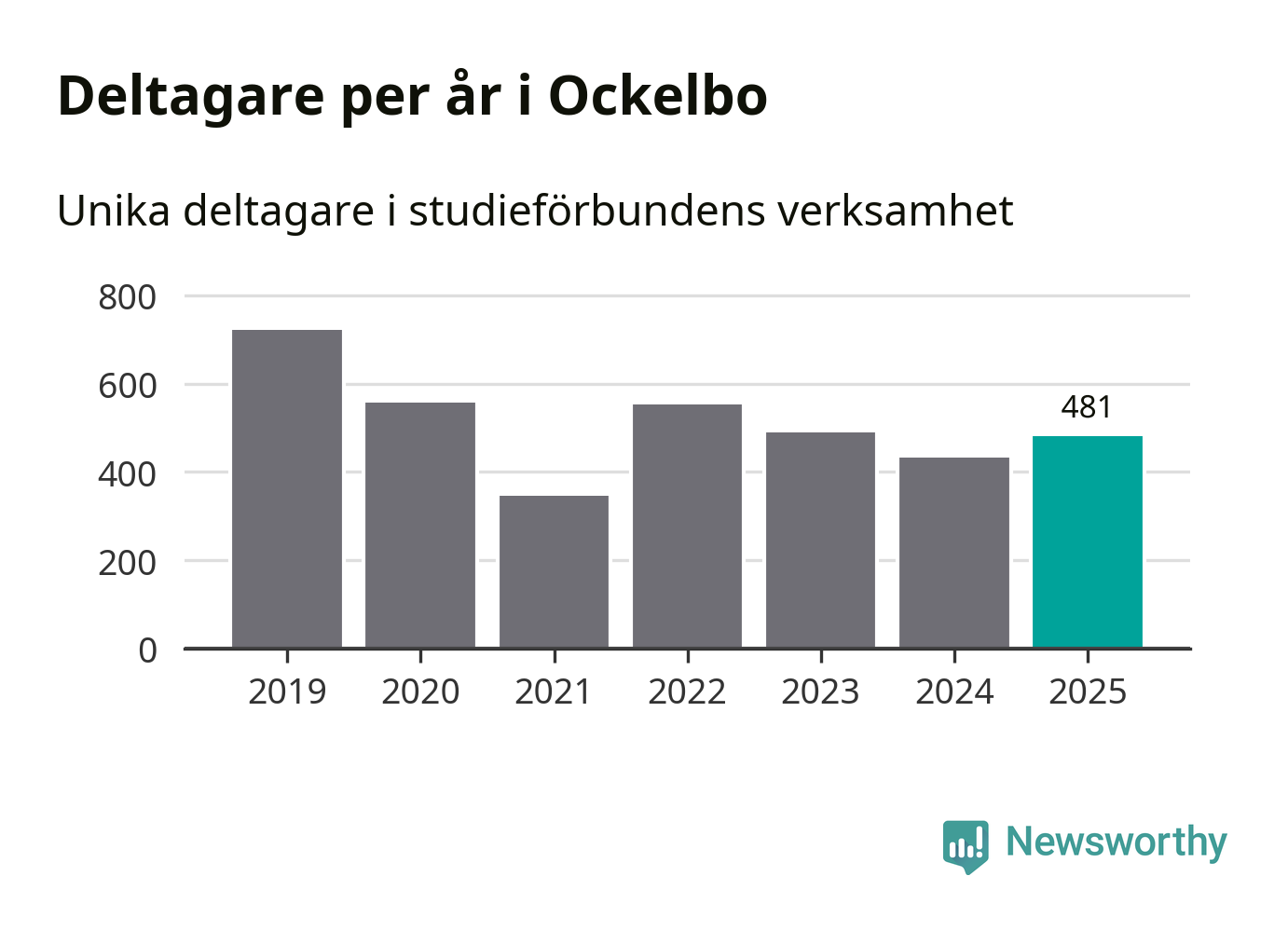 Antalet unika deltagare ökade i Ockelbo i fjol: från 432 till 481 personer. Det innebär att åtta procent av befolkningen i kommunen deltog i studieförbundens verksamhet under 2025, vilket är högre än rikssnittet.