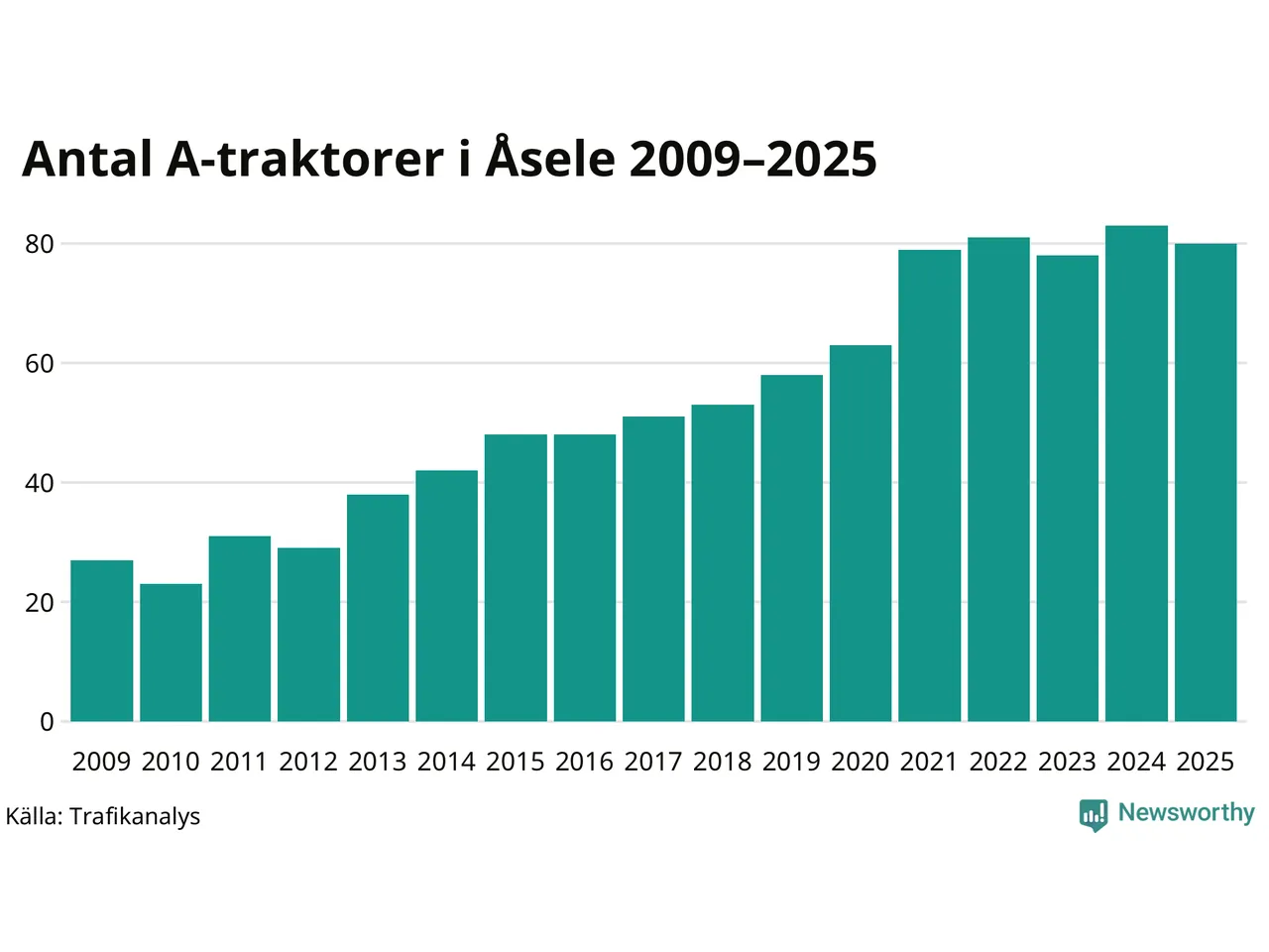 Antal A-traktorer i Åsele 2009-2025