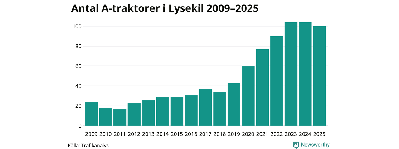 Under det senaste decenniet har antalet A-traktorer femdubblats i Sverige – och under 2025 fortsatte utvecklingen. Nu släpps nya siffror som visar hur många som finns i Lysekils kommun.