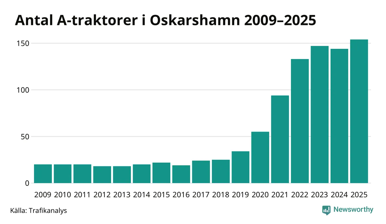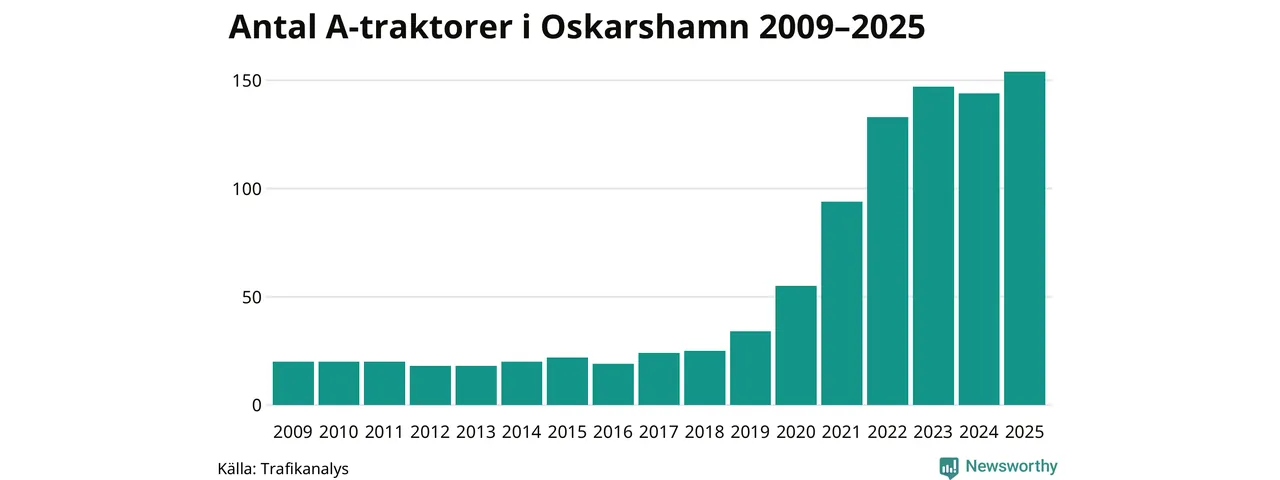 Under det senaste decenniet har antalet A-traktorer femdubblats i Sverige – och under 2025 fortsatte utvecklingen. Även i Oskarshamn blev de fler.