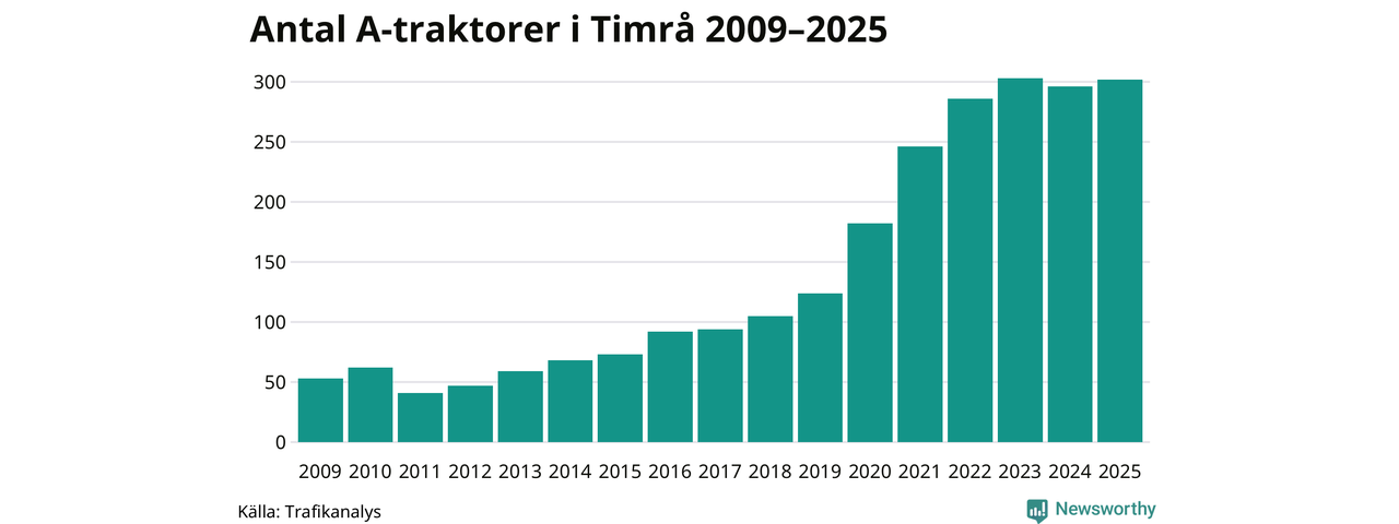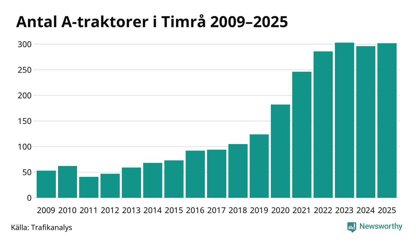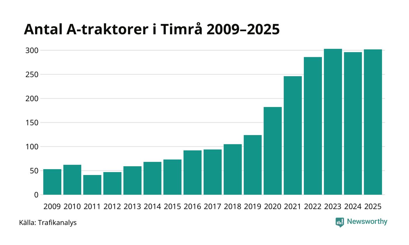 Under det senaste decenniet har antalet A-traktorer femdubblats i Sverige – och under 2025 fortsatte utvecklingen. Även i Timrå blev de fler.