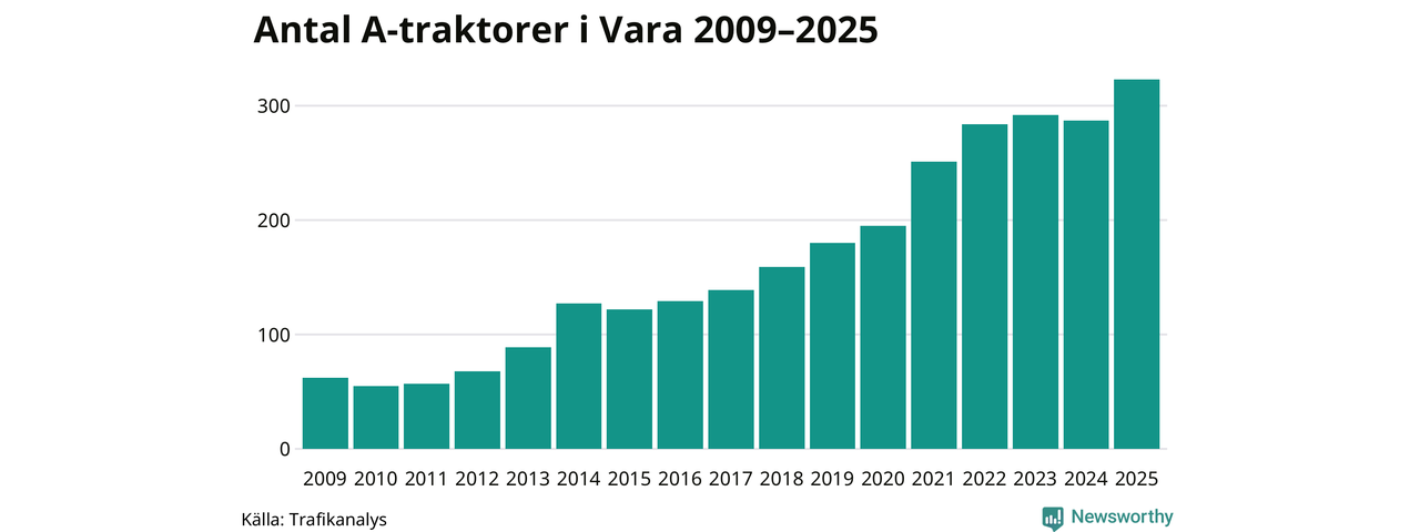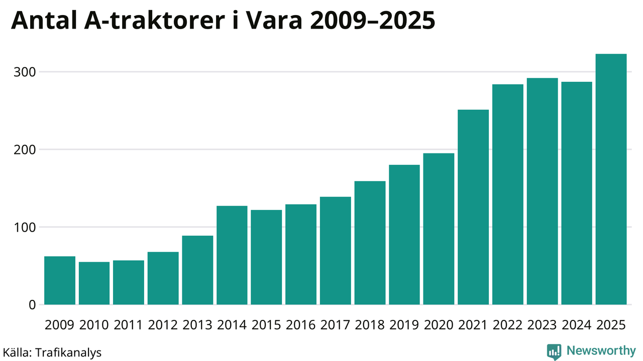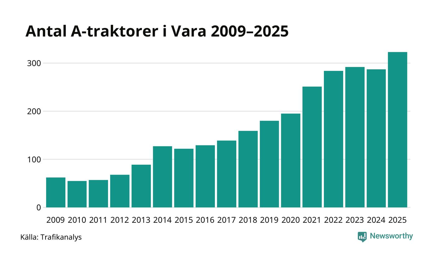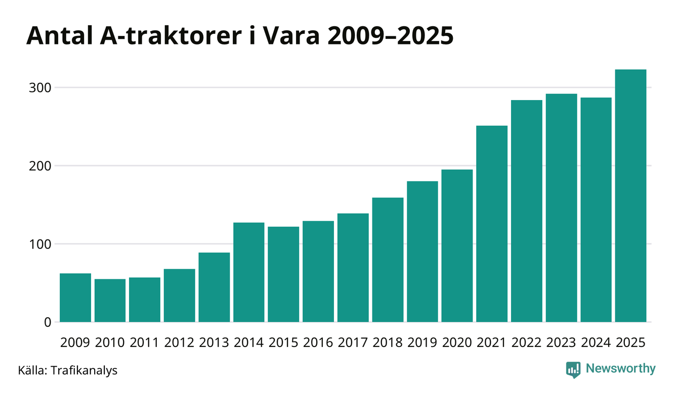 Under det senaste decenniet har antalet A-traktorer femdubblats i Sverige – och under 2025 fortsatte utvecklingen. Även i Vara blev de fler.