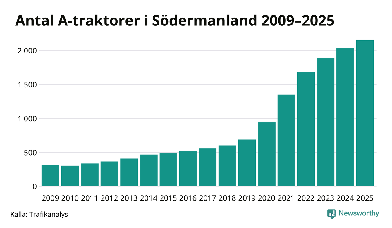 Under det senaste decenniet har antalet A-traktorer femdubblats i Sverige – och under 2025 fortsatte utvecklingen. Precis som i Södermanlands län.
