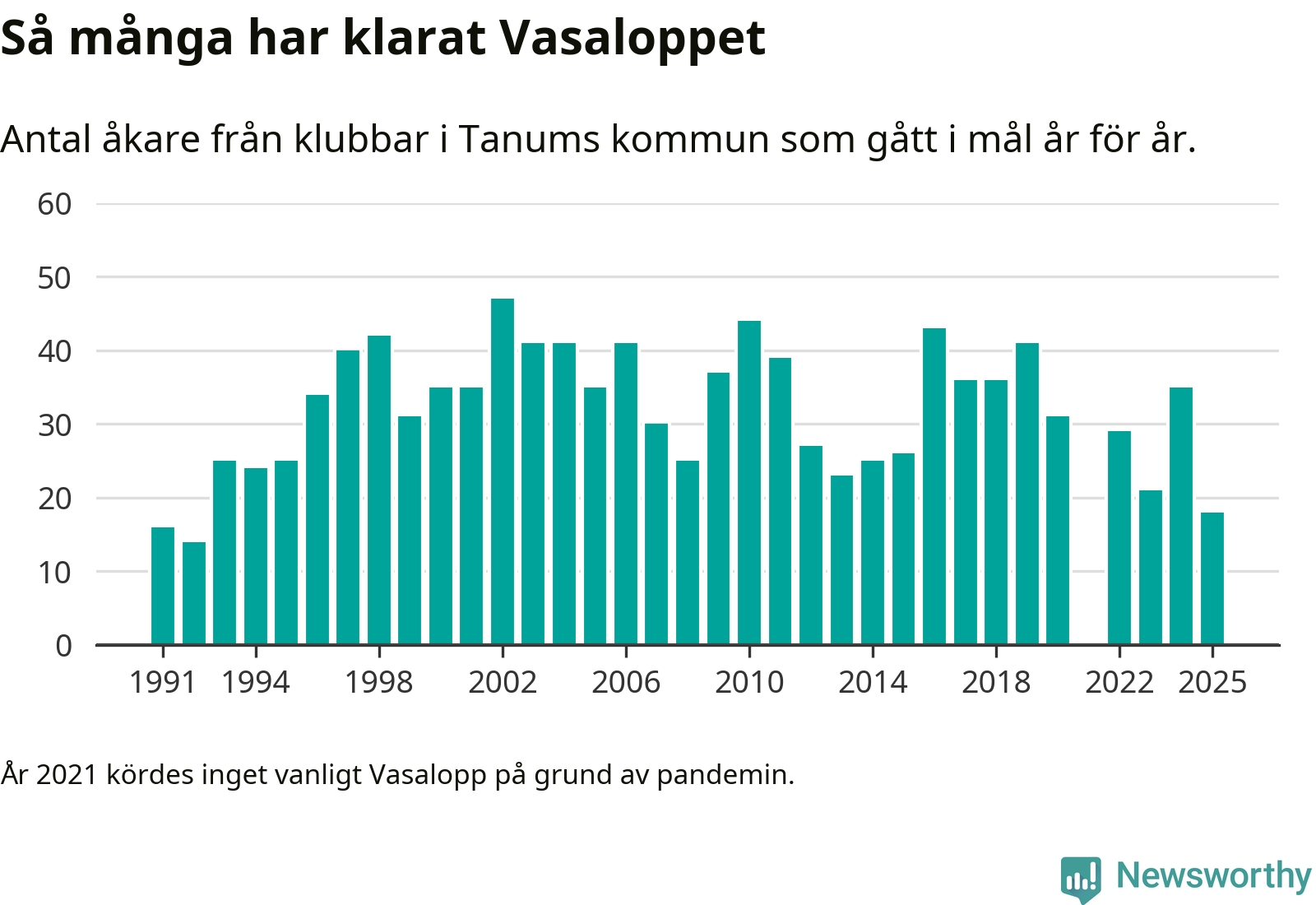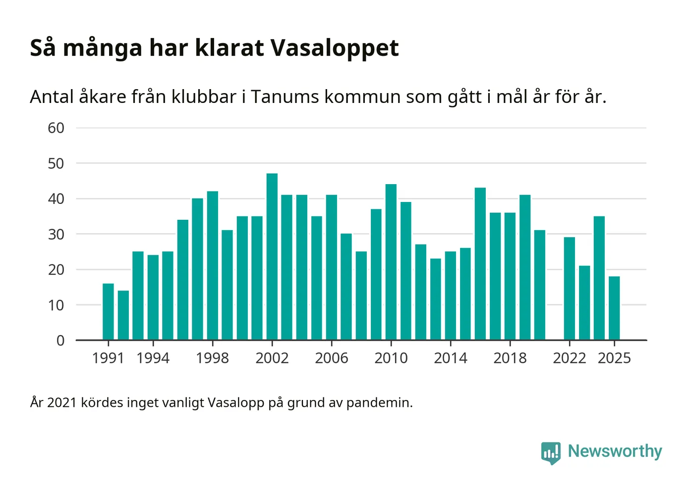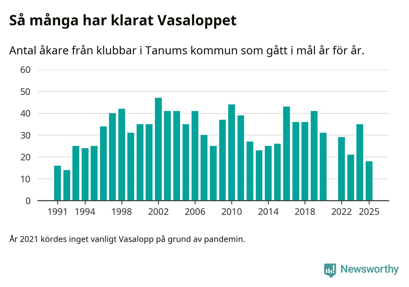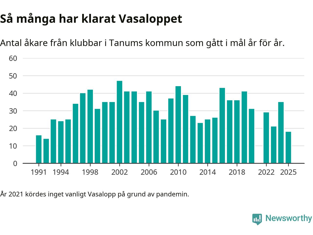 På söndag går starten för det 102:a Vasaloppet. Newsworthy har samlat in och sammanställt samtliga Vasaloppsresultat sedan 1991. Det ger en unik bild av hur skidåkare från klubbar i Tanums kommun har klarat sig genom åren.