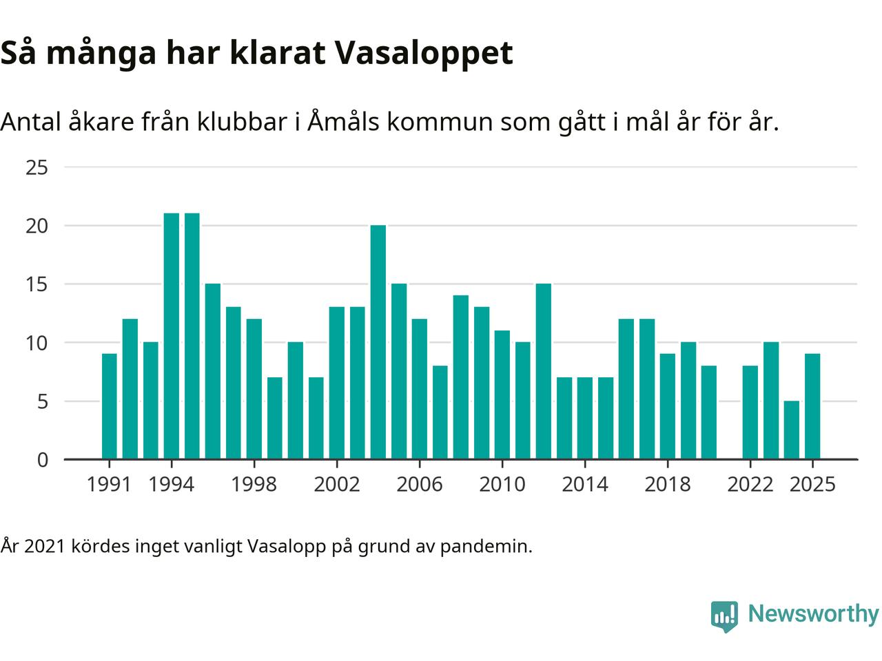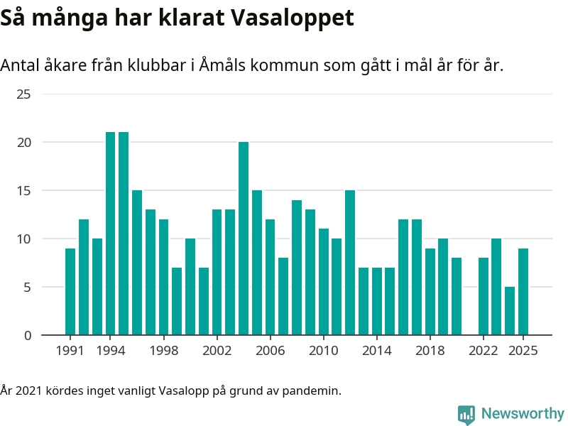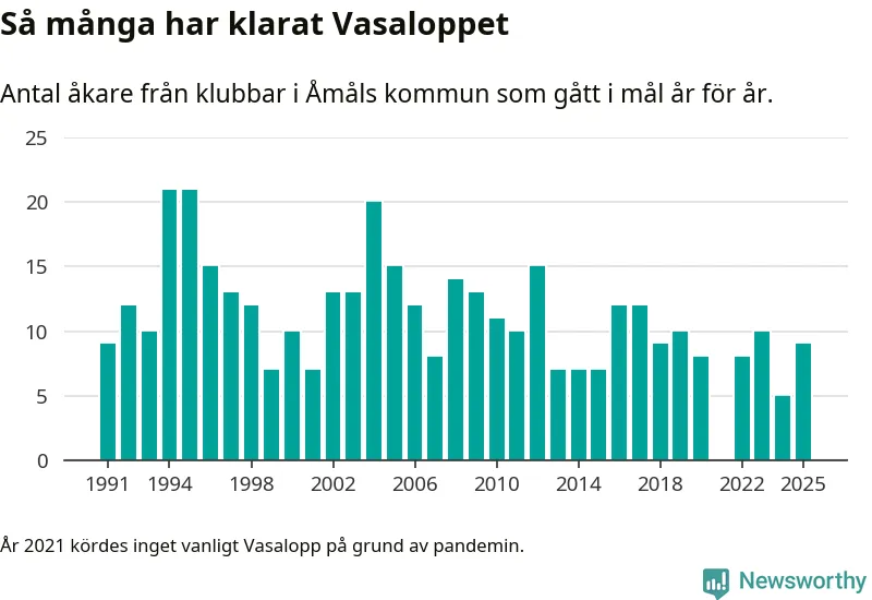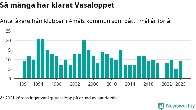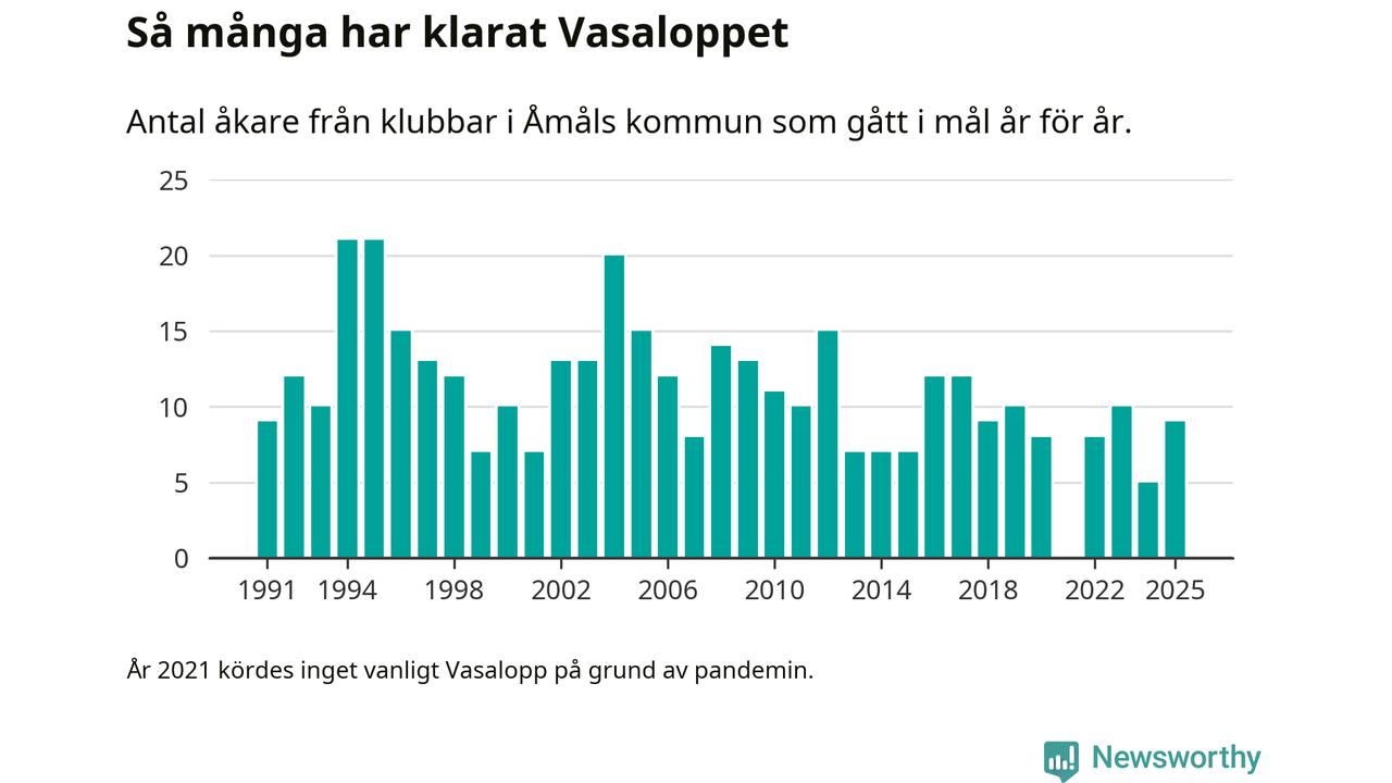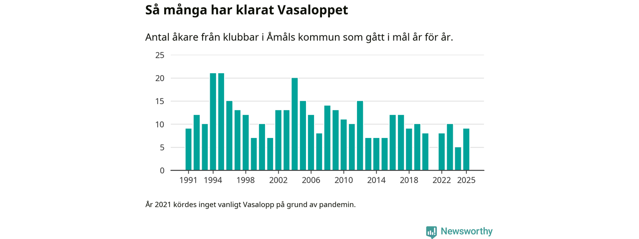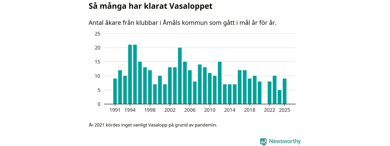 På söndag går starten för det 102:a Vasaloppet. Newsworthy har samlat in och sammanställt samtliga Vasaloppsresultat sedan 1991. Det ger en unik bild av hur skidåkare från klubbar i Åmåls kommun har klarat sig genom åren.
