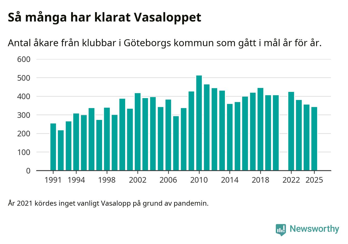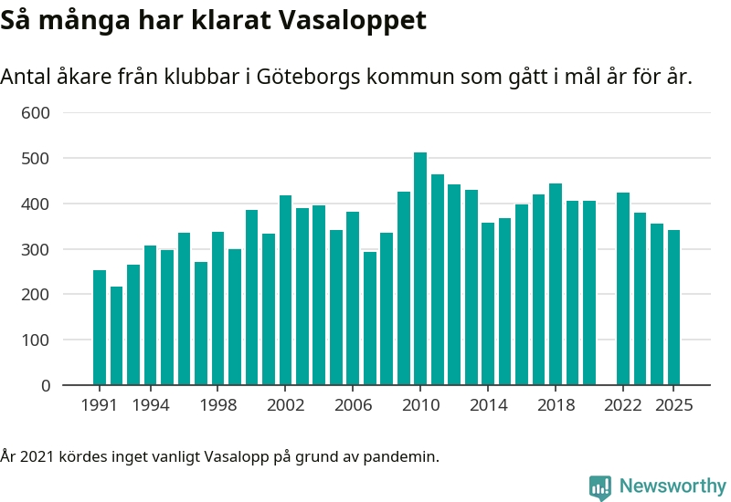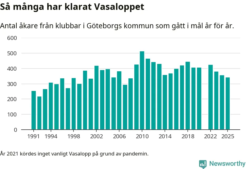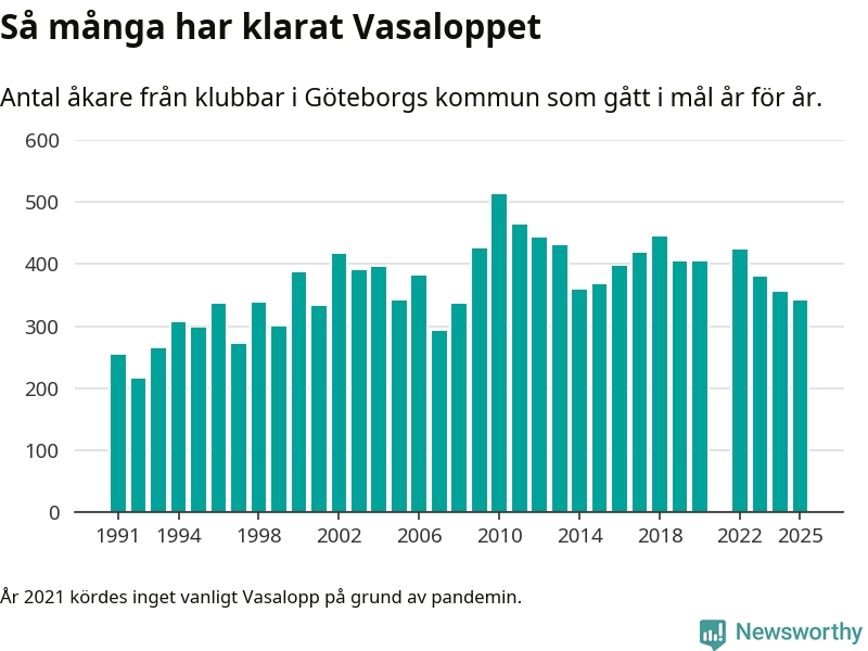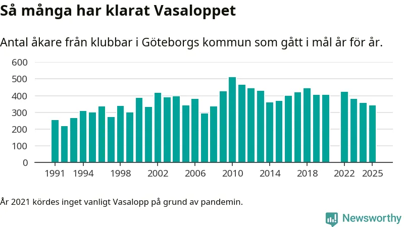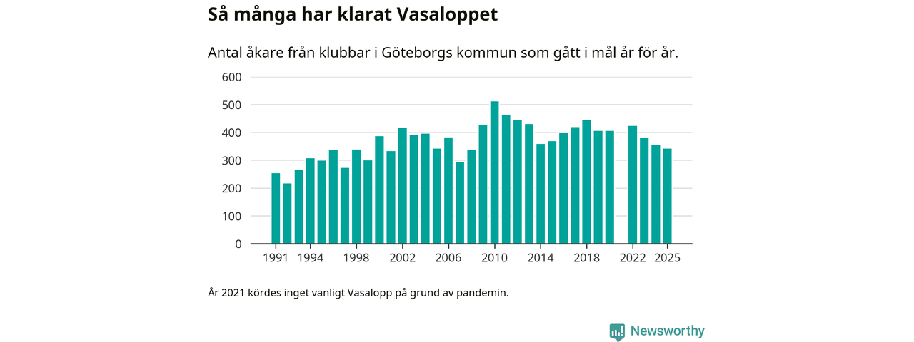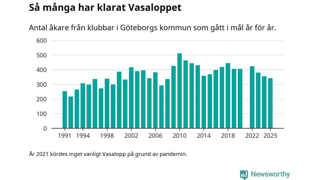 På söndag går starten för det 102:a Vasaloppet. Newsworthy har samlat in och sammanställt samtliga Vasaloppsresultat sedan 1991. Det ger en unik bild av hur skidåkare från klubbar i Göteborgs kommun har klarat sig genom åren.