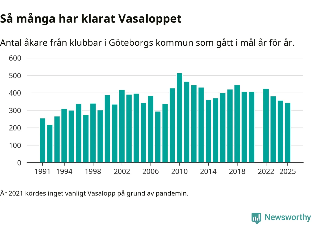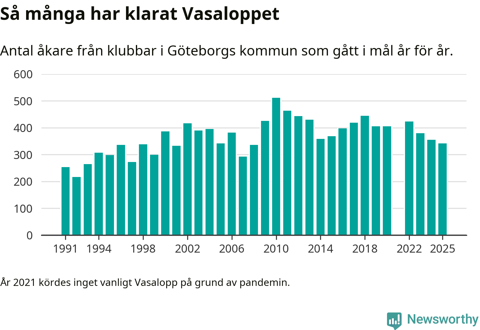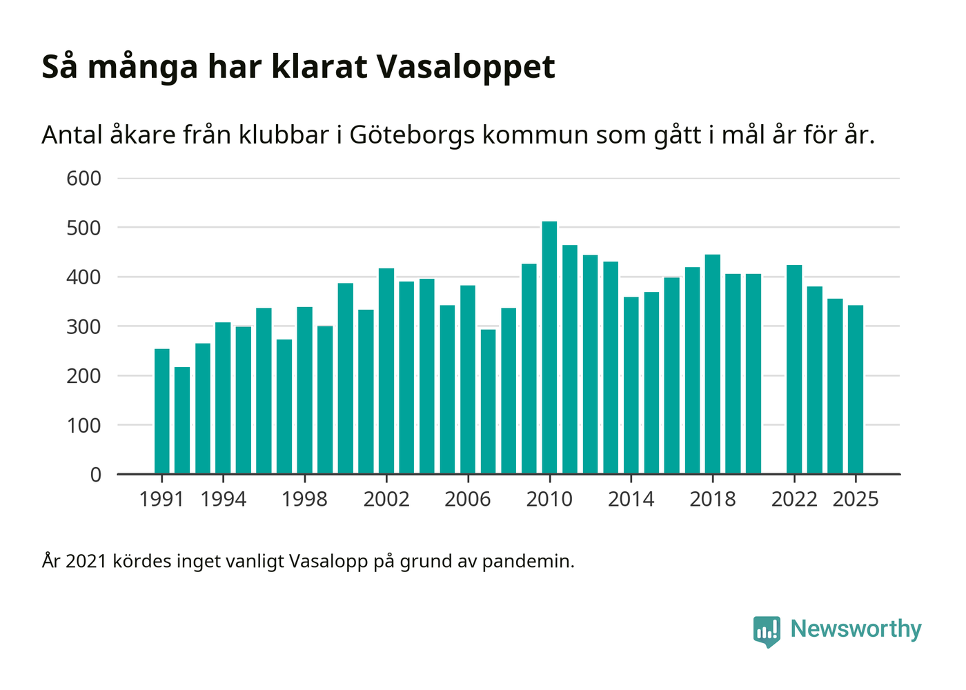 På söndag går starten för det 102:a Vasaloppet. Newsworthy har samlat in och sammanställt samtliga Vasaloppsresultat sedan 1991. Det ger en unik bild av hur skidåkare från klubbar i Göteborgs kommun har klarat sig genom åren.