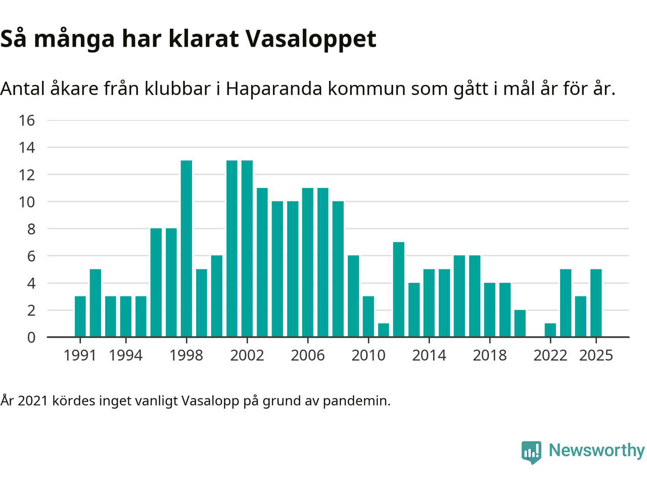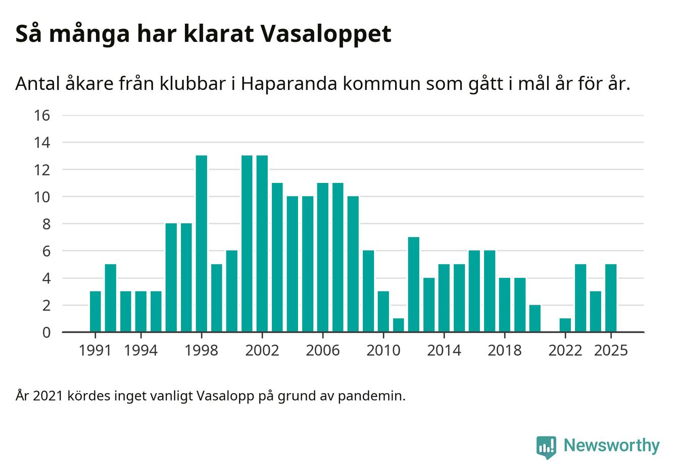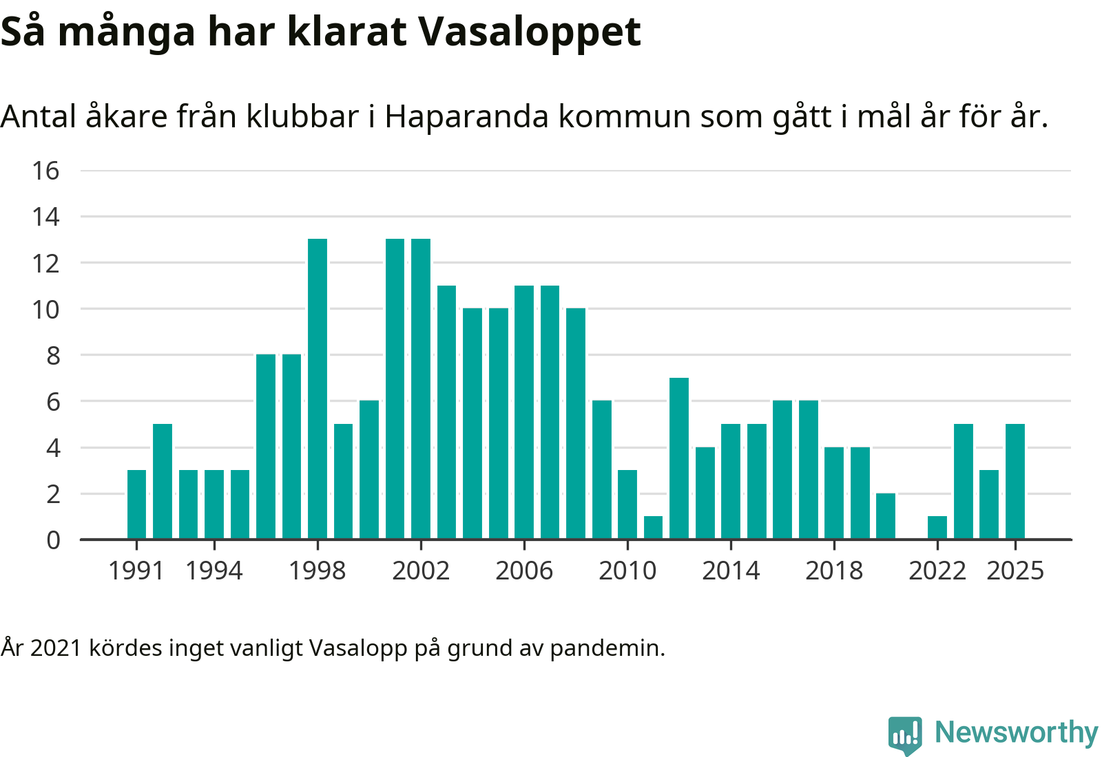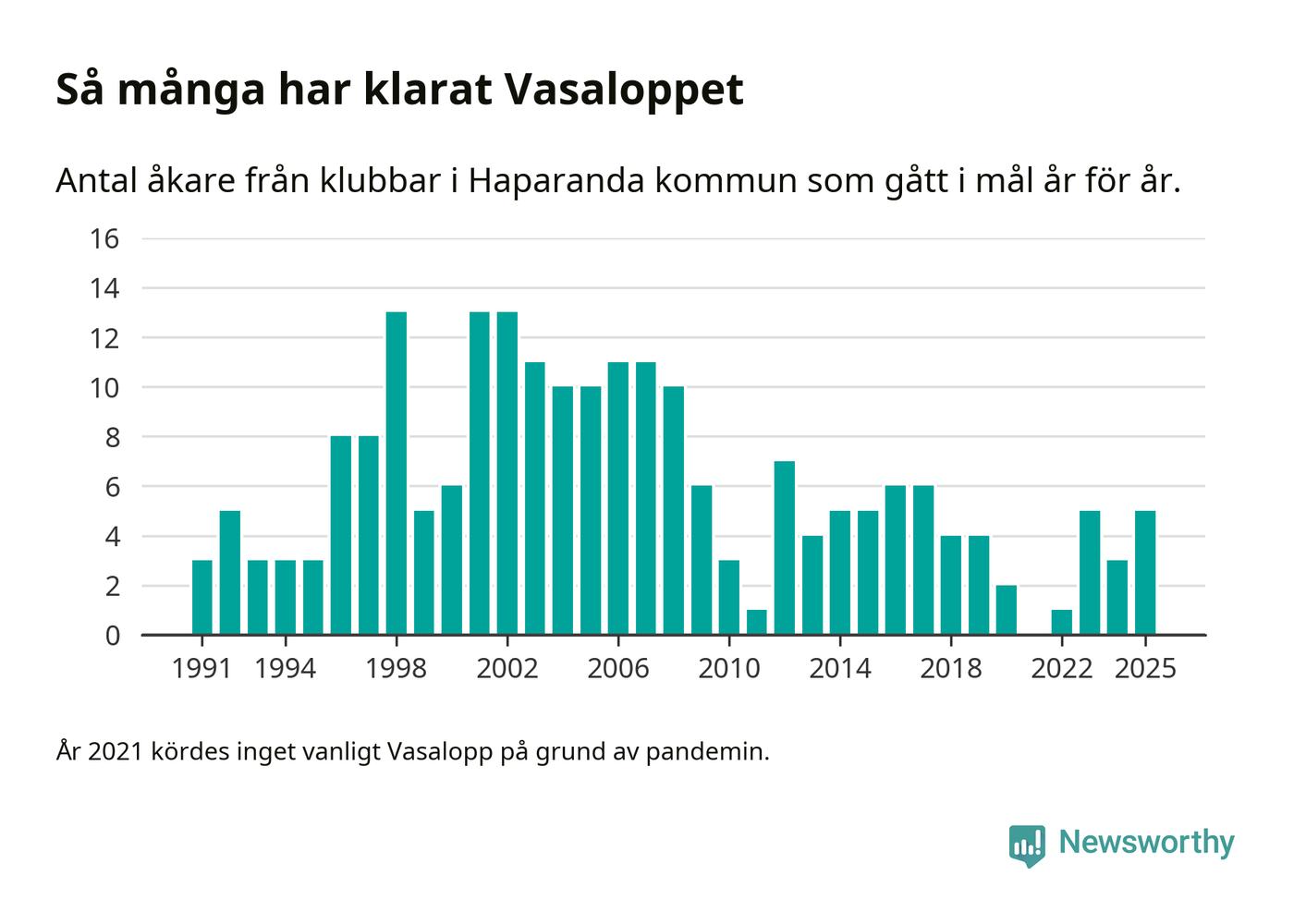 På söndag går starten för det 102:a Vasaloppet. Newsworthy har samlat in och sammanställt samtliga Vasaloppsresultat sedan 1991. Det ger en unik bild av hur skidåkare från klubbar i Haparanda kommun har klarat sig genom åren.