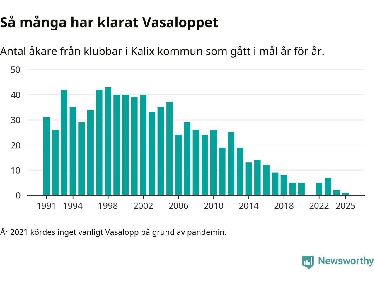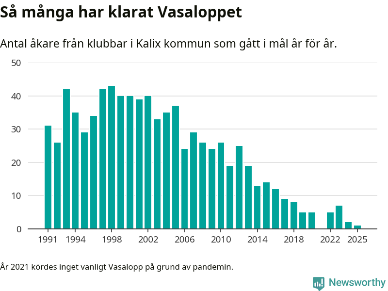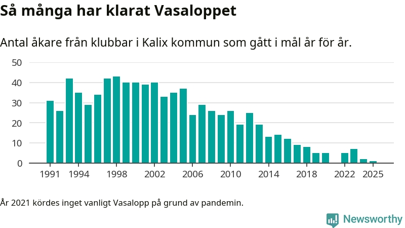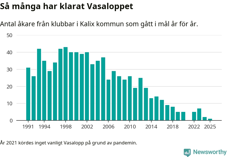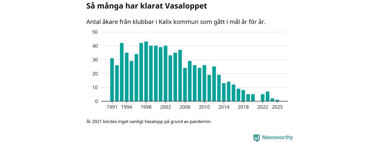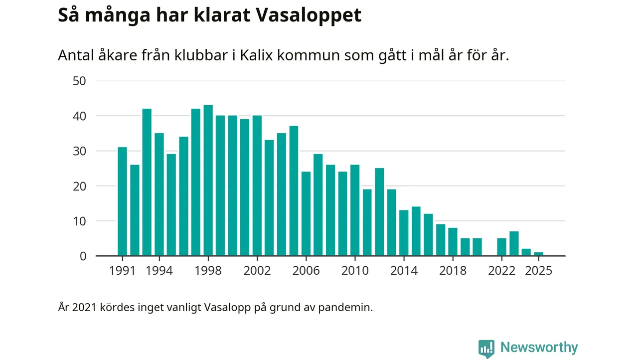 På söndag går starten för det 102:a Vasaloppet. Newsworthy har samlat in och sammanställt samtliga Vasaloppsresultat sedan 1991. Det ger en unik bild av hur skidåkare från klubbar i Kalix kommun har klarat sig genom åren.