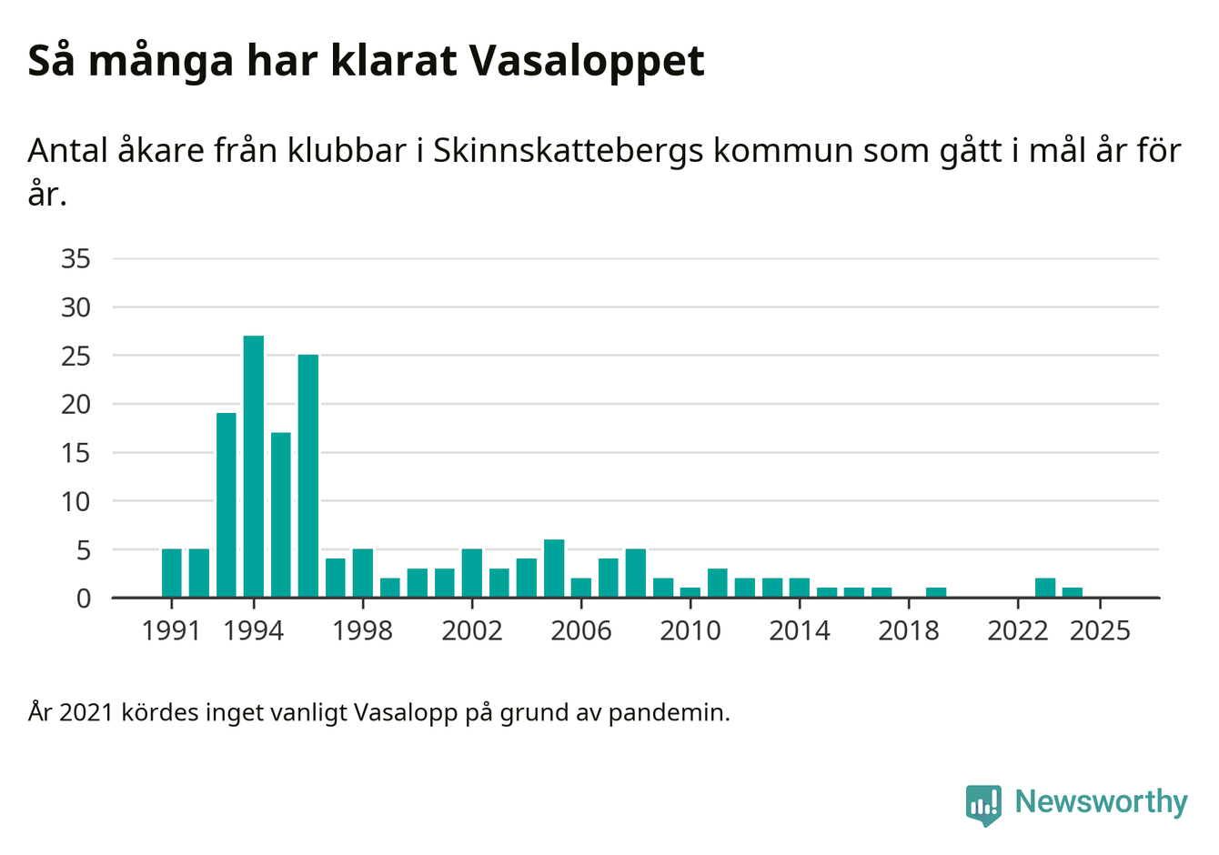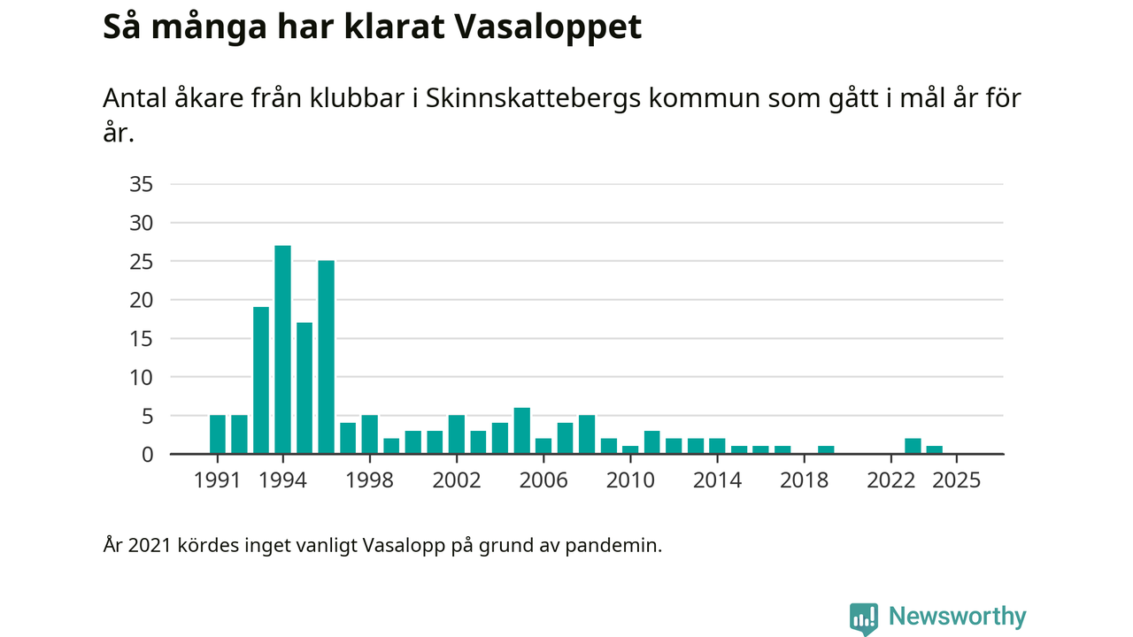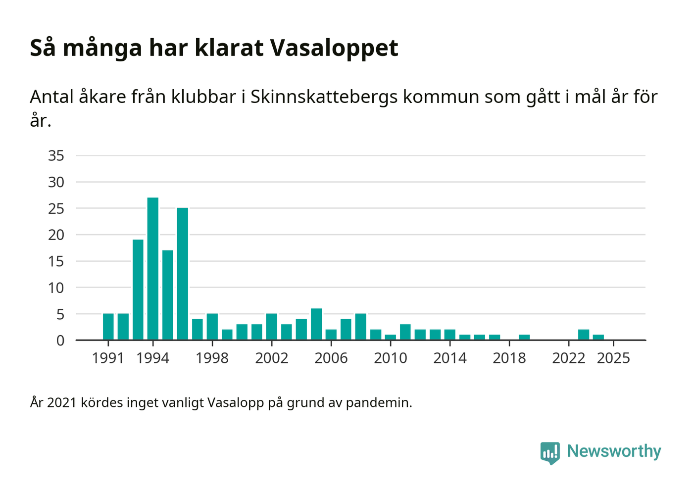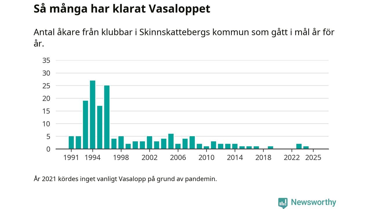 På söndag går starten för det 102:a Vasaloppet. Newsworthy har samlat in och sammanställt samtliga Vasaloppsresultat sedan 1991. Det ger en unik bild av hur skidåkare från klubbar i Skinnskattebergs kommun har klarat sig genom åren.