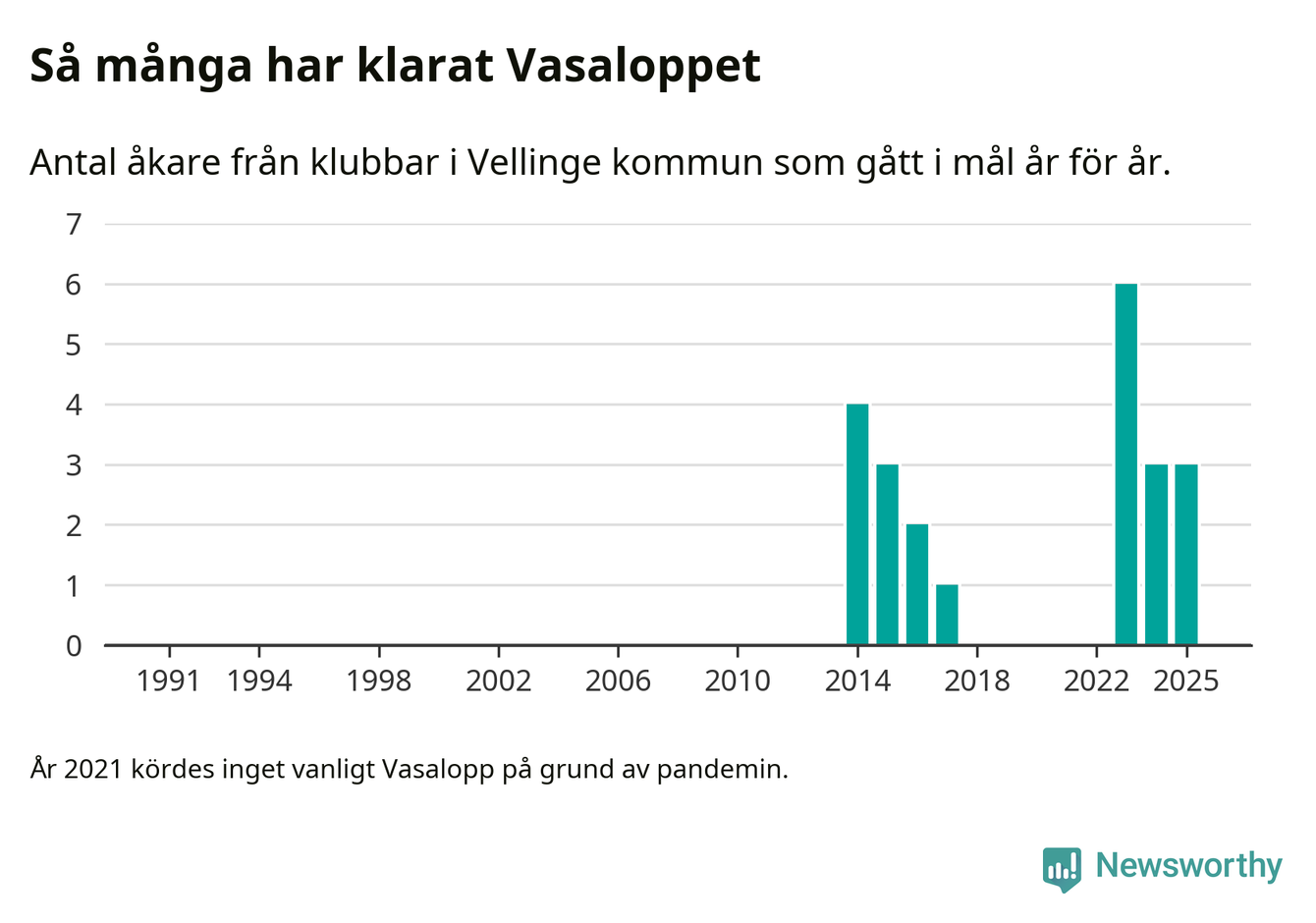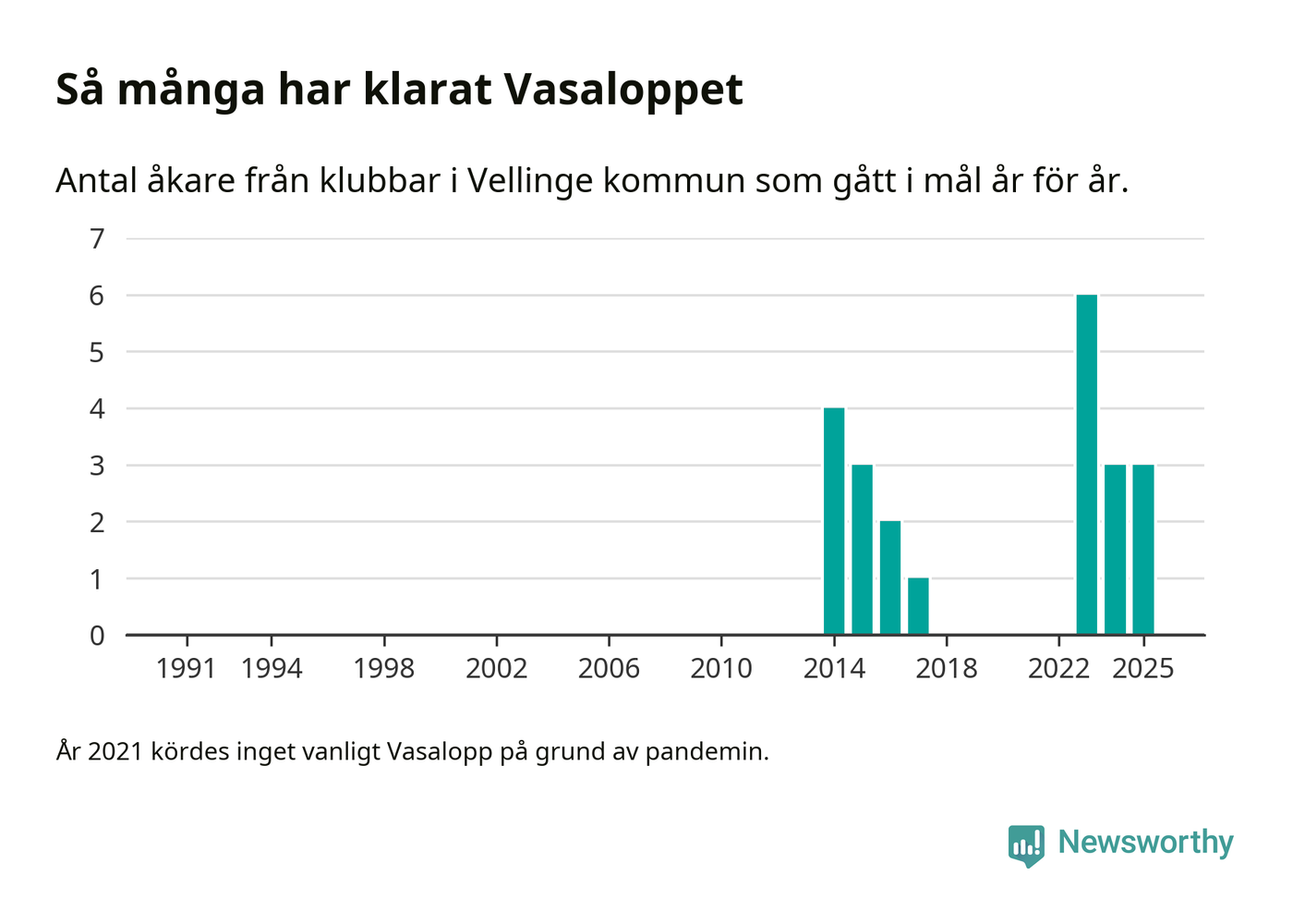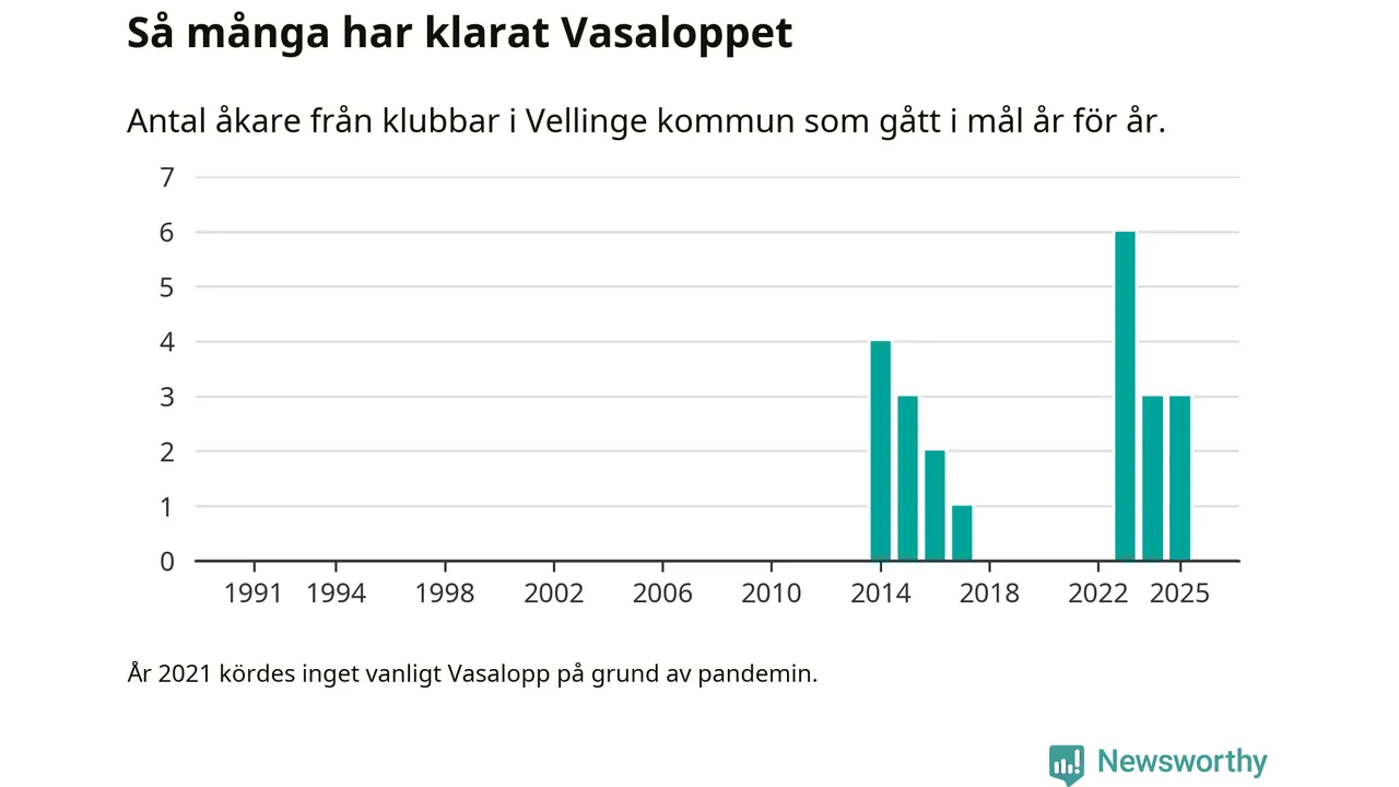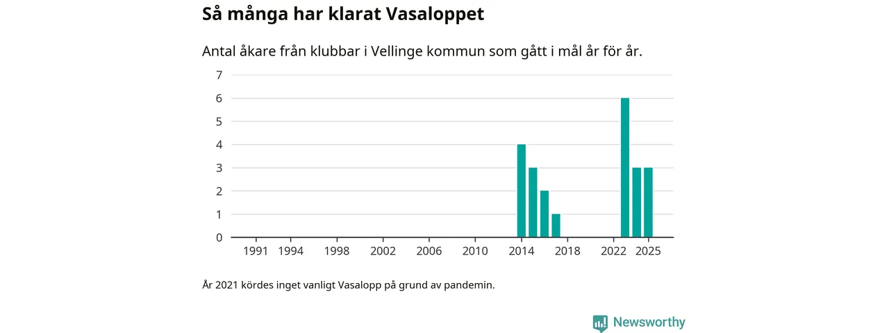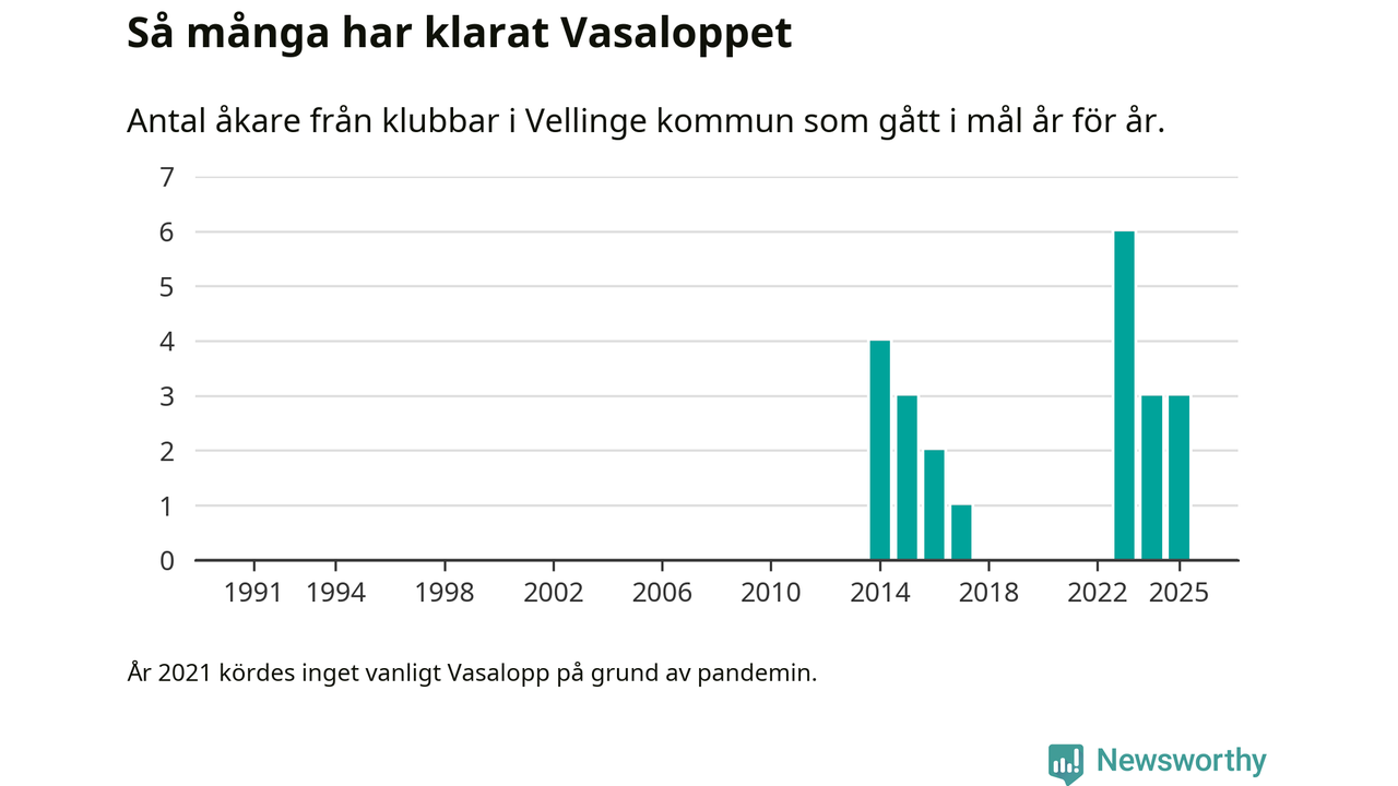 På söndag går starten för det 102:a Vasaloppet. Newsworthy har samlat in och sammanställt samtliga Vasaloppsresultat sedan 1991. Det ger en unik bild av hur skidåkare från klubbar i Vellinge kommun har klarat sig genom åren.
