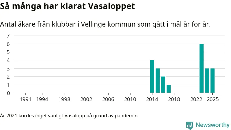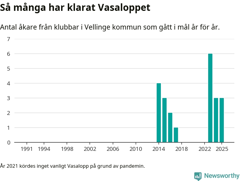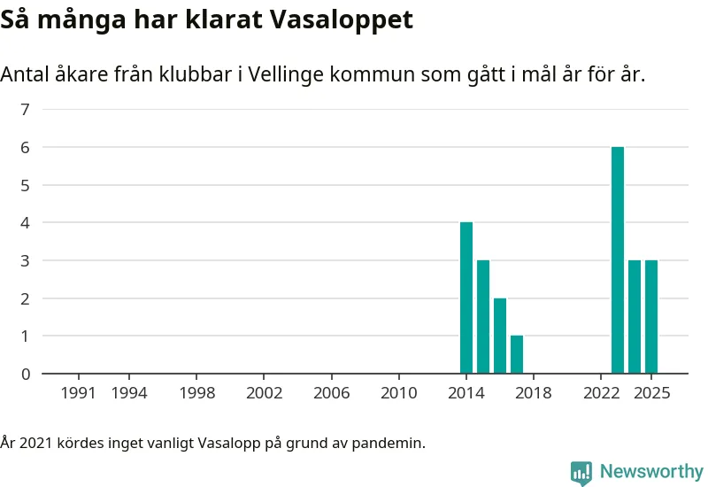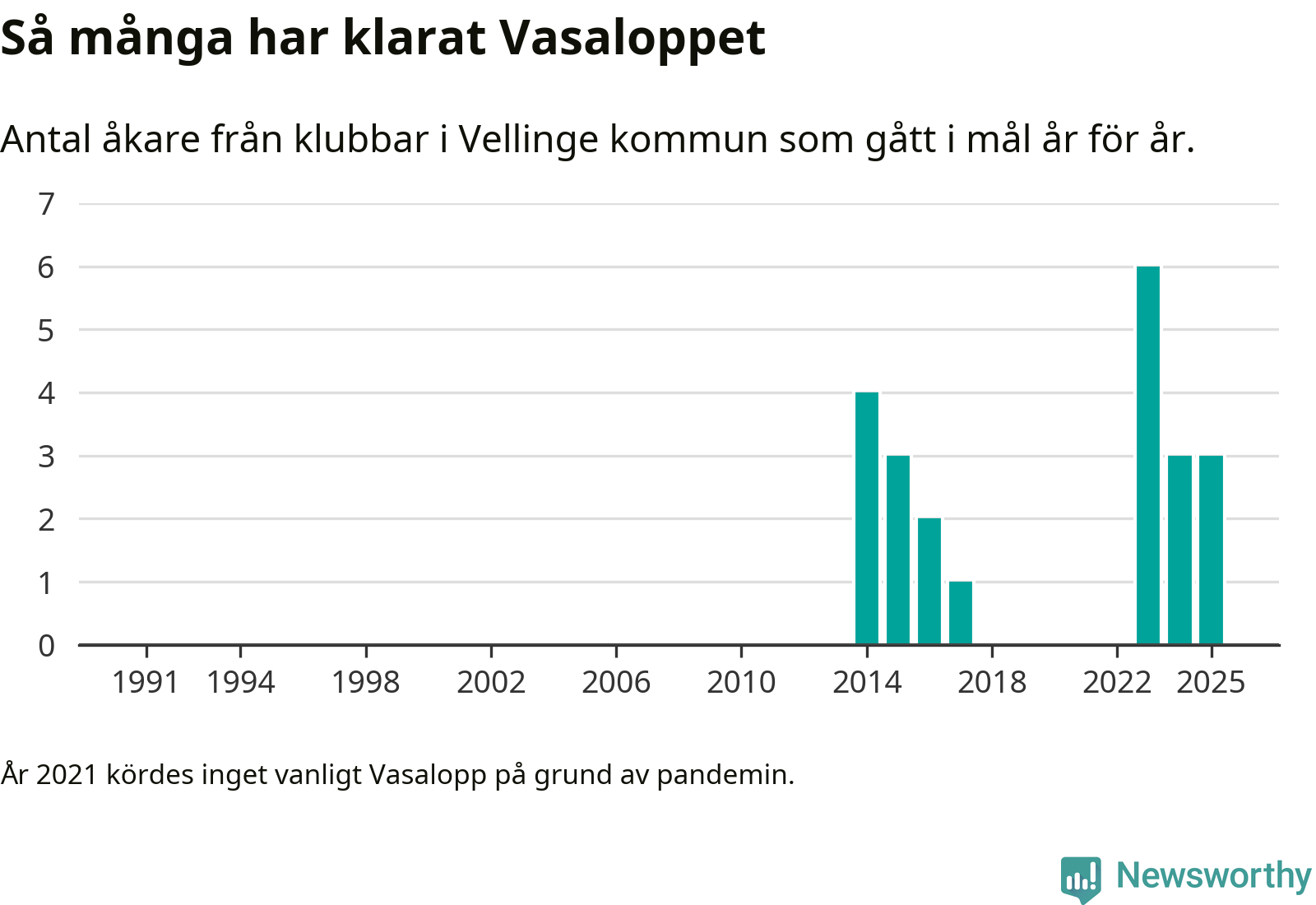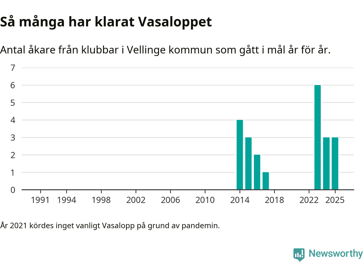 På söndag går starten för det 102:a Vasaloppet. Newsworthy har samlat in och sammanställt samtliga Vasaloppsresultat sedan 1991. Det ger en unik bild av hur skidåkare från klubbar i Vellinge kommun har klarat sig genom åren.