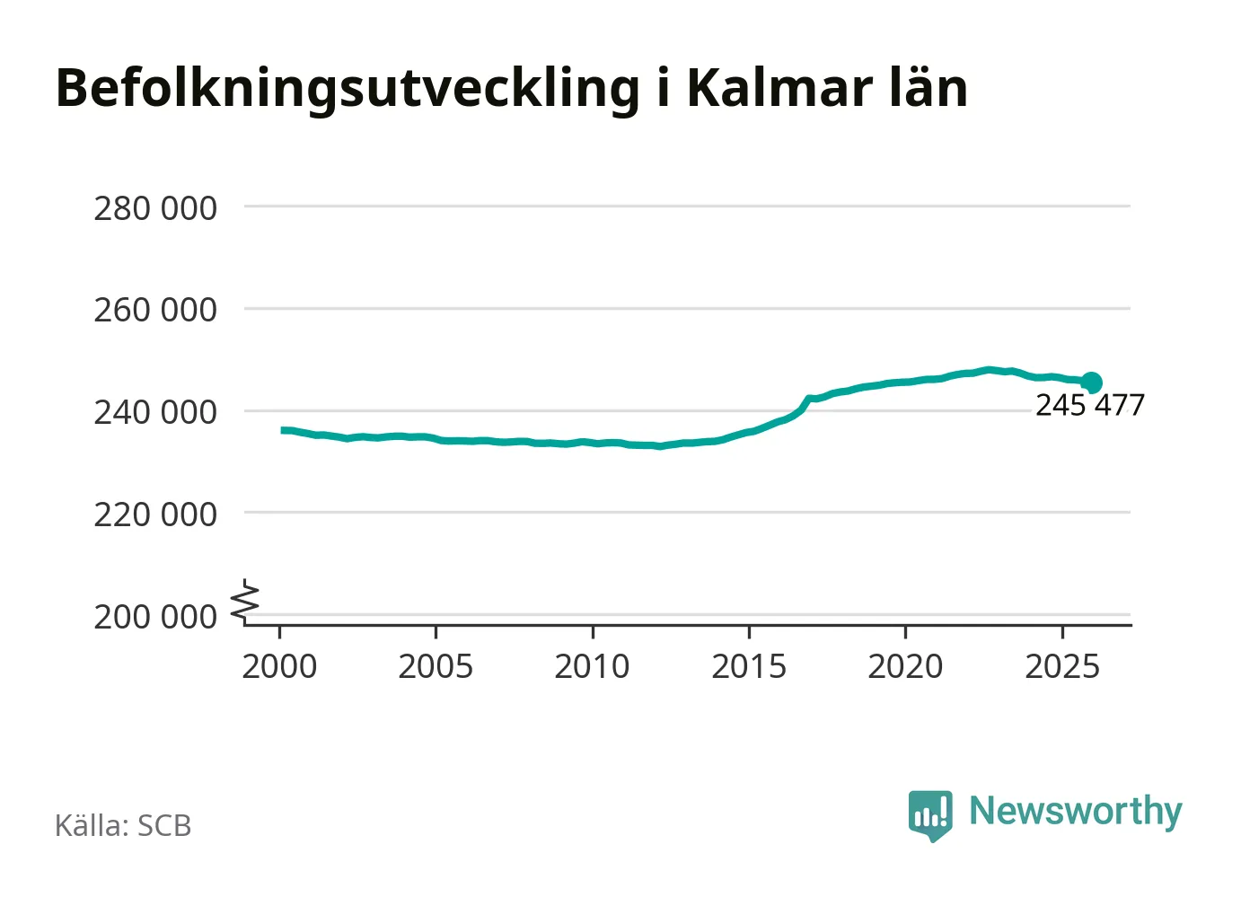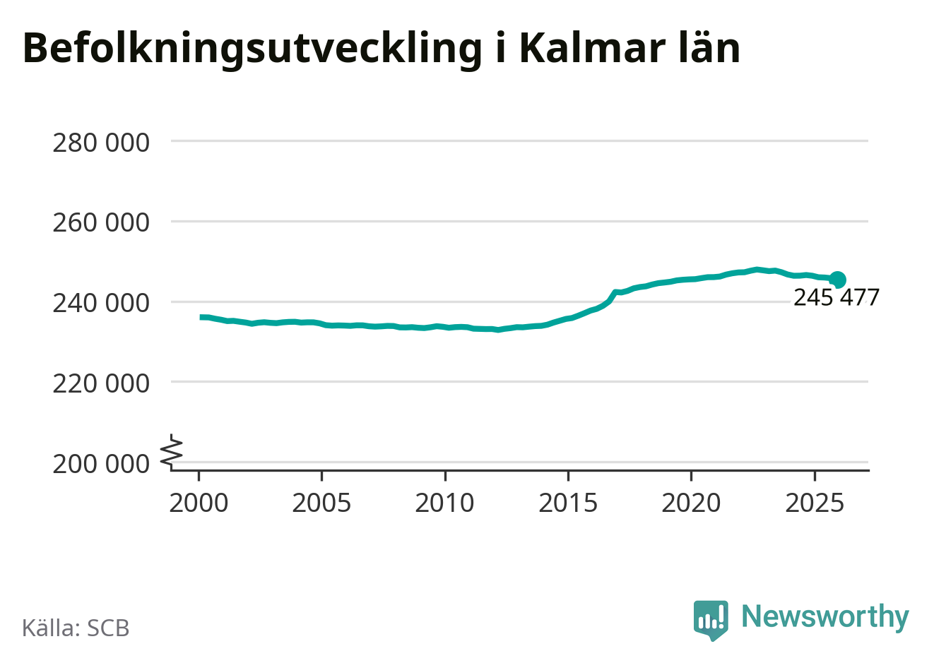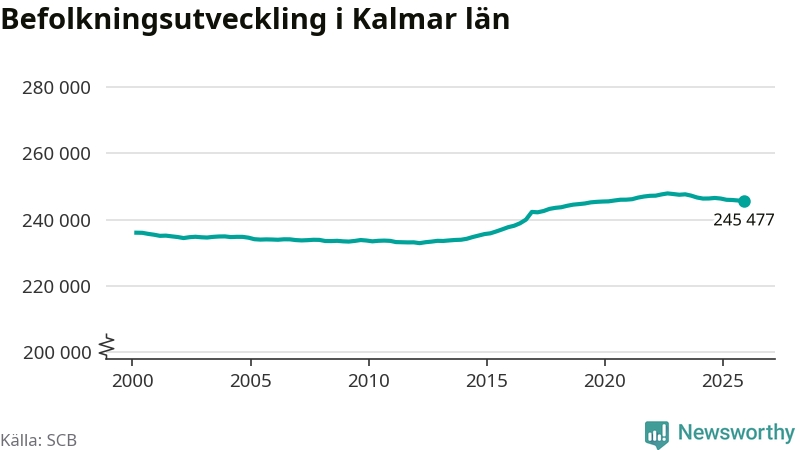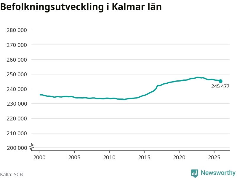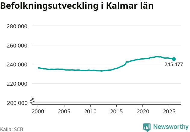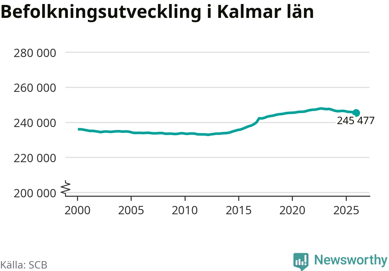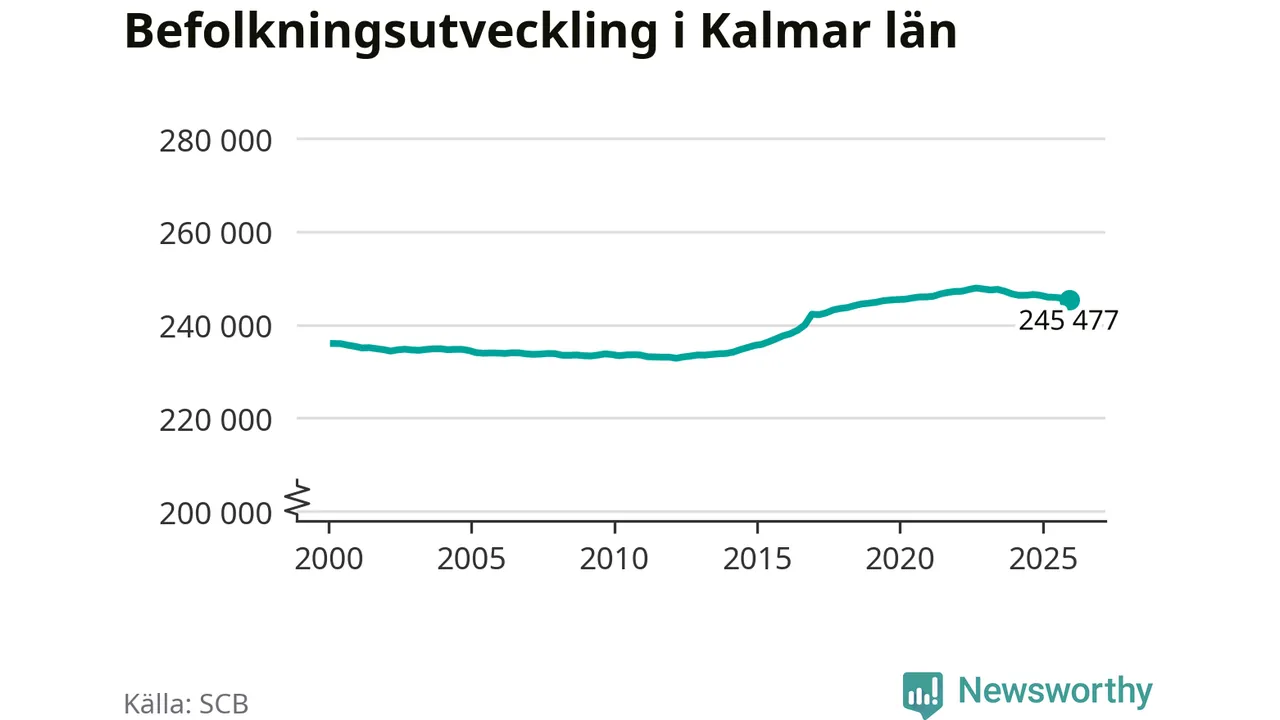 Befolkningen minskade i Kalmar län under det fjärde kvartalet 2025. Den 31 december bodde enligt SCB:s senaste siffror 245 477 personer i länet, vilket är 276 färre än i slutet av tredje kvartalet.