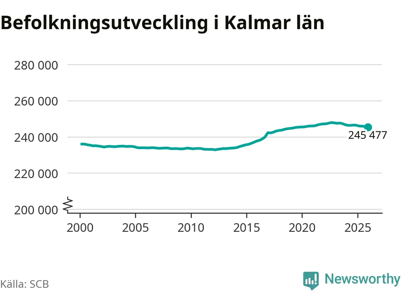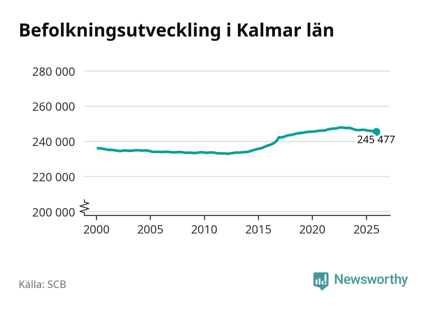 Jämfört med för ett år sedan har befolkningen i Kalmar län minskat med ungefär 880 personer. Sedan millennieskiftet har folkmängden ökat med runt 9 470 personer, eller fyra procent.