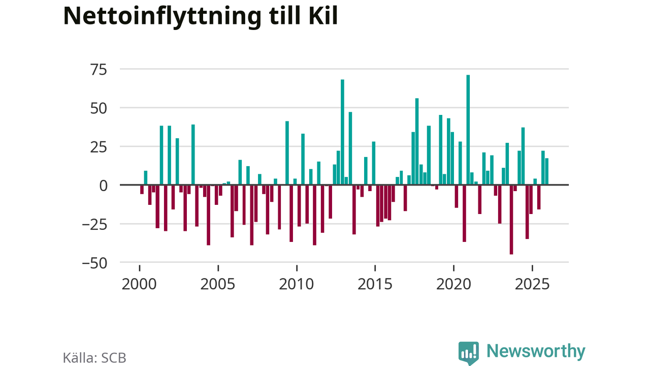 Antalet avlidna var större än antalet födda – men fler flyttade till än från Kils kommun under det fjärde kvartalet 2025. Så många bor i kommunen nu.