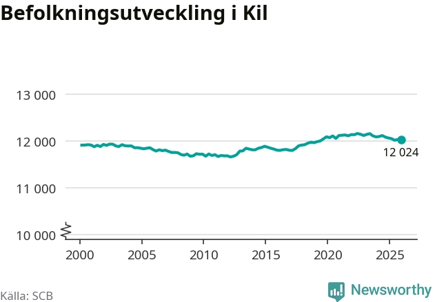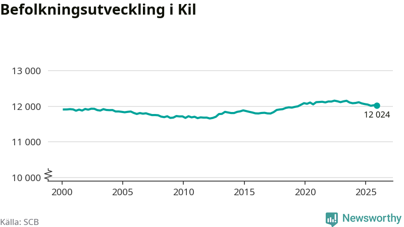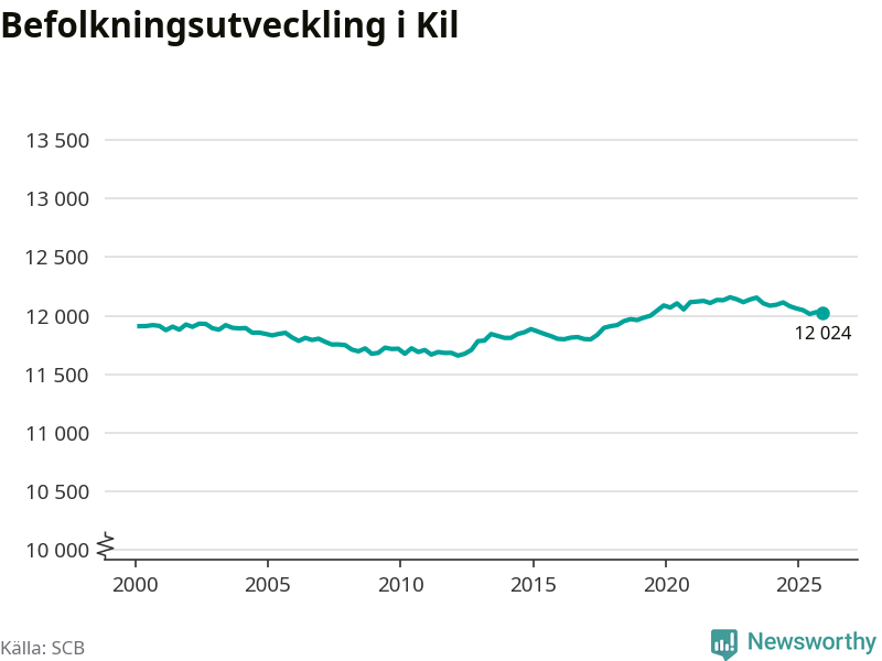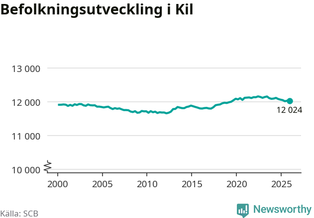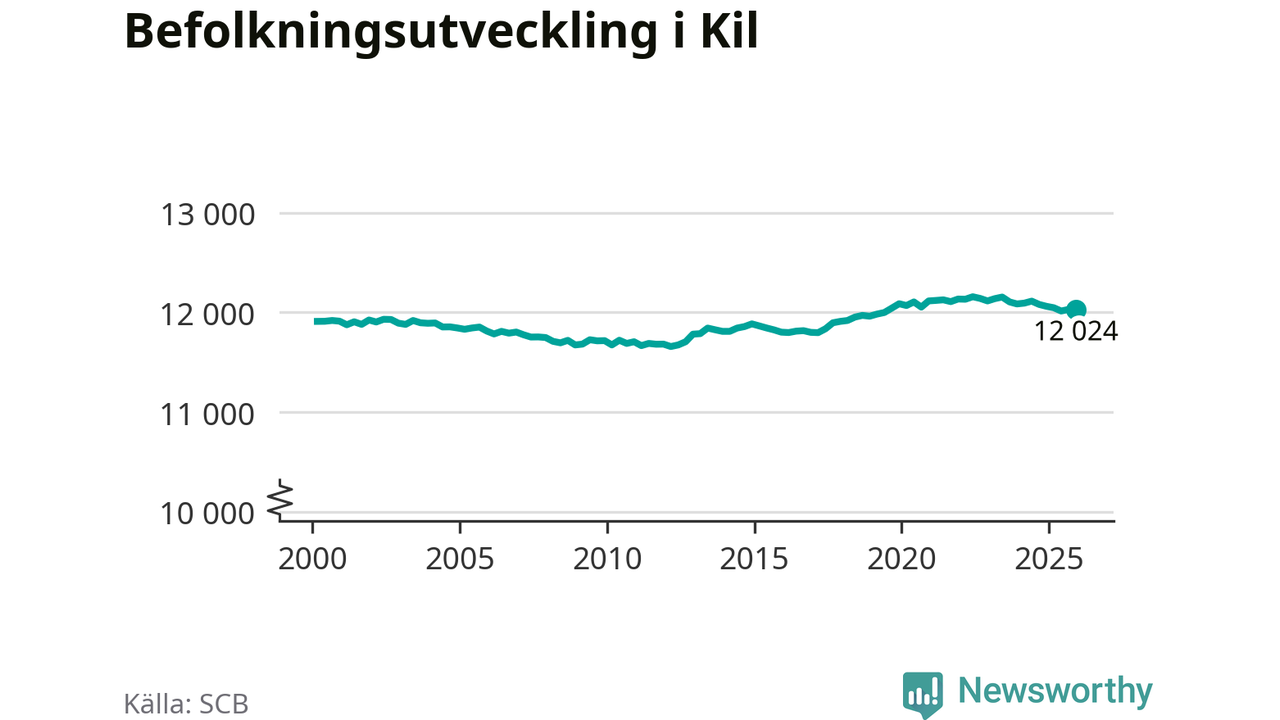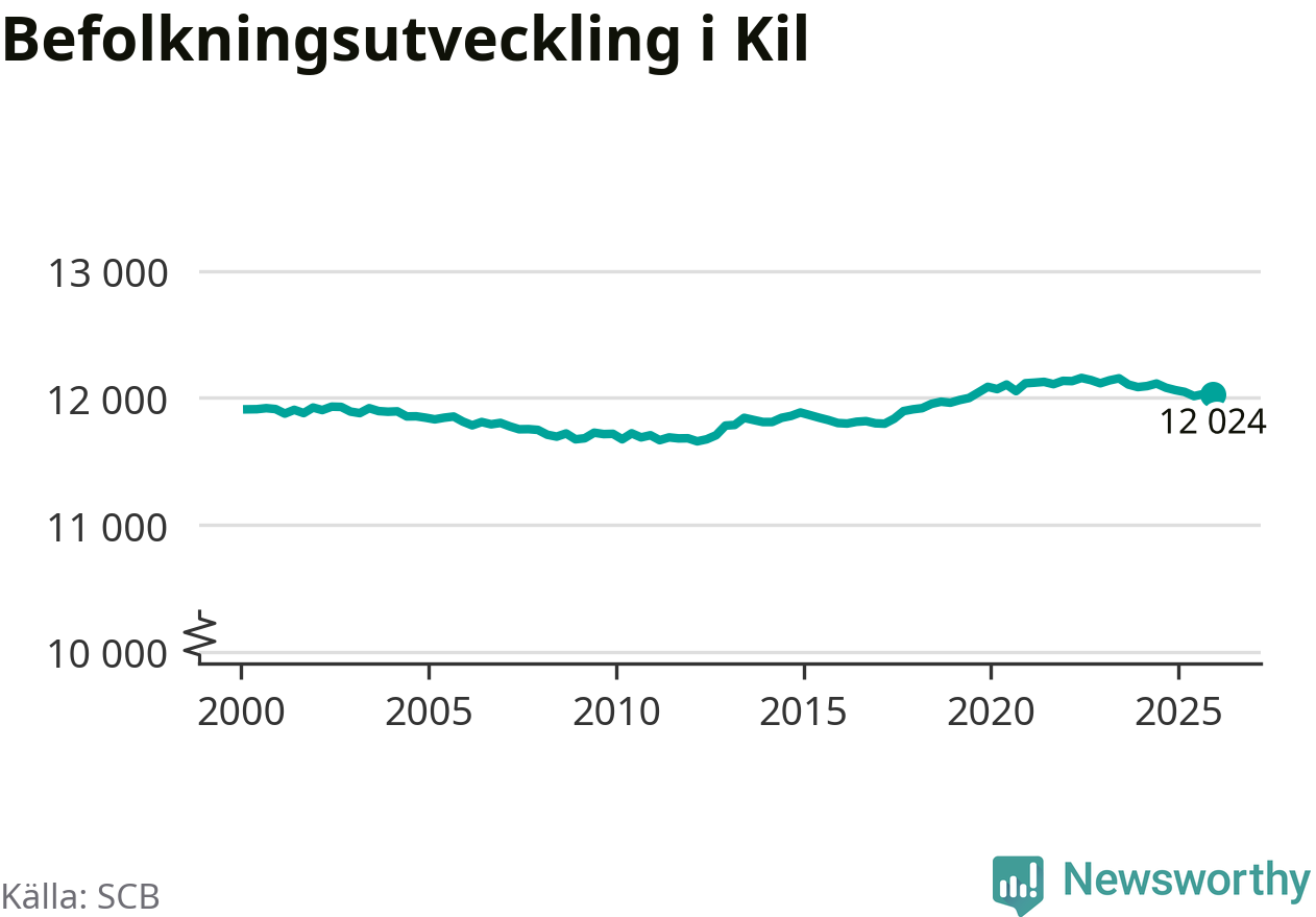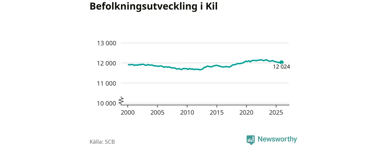 Den 31 december bodde 12 024 personer i Kils kommun, enligt SCB:s senaste siffror. Det är något färre än i slutet av tredje kvartalet, men skillnaden är så liten att den lika gärna kan bero på den lilla justering som SCB gör av siffrorna för att skydda enskilda individers identitet.