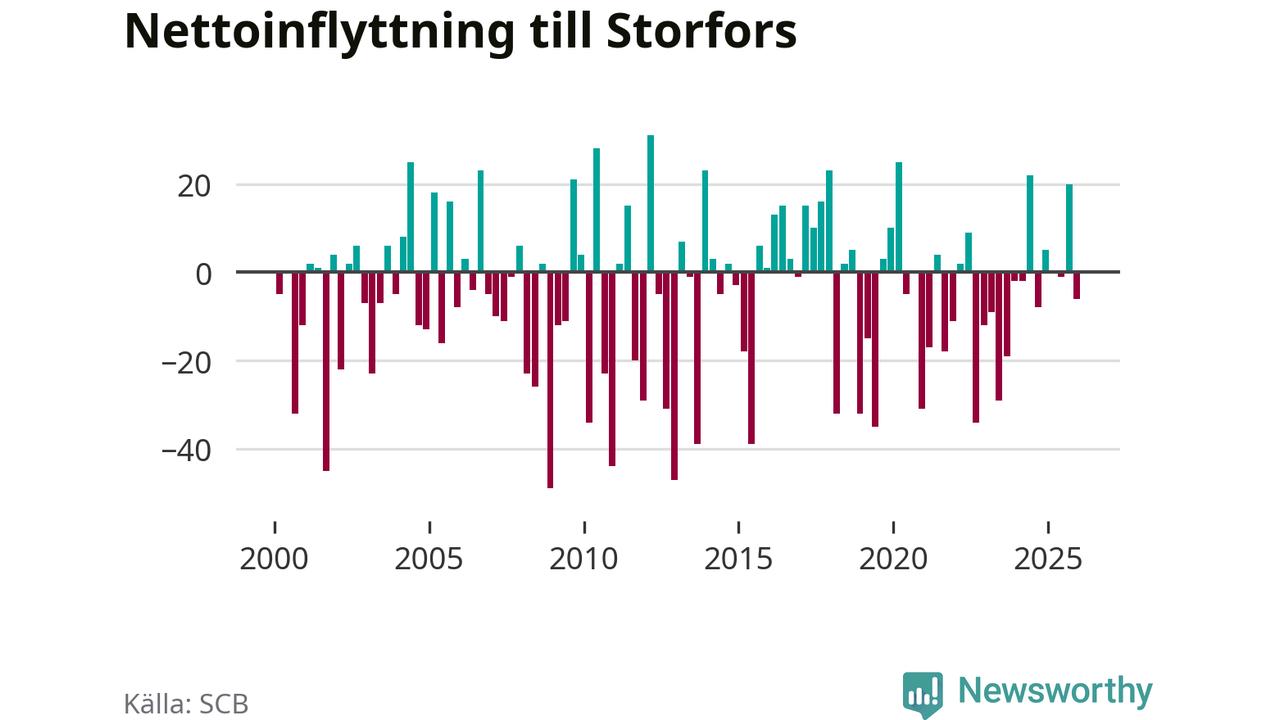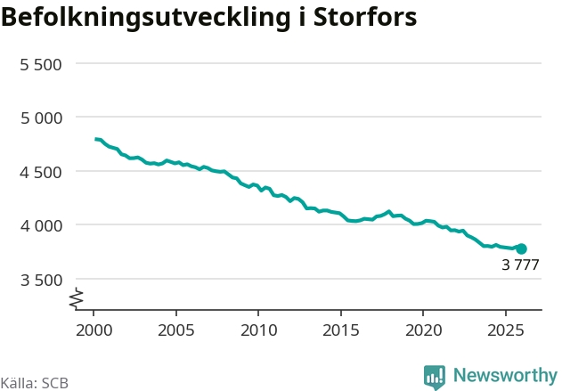 Befolkningen minskade i Storfors kommun under det fjärde kvartalet 2025. Den 31 december bodde enligt SCB:s senaste siffror 3 777 personer i kommunen, vilket är 17 färre än i slutet av tredje kvartalet.